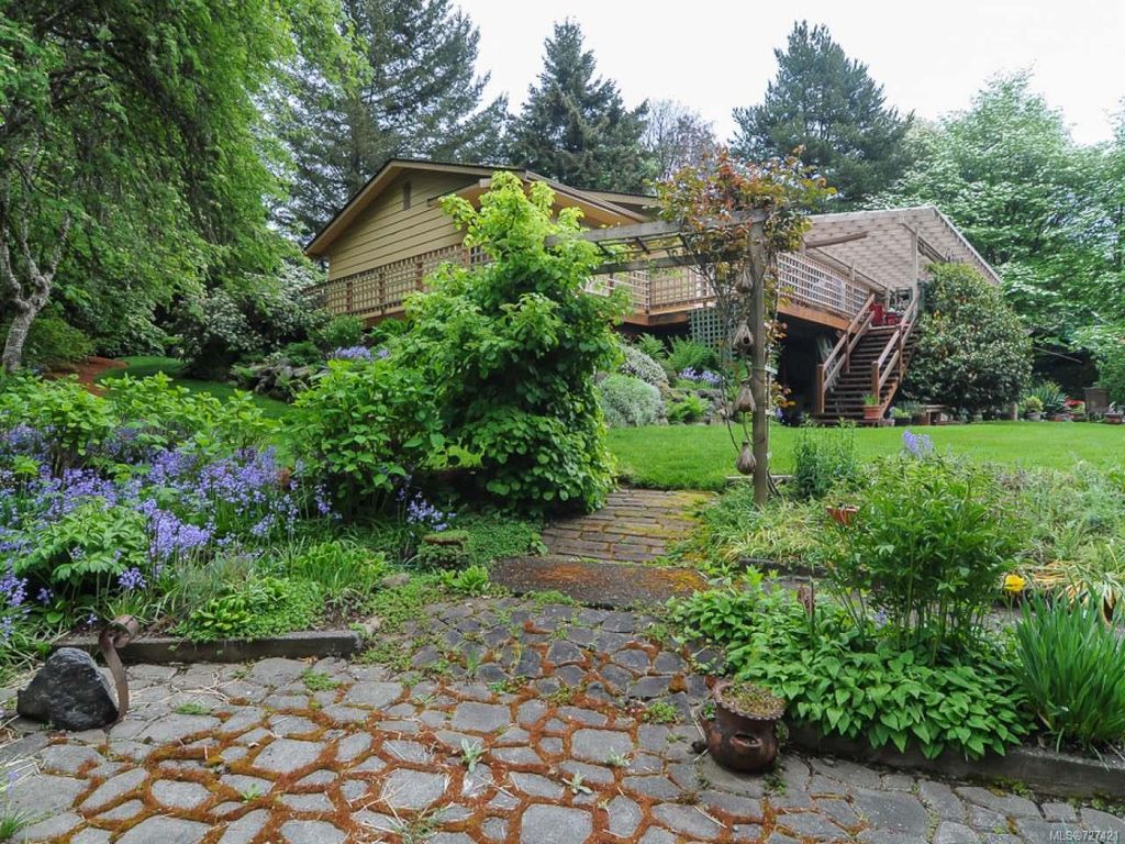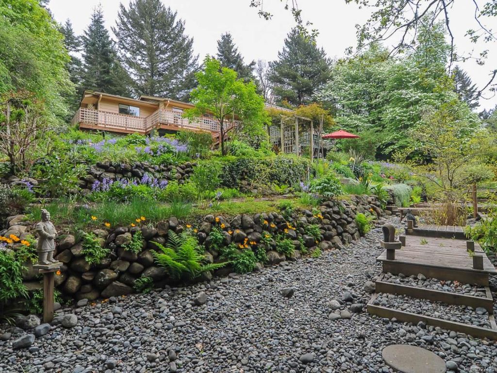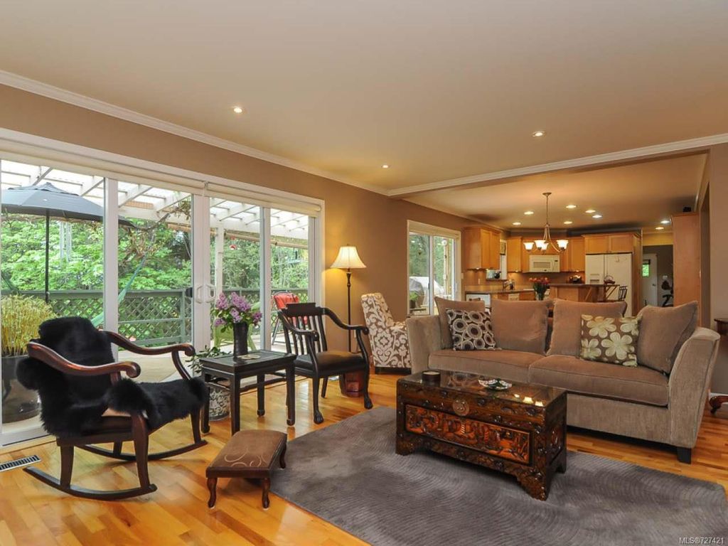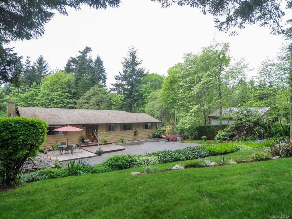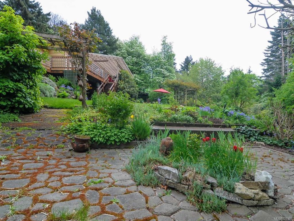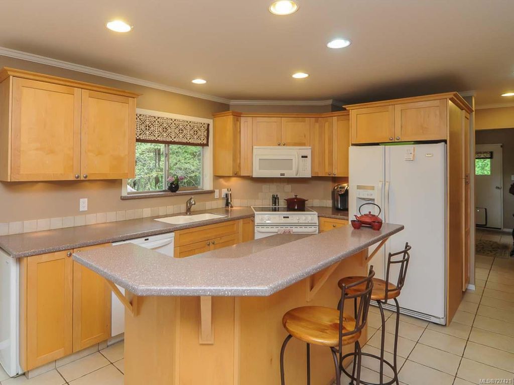 A gorgeous property in the Town of Comox. Private .83 acre lot with wooded area plus water and mountain views depending on the time of the year. A very classy upgraded home with decks and patios galore. It is definitely a home to view. Very nice gardens with such a great feeling. Large living room with fireplace and bookshelves on each side. A large opening to the kitchen/dining area gives the feeling of open concept living. Partially covered spacious deck over looks the backyard with seasonal views.