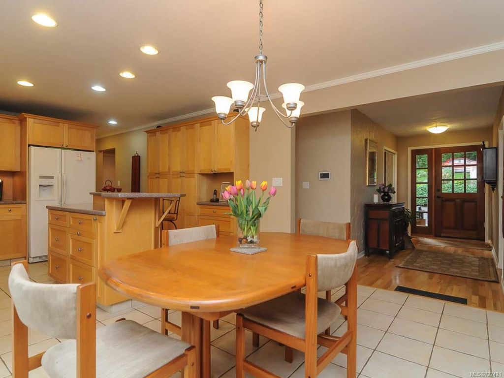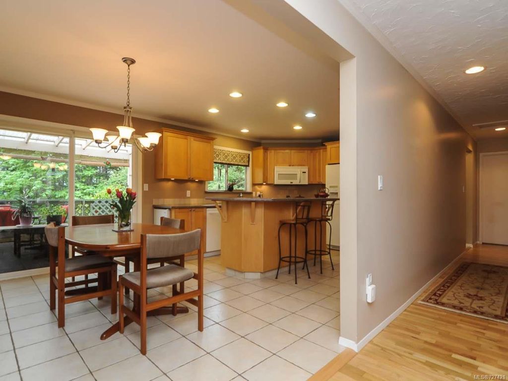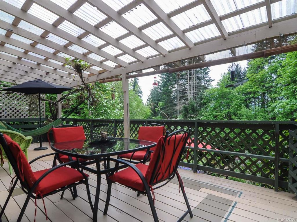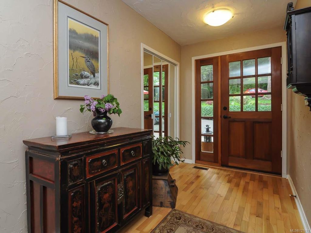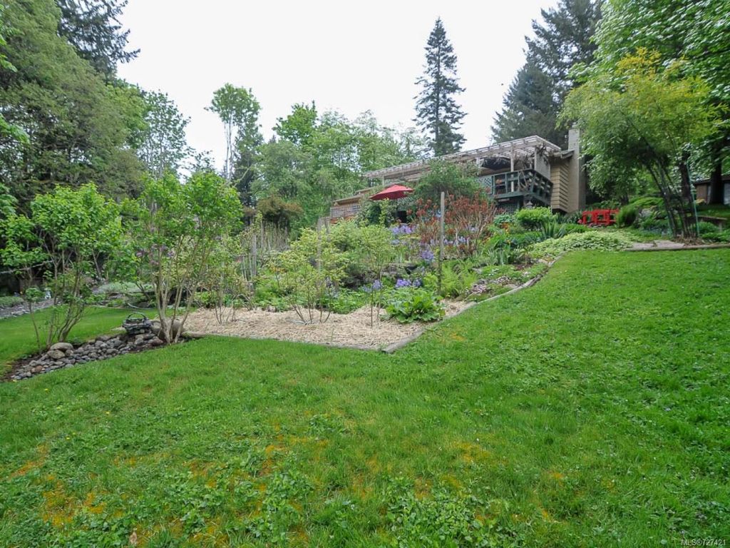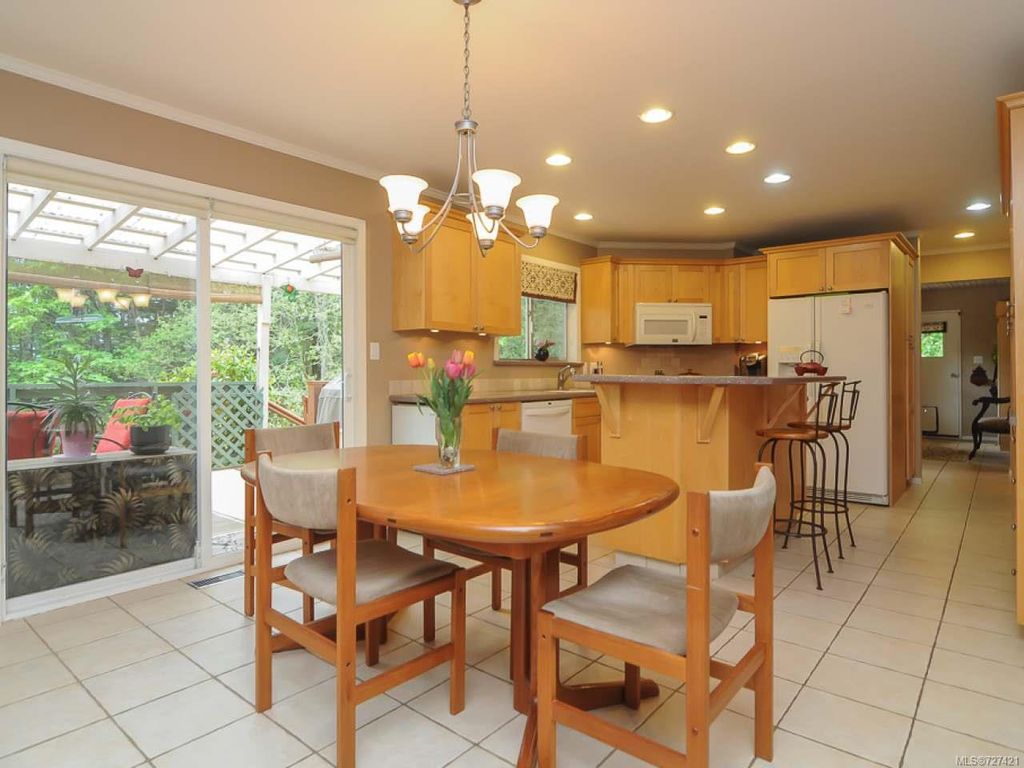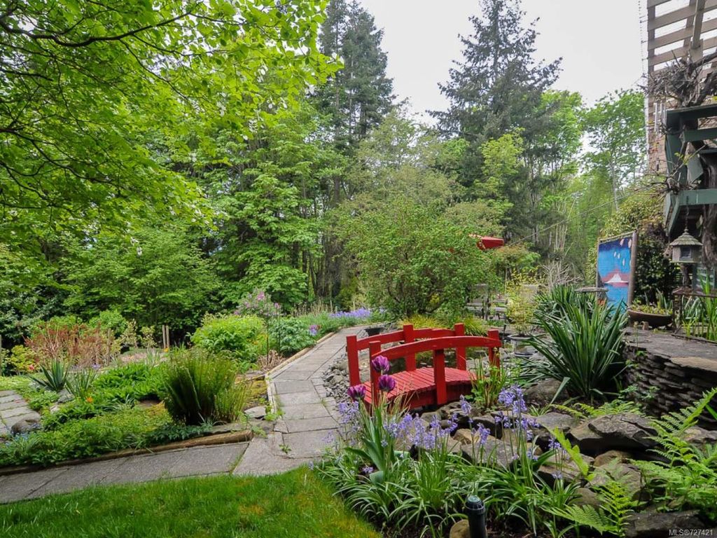A gorgeous property in the Town of Comox. Private .83 acre lot with wooded area plus water and mountain views depending on the time of the year. A very classy upgraded home with decks and patios galore. It is definitely a home to view. Very nice gardens with such a great feeling. Large living room with fireplace and bookshelves on each side. A large opening to the kitchen/dining area gives the feeling of open concept living. Partially covered spacious deck over looks the backyard with seasonal views.