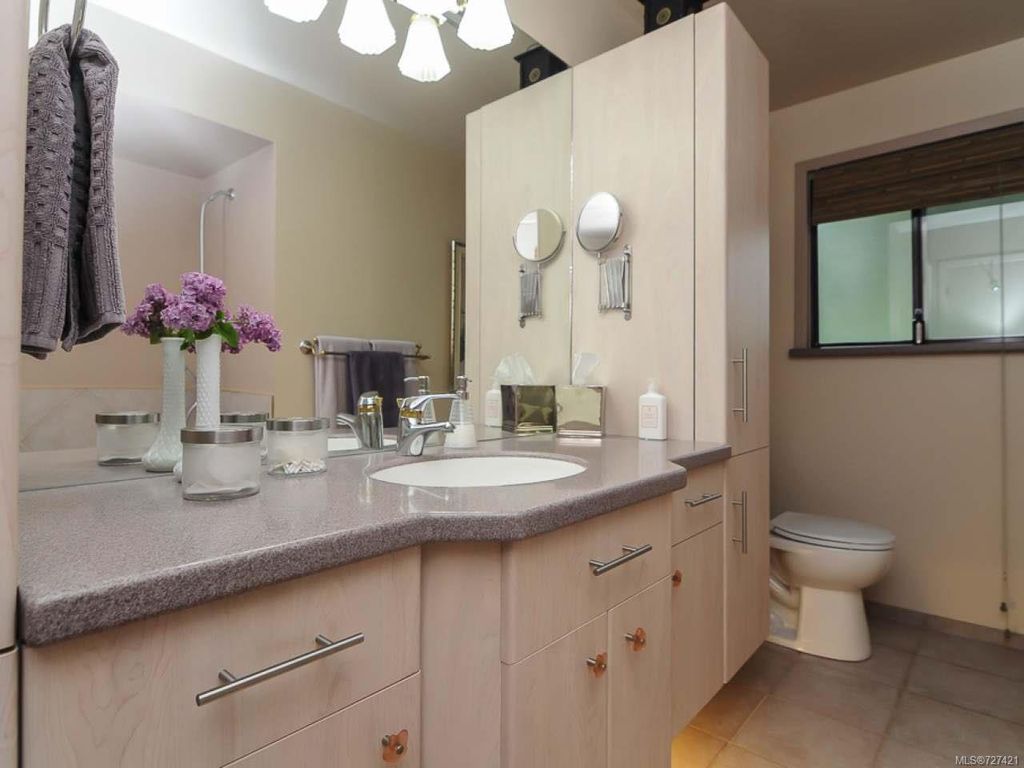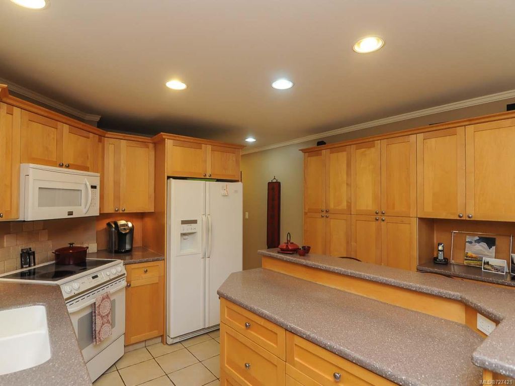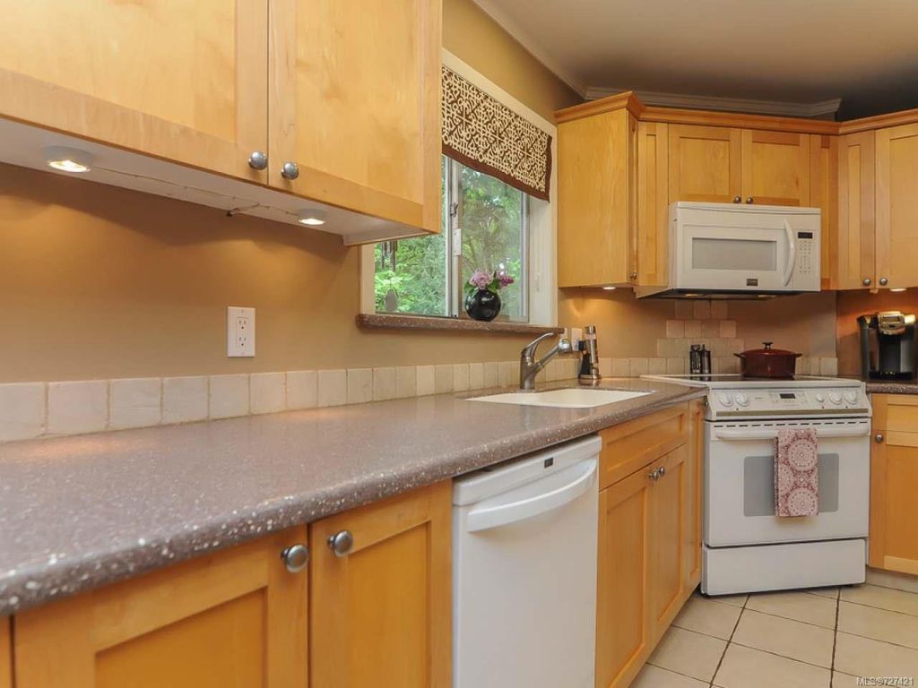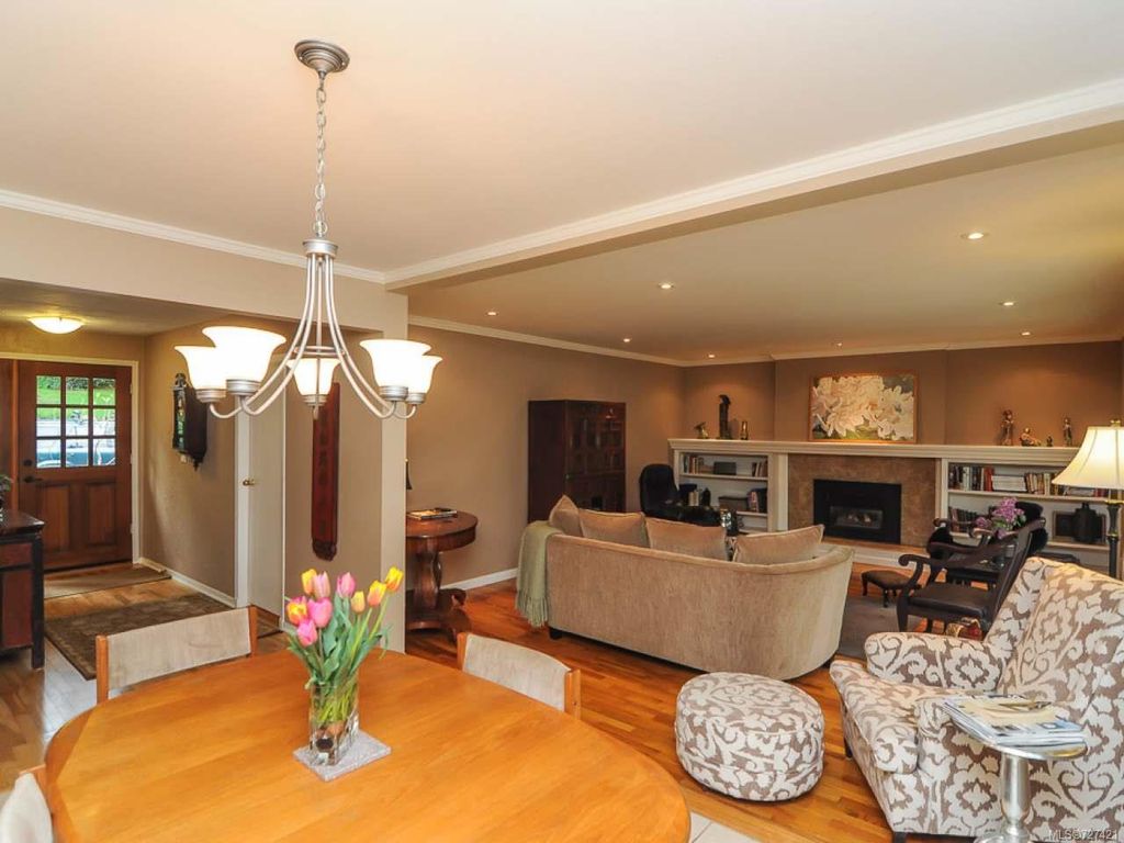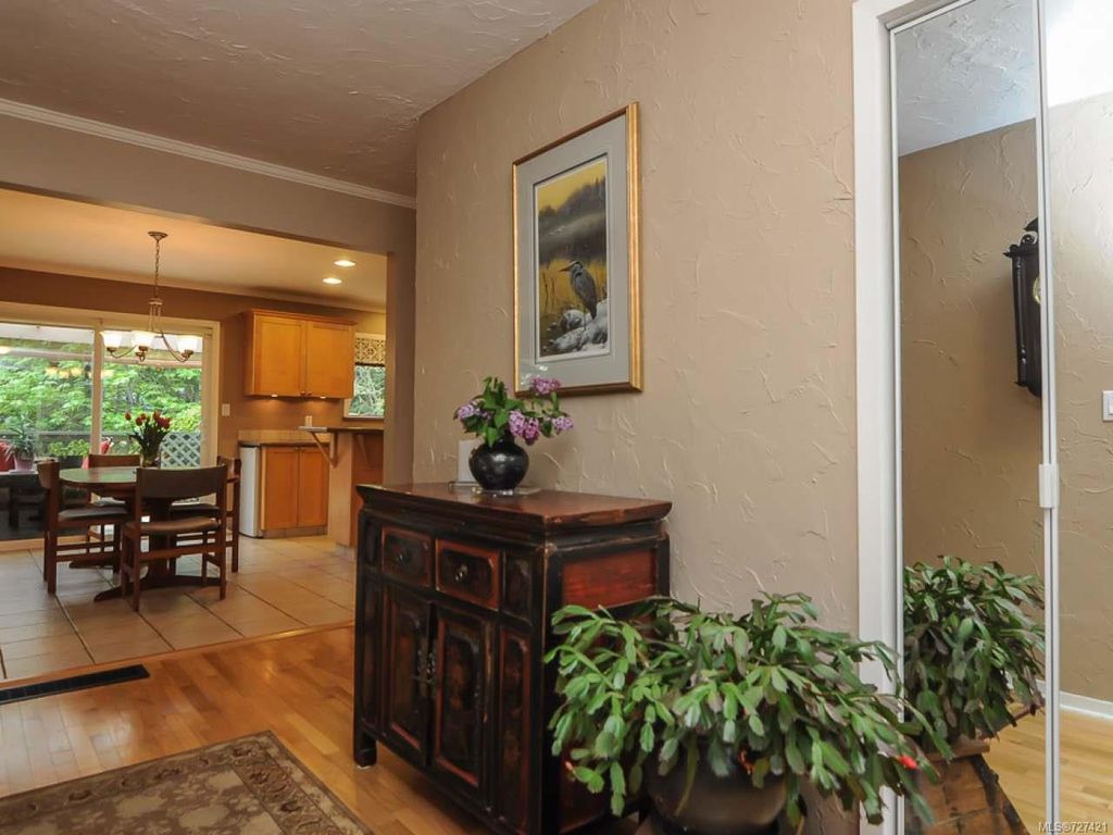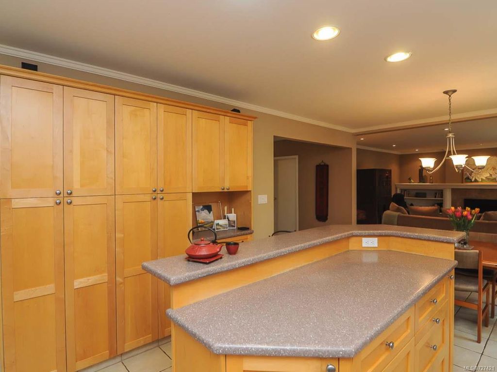 A gorgeous property in the Town of Comox. Private .83 acre lot with wooded area plus water and mountain views depending on the time of the year. A very classy upgraded home with decks and patios galore. It is definitely a home to view. Very nice gardens with such a great feeling. Large living room with fireplace and bookshelves on each side. A large opening to the kitchen/dining area gives the feeling of open concept living. Partially covered spacious deck over looks the backyard with seasonal views.