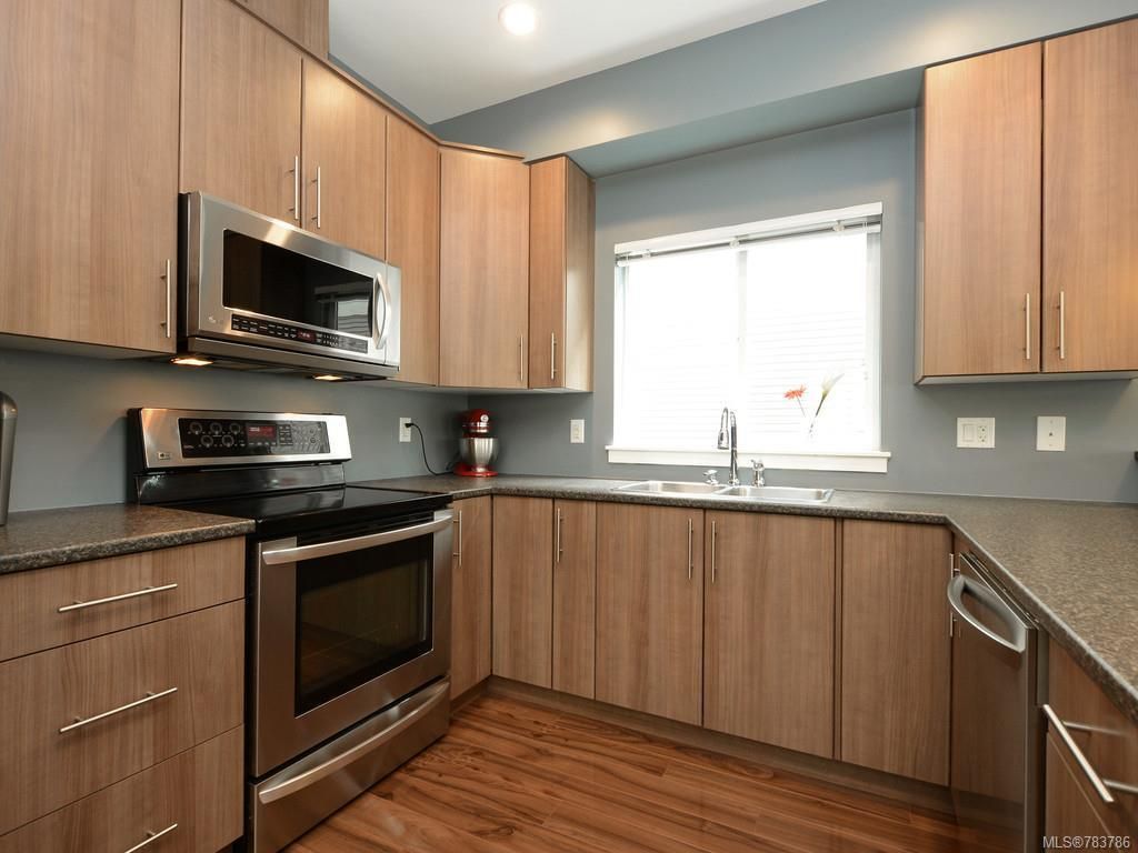 Location.location..location..Beautifully presented 3 level home with south west backyard. Home is in great condition with generous living areas, large bedrooms and a well planned floor layout. Lower level is a fully finished space with minibar kitchen, bedroom & media room but easily converted to a suite. This lower level has a private entrance with 9 foot ceilings and a walkout to the backyard. Relaxing colour palette is balanced by an open concept that is bright and airy. Pot lights, light fixtures complement the volumes in all the spaces. Stainless appliances & bar fridge along with high efficiency washer and dryer round out the service package. Property backs on to green space, easy walk to the lake and new bus route is on the street-3 minutes to Langford village, big box stores, schools and recreation. 15 minutes to downtown Victoria. The perfect package!
