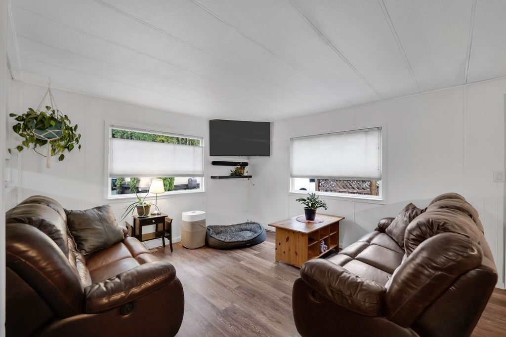Charming 2-bedroom home with a great backyard! Welcome to this cozy and well-maintained 2-bedroom, 1-bath mobile home, offering comfort, value, and great features, including a new electric heat pump, gas-on-demand hot water tank, and newer windows. Perfectly situated in family-friendly community, this home offers an open concept living area , new kitchen appliances as well as new siding . Step outside and enjoy one of the best parts about this property a large private backyard surrounded by greenery , perfect for BBQ's , gardening and relaxing with mountain views . Located just minuted from shops , trails and schools this location offers the balance of convenience and outdoor lifestlye , whether your , downsizing or just getting into the market this your opportunity to call Squanish home