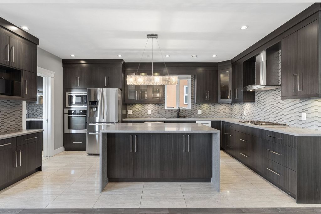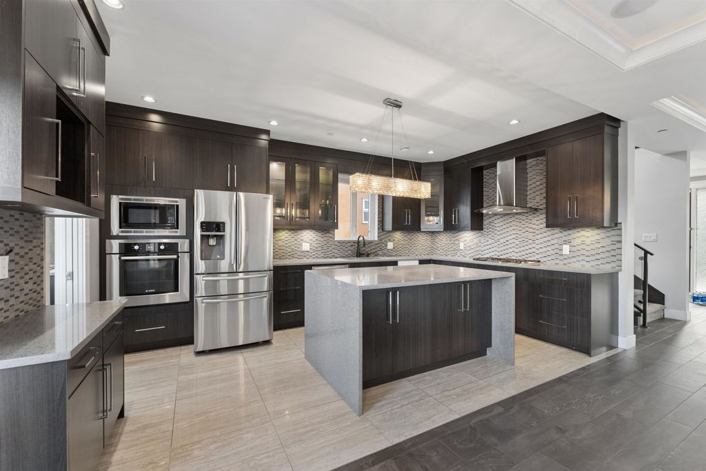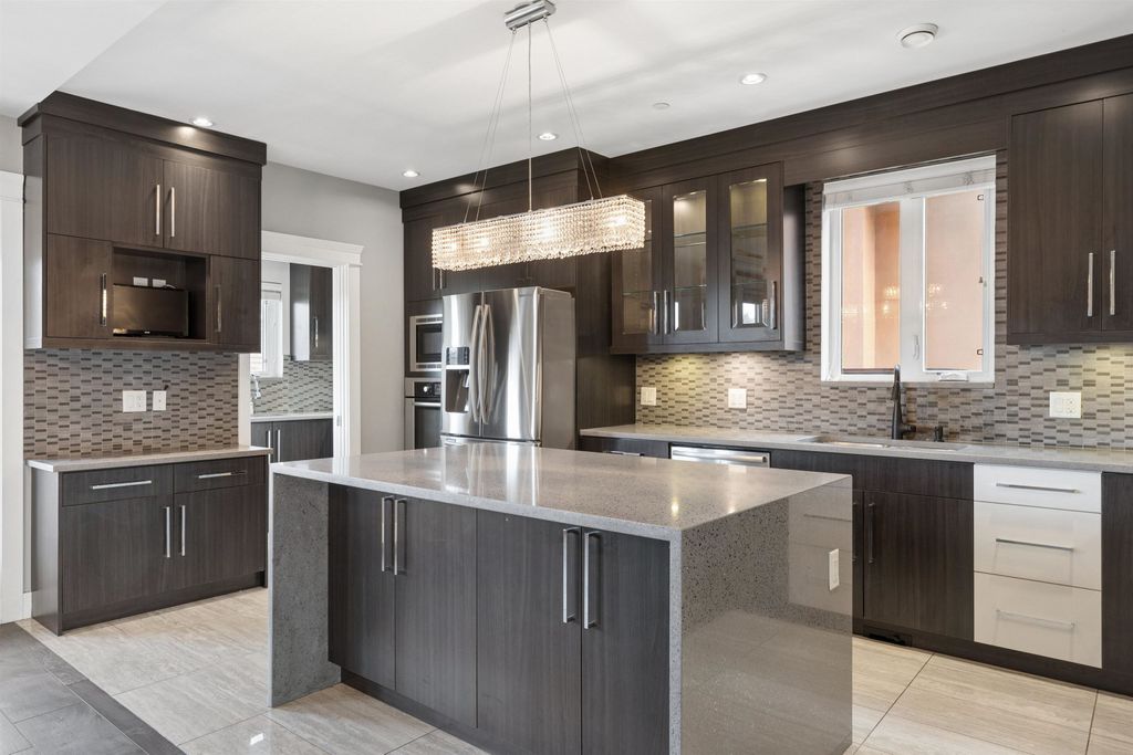 Perfect for Generational-Living or HUGE rental potential.This absolutely amazing home sits on a larger 33x127 extra long flat lot, showcasing a peak-a boo mountain view on the top floor with separate access to each suite and laneway. Featuring 8 bedrooms+office and 7 bathrooms across a well-designed main house WITH AIR-CONDITIONING, two basement suites, and a laneway home. The main floor has 9 ft ceilings, a bright open living, a balcony with views, and a main + wok kitchen. Upstairs includes 4 spacious bedrooms with 3 ensuites! The basement has a legal 2-bed suite and a 1-bed in-law suite. A 1+den spacious laneway is an extra mortgage helper. Radiant heat, A/C, quality finishings, & a functional layout complete this exceptional home. **OPEN HOUSE APRIL 4 SATURDAY, 2:30-4:00PM**