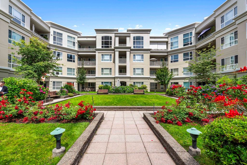 Welcome to the Marlborough House, Coquitlam's finest 55+ community. This spacious 1st floor unit is over looking a stunning garden and is equipped with 2 bedrooms, 2 bathrooms and a massive kitchen. Steps away from Lafarge Lake and minutes to Coquitlam Centre. The Marlborough House has extensive amenities including a swimming pool, hot tub, gym, as well as daily community events from yoga to board games to happy hour. This complex truly has it all. Call for your private showing