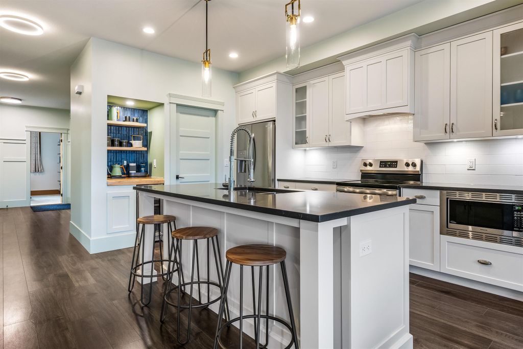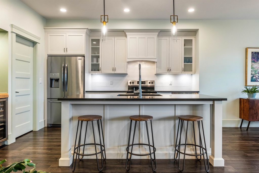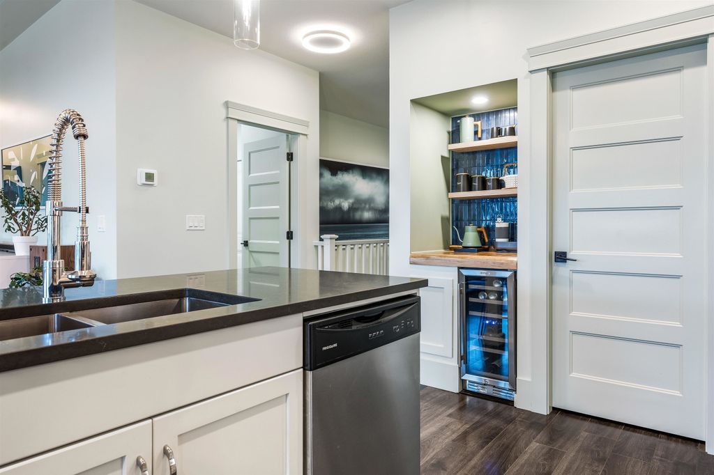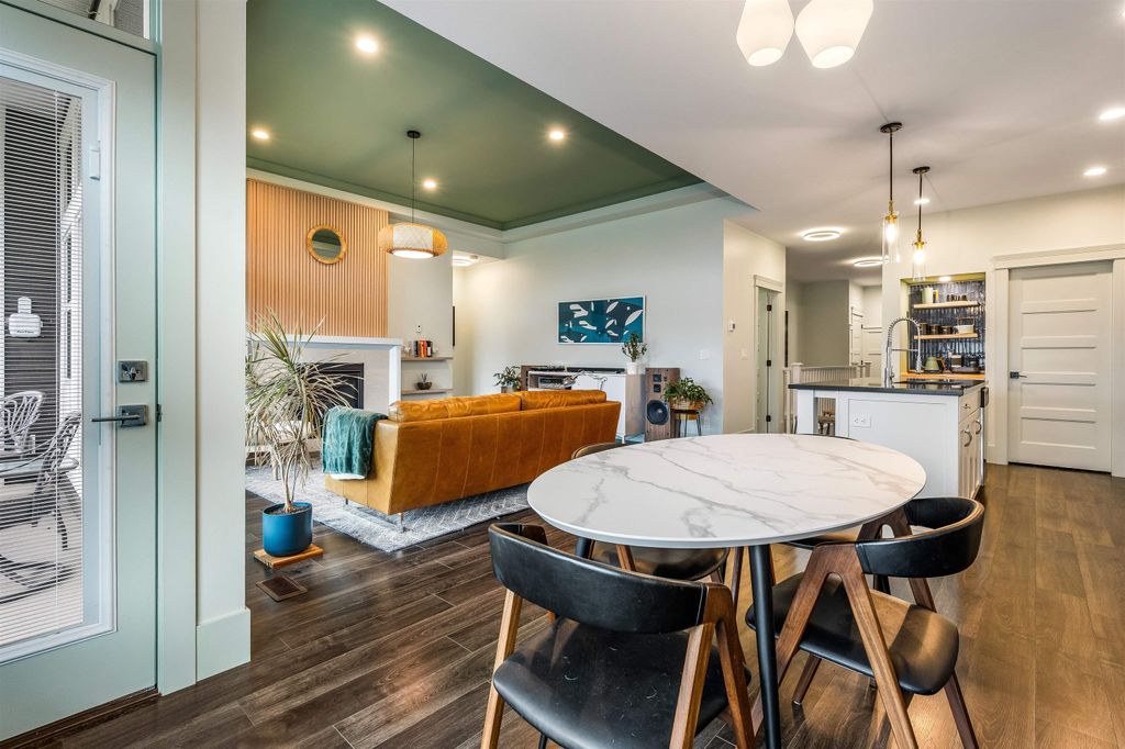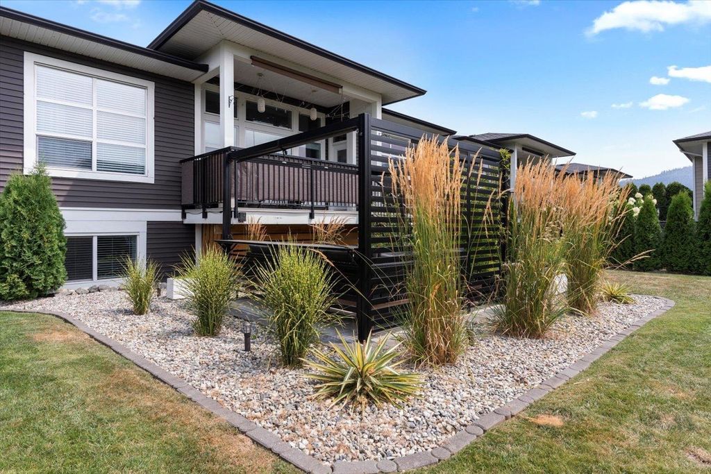 Positioned between Garrison Crossing & District 1881, this home offers great convenience - everything you need w/i minutes! Wake up to mountain sunrises & wind down w/ sunsets on your private, fully landscaped b/y oasis, complete w/ inground sprinklers & gas BBQ hookup. Bonus: the strata takes care of lawn! Inside, the California coastal vibe creates a relaxed, atmosphere. The main-floor primary suite is a serene retreat, featuring a spa-inspired design that invites you to unwind. Downstairs, you'll find a chic Manhattan loft vibe w/ exposed beams, concrete paneling & recessed lighting in the rec/theatre rm, which incls b/i sound & a sound-damped flex space—ideal for musicians, a study or wine vault! 3 bdrms, 3 baths & ample space to add a 4th bdrm down - this house must be seen!