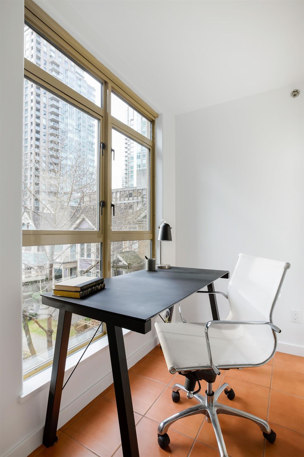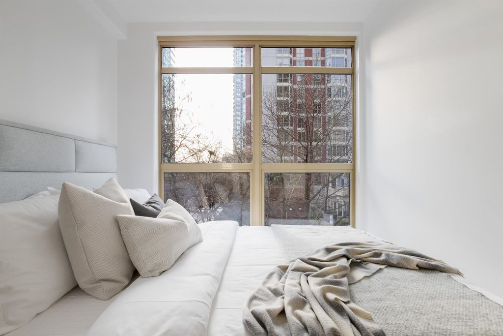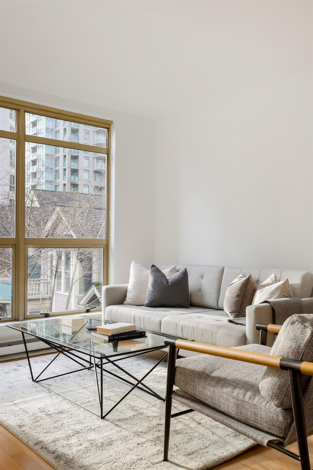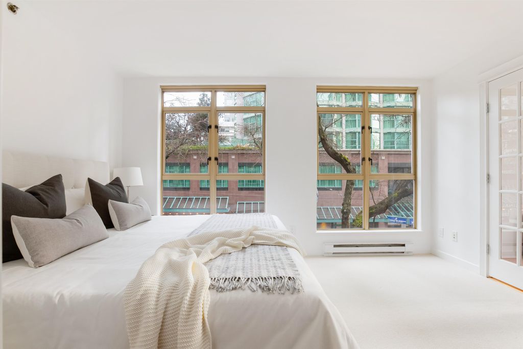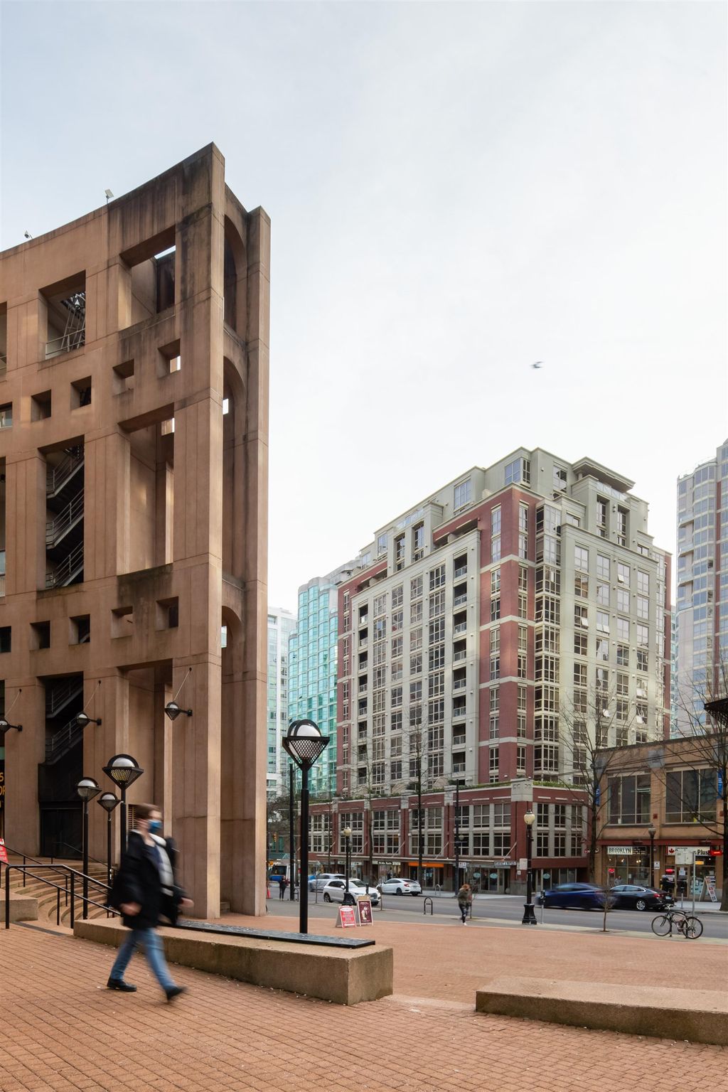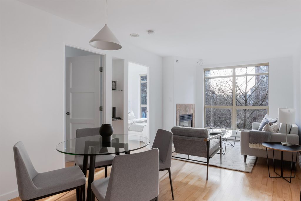 Rare 2 bedroom, 2 bath home featuring a solarium & flex space, all within an efficient layout in a prime location! Bosa built. Meticulously well-kept and in mostly original condition. Gas fireplace creates a cozy feel in the evenings. The generous primary bedroom offers plenty of room for a king-sized bed and is outfitted with an ensuite and walk-through wardrobe. The bright solarium is a great space that would function as a fantastic home office--ideal for working from home from. Enjoy tranquil urban vistas filled with greenery from each room. Take advantage of the gym, yoga room & sauna. Excellent building management plus building caretaker. Downtown, close to Vancouver's best shopping, restaurants & cafes, services and recreation. One parking included.