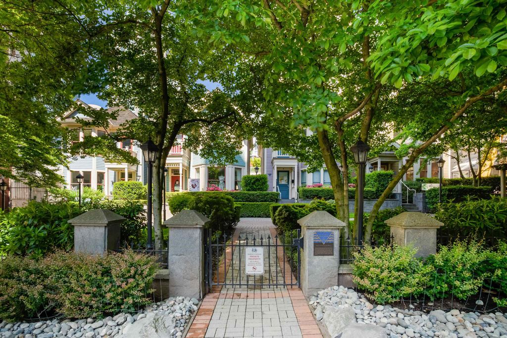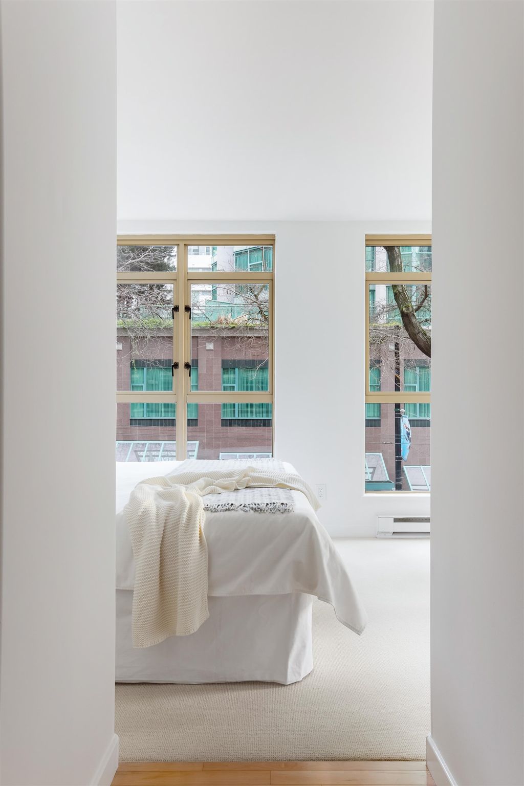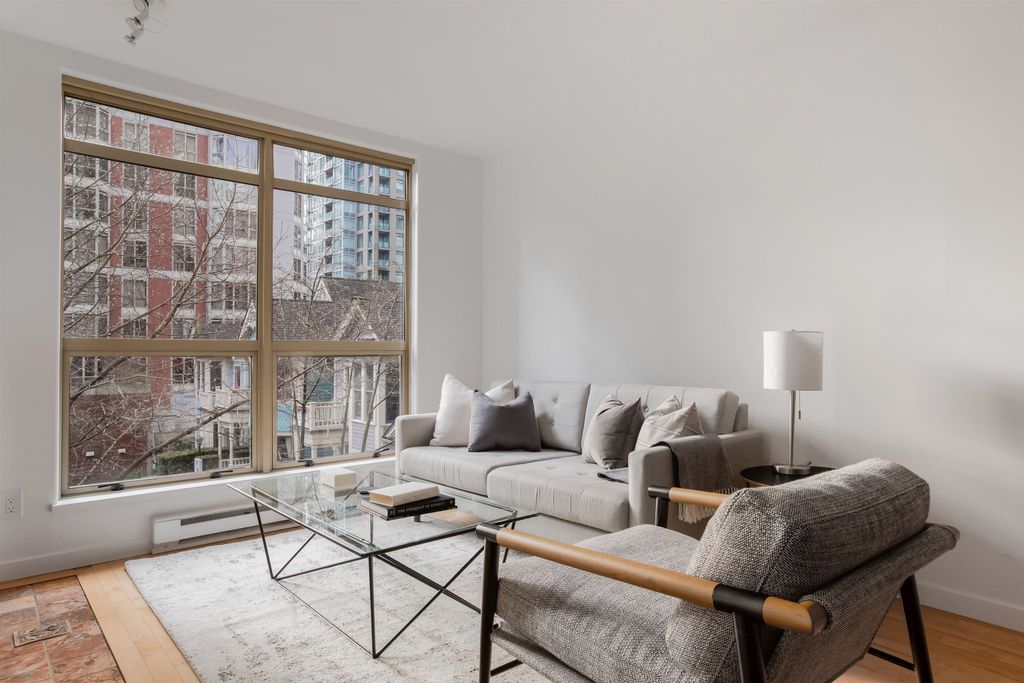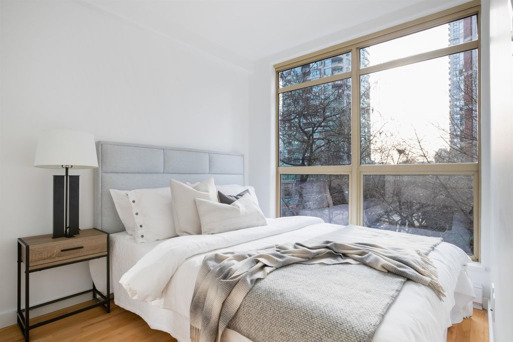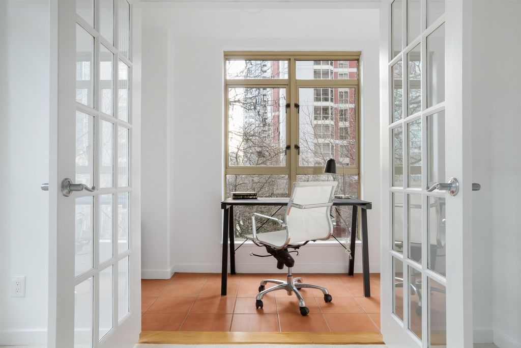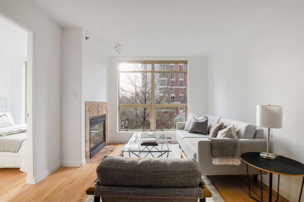 Rare 2 bedroom, 2 bath home featuring a solarium & flex space, all within an efficient layout in a prime location! Bosa built. Meticulously well-kept and in mostly original condition. Gas fireplace creates a cozy feel in the evenings. The generous primary bedroom offers plenty of room for a king-sized bed and is outfitted with an ensuite and walk-through wardrobe. The bright solarium is a great space that would function as a fantastic home office--ideal for working from home from. Enjoy tranquil urban vistas filled with greenery from each room. Take advantage of the gym, yoga room & sauna. Excellent building management plus building caretaker. Downtown, close to Vancouver's best shopping, restaurants & cafes, services and recreation. One parking included.