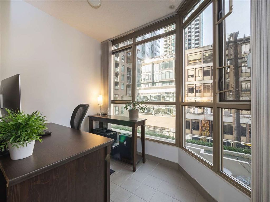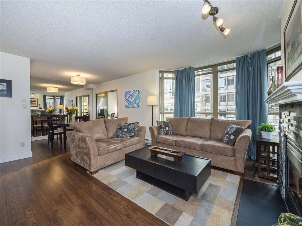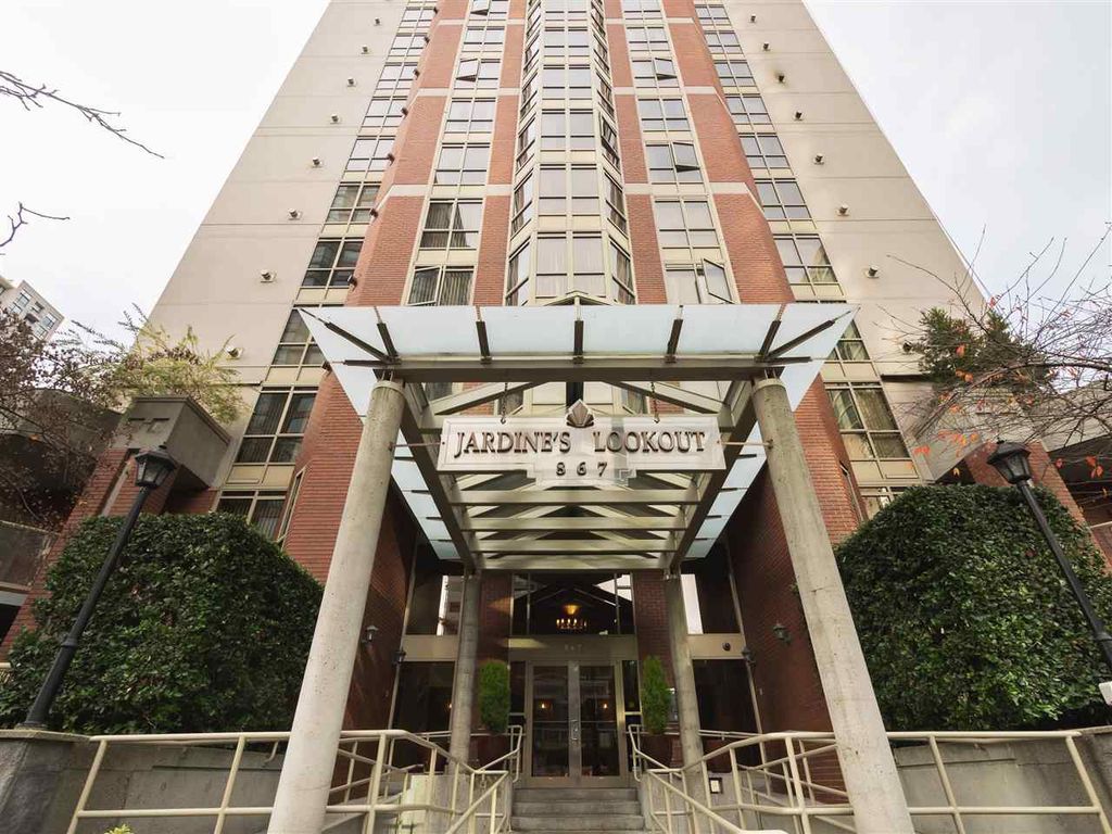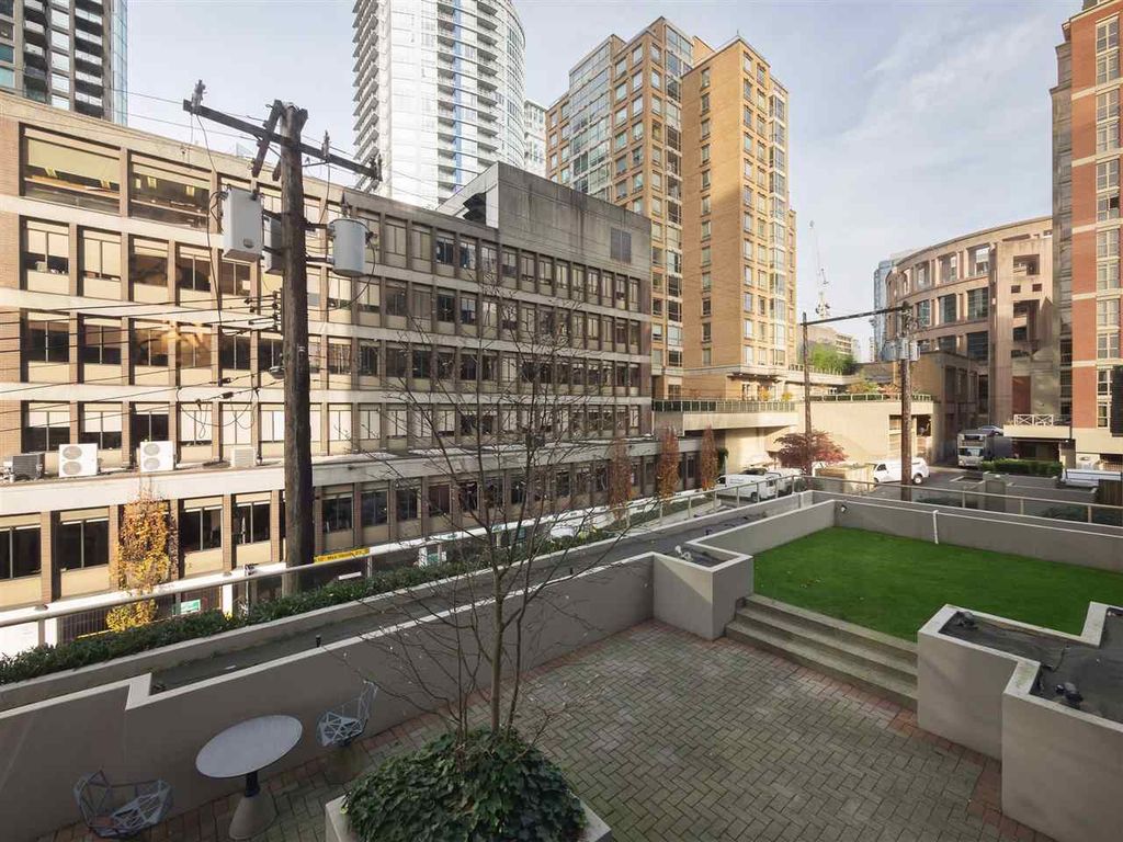 Jardine's Lookout. You couldn't be more central! The Yaletown galleries, cafes and the fun Robson shopping district surround you. The architecturally dynamic Central Library is across the way. Restaurants galore! Short stroll to BC Place, Rogers Arena, the Orpheum & Queen Elizabeth Theatres. From sports to entertainment, it's all on your doorstep. Love where you live in this totally updated 2 bedroom & den corner unit with walnut laminate floors, gorgeous quartz counters in kitchen with glass tile backsplash & S-S appliances. Fabulous walk-in shower & jetted tub! Convenient insuite storage plus a locker & parking. Serene view of cityscape, green space & heritage homes. Short walk to Skytrain & Canada Line. Pets OK with approval. Rentals limited to 25.