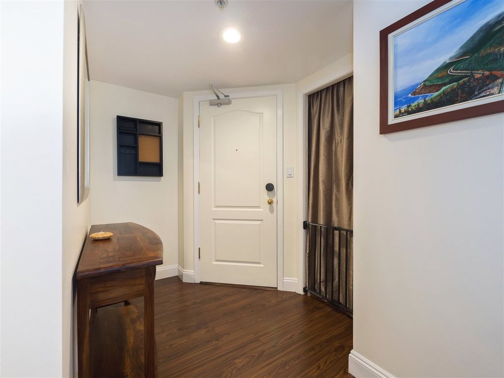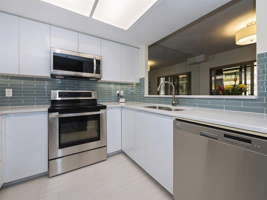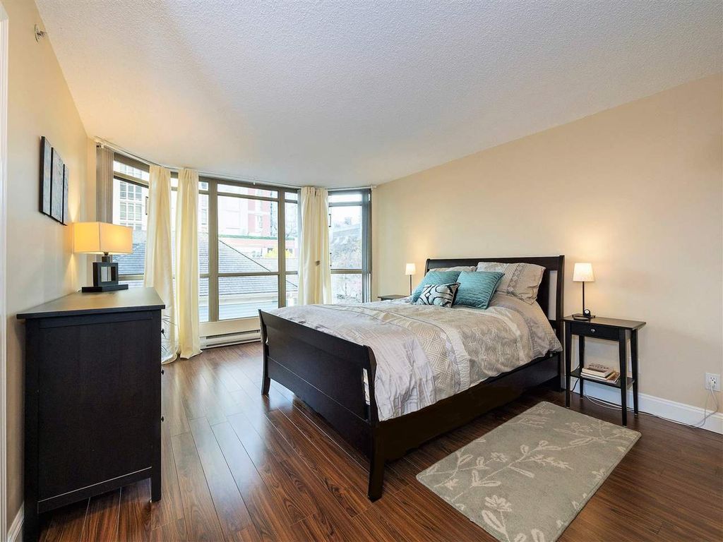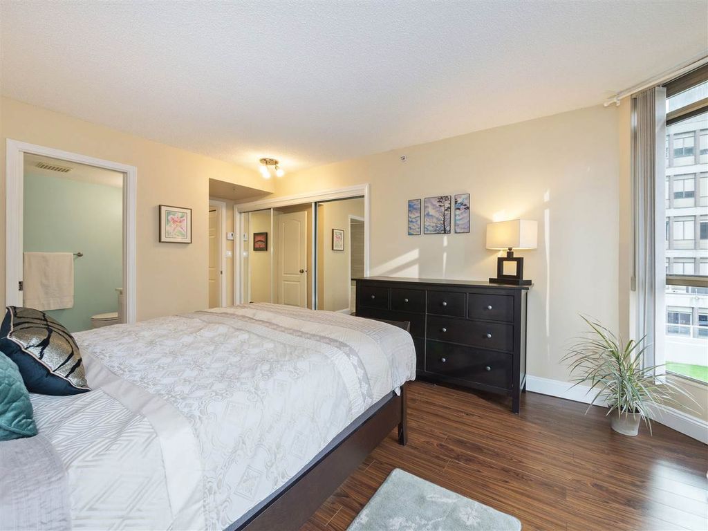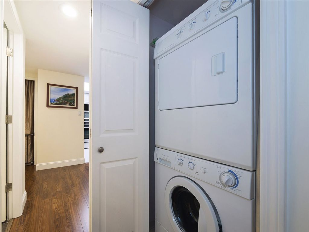 Jardine's Lookout. You couldn't be more central! The Yaletown galleries, cafes and the fun Robson shopping district surround you. The architecturally dynamic Central Library is across the way. Restaurants galore! Short stroll to BC Place, Rogers Arena, the Orpheum & Queen Elizabeth Theatres. From sports to entertainment, it's all on your doorstep. Love where you live in this totally updated 2 bedroom & den corner unit with walnut laminate floors, gorgeous quartz counters in kitchen with glass tile backsplash & S-S appliances. Fabulous walk-in shower & jetted tub! Convenient insuite storage plus a locker & parking. Serene view of cityscape, green space & heritage homes. Short walk to Skytrain & Canada Line. Pets OK with approval. Rentals limited to 25.