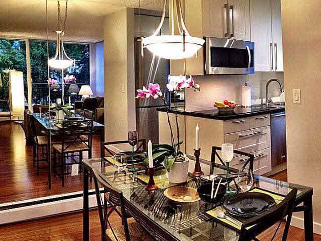 Stylish, beautifully renovated corner unit w/ natural ocean breeze flow-thru cooling, peek-a-boo views, on quiet tree-lined street just a block from seawall, 2 blks to beaches & all the West End offers. Efficient floorplan w/great storage + generous balcony. New modern ocean-outlook kitch: expanded/opened up, multipurpose intelligent design, Bosch-induction cooktop, s/s fridge/freezer, dishwasher, microwave/convection oven, glass tiling, solid counters. LED lights, engineered bamboo flrs, new blinds, fixtures, service upgrades & more. Fully tiled bath& queen-size bdrm. Leasehold til Dec. 2073! Rent includes caretaker, heat, hot water, taxes + bldg upgrade plan. Pet & rental friendly w/ separate supporting turnkey investment option.