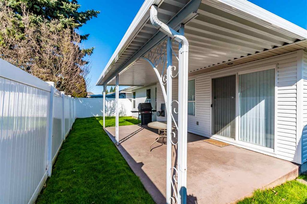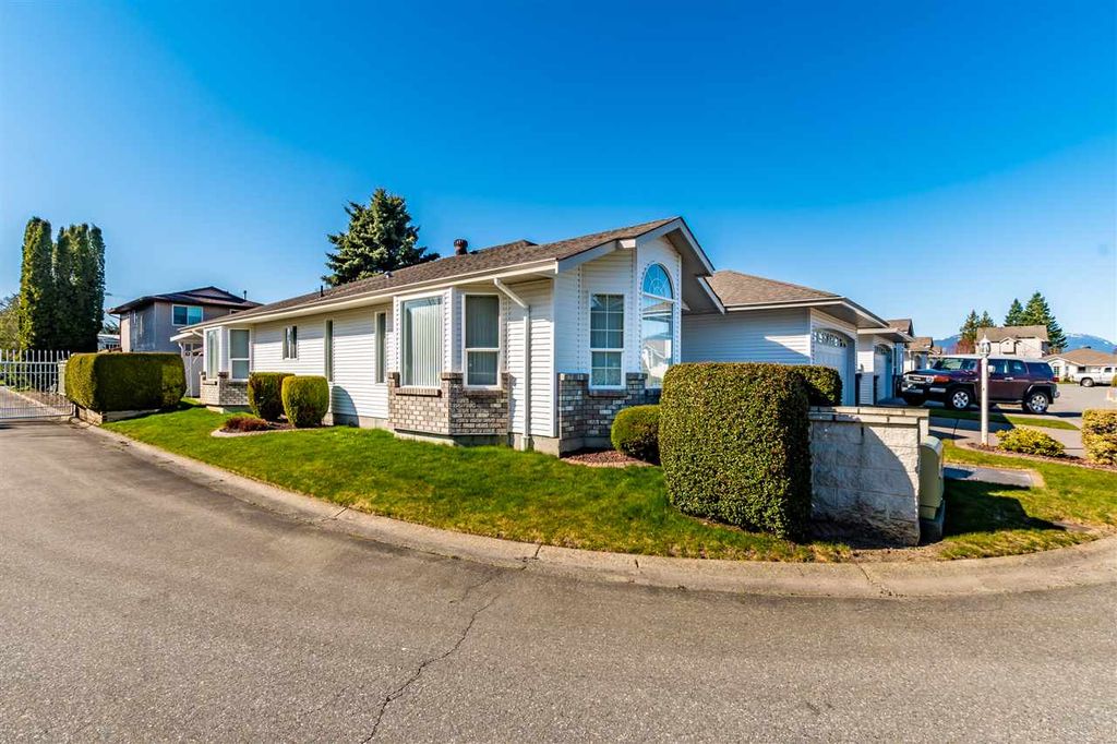 Welcome to the "Horizon" a beautiful gated community in Chilliwack.This 2 bed, 2 bath rancher has it all & offers a private setting being the last home on the street. Bright & airy w/neutral colors, updated laminate flooring in livingrm, dining room & hallways. Living room is spacious w/vaulted ceiling and large bay windows, formal dining room perfect for those family gatherings. The kitchen has a fantastic layout w/peninsula island & loads of cabinet space plus an additional eating area off of the kitchen. Large family room off of kitchen w/ n/g fireplace.The master bed can easily accommodate a king size bed,walk in closet and ensuite. 2nd bed is perfect for guests or office. Relax outside on the covered patio. Built-in vac, security system, RV parking in complex, vacant & easy to show