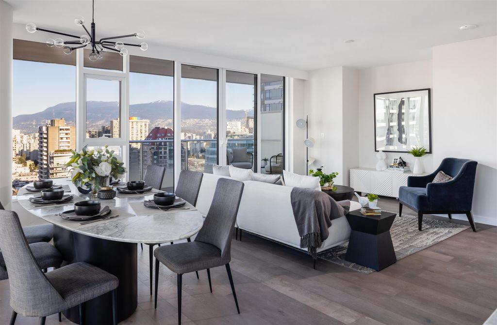 Welcome to 1335 Howe by Onni. This 986 SF 2 bed 2 bath + flex home offers A/C, smart-home system, automated lighting, built-in speakers, and motorized blinds, make this home the perfect place to relax or entertain. Chef inspired kitchen features premium appliance package with Sub Zero, Wolf & Asko, double stainless steel sink with Dornbracht polished chrome faucet, flex room and wine fridge integrated into a gorgeous oversized natural stone island. Amenities include an outdoor pool, hot tub, gym, steam, sauna, lounge, party room, enclosed dog area & 24 hr concierge. 1 covered parking & locker. Conveniently located just steps away from Yaletown, the Seawall, Sunset Beach and many everyday conveniences & activities.