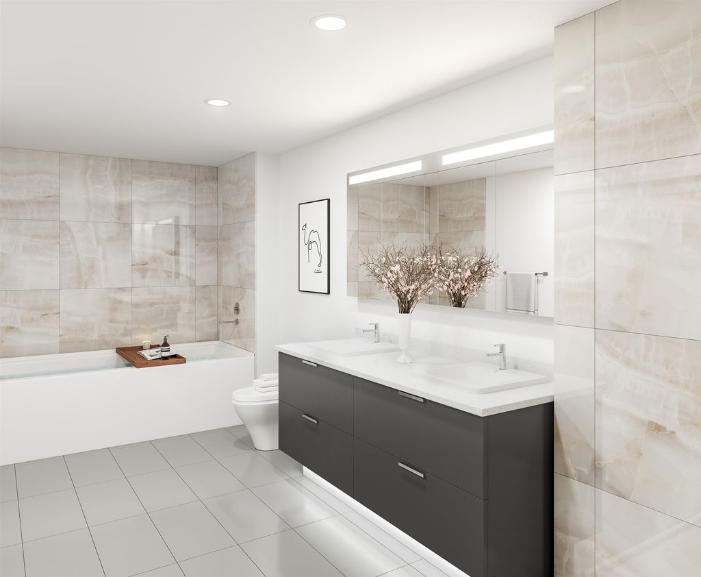 This 2 bedroom, 2 bath home is located at Hunter at Lynn Creek, Intergulf’s latest development in the most significant new community in North Vancouver. Spacious & bright, this Northwest facing home offers an open layout with elegant wide plank flooring, quartz counters, porcelain tile, back-splash in the kitchens and much more. Automated lighting and air conditioning create an optimal comfort for daily living. Amenities include a private health club just a few steps away. Visit our presentation center to find out more about the Lynn Creek Town Center and view our display home! Contact L.R. for an appointment. 5% credit included on all homes (based on purchased) at completion. Completion anticipated for early 2022.