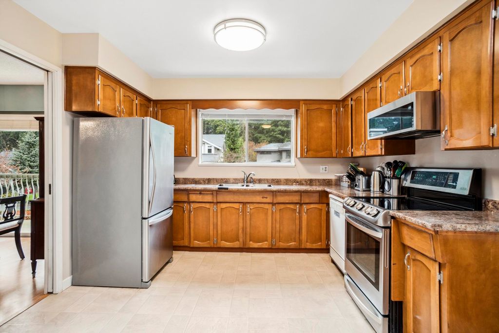 Well maintained family home on one of Blueridge’s most coveted cul-de-sacs. Offering 4/5 bdrms, 3 baths, & over 2,700 sq/ft w/ suite potential. The main floor offers nearly 1,600 sq/ft w/ a practical layout that includes a spacious living rm w/ gas fp & sliders to a front deck. The adjacent dining area is a good size for family gatherings/entertaining. The kitchen features s/s appliances, eating area, and access to a large family room w/ sliders to a back deck. Completing the main are 3 bdrms, 2 baths incl. the primary w/ a 3-piece ensuite. The walk-out lower level incls a rec rm, wet bar, large bdrm (previously 2 separate rooms and easily converted back), & separate access for suite potential. Terrific area for families and active individuals w/ trails and schools moments from your door.