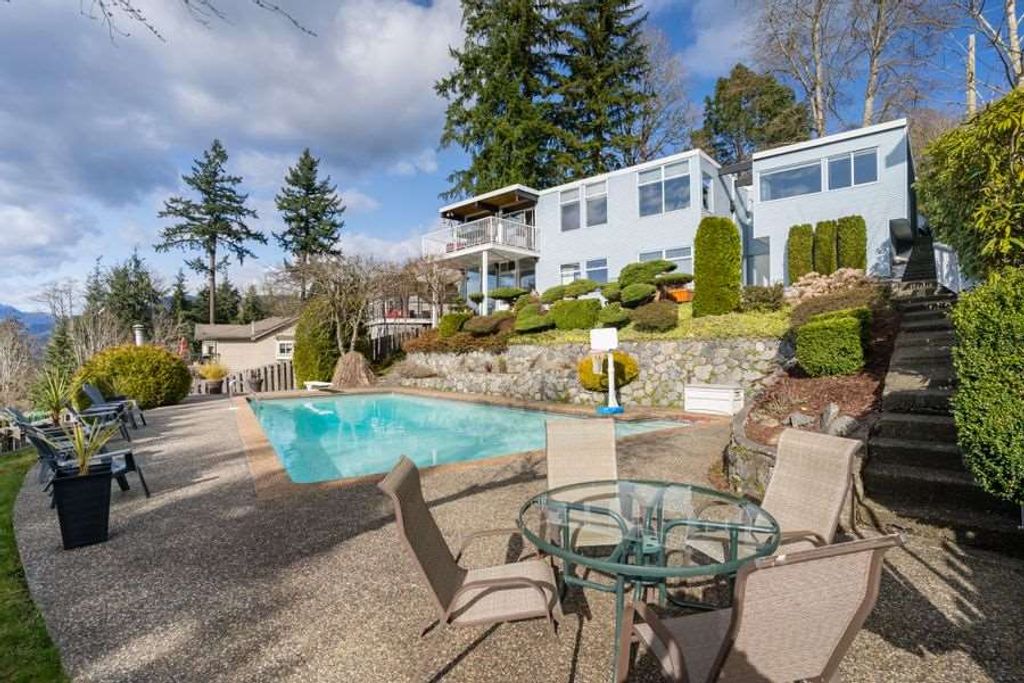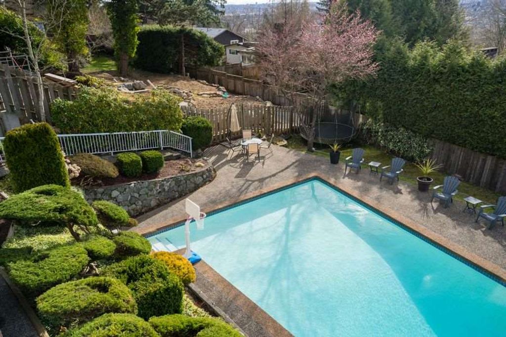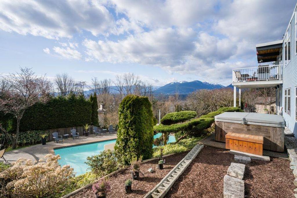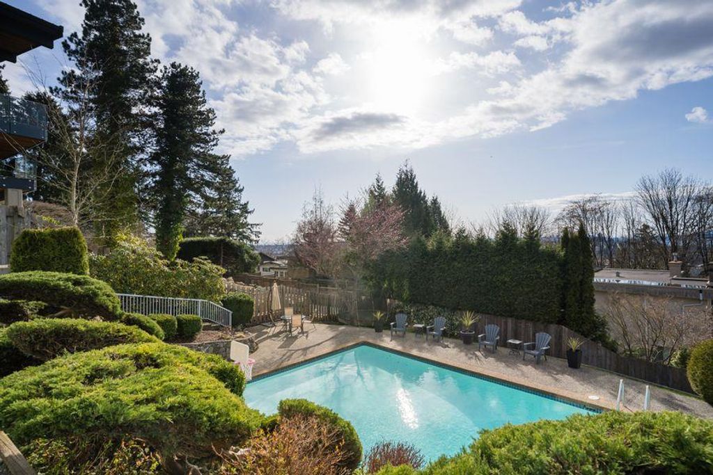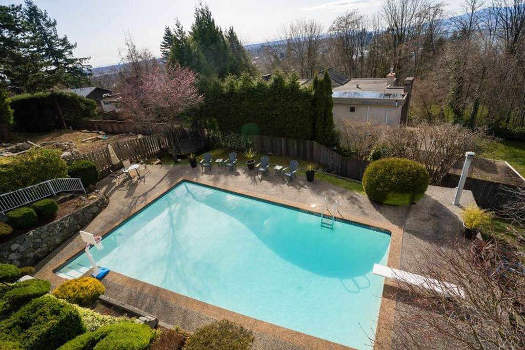 West Coast style Home on a quiet cul-de-sac street in desirable Capitol Hill features 5 bedrooms and 3 bathrooms on 2 levels. Open floorplan, large principal light-filled rooms with Sweeping views of the North Shore Mountains, Burrard Inlet and the City! Beautifully maintained 85 x 127 lot with gorgeous bonsai trees, rock garden and green foliage. Private outdoor swimming pool and hot tub for a perfect stay at home vacation! Close to schools, shopping and Confederation Park. A pleasure to show!