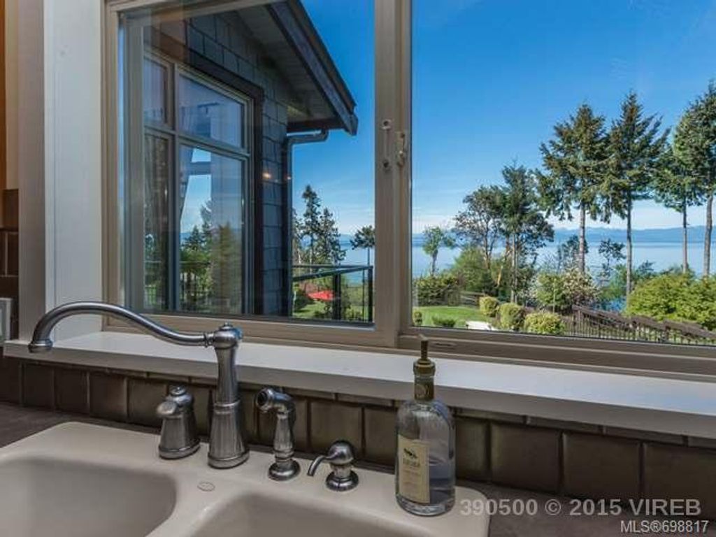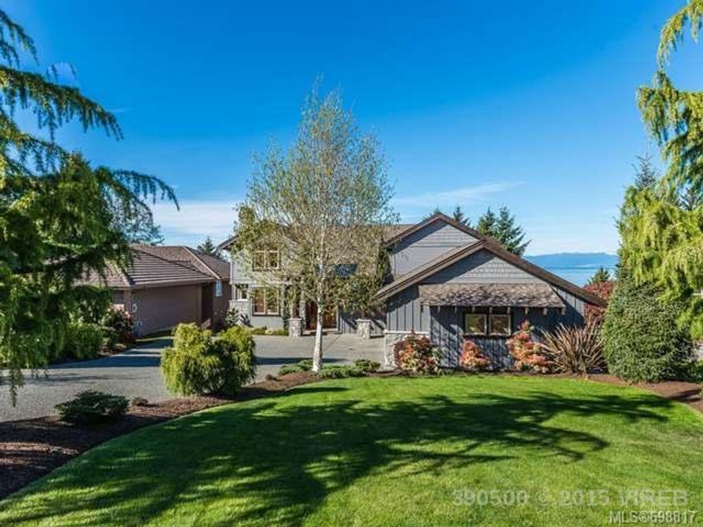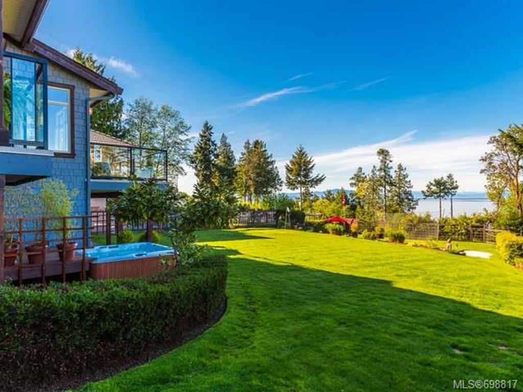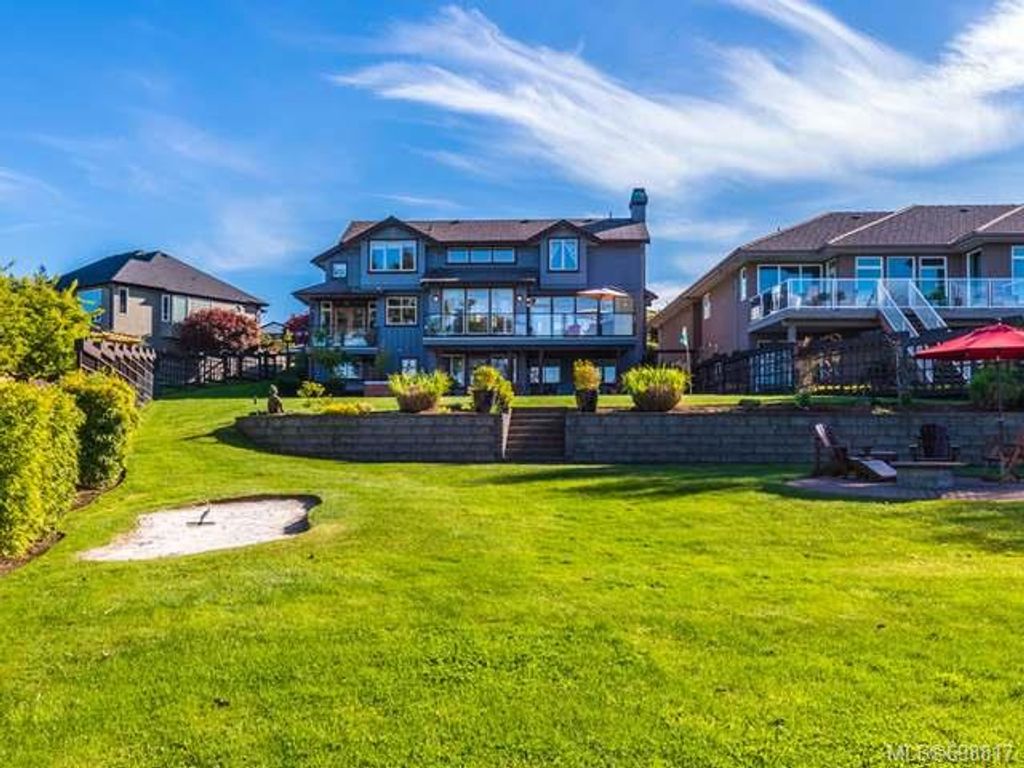 Rare & spectacular waterfront estate with sweeping ocean views & beach access. The architect-designed home, custom-built & flawlessly finished by Westmark, is in a class of its own. The west coast exterior stuns with highlights of cedar, smoky granite & copper. A level driveway leads to an oversized fir door, soaring coffered ceilings, gorgeous fir floors, interior doors, built-ins & exposed beams. Flooded with natural light & epic ocean views, the 3900+ sq.ft. open-concept space includes a designer kitchen with granite, stainless appliances & walk-in pantry. The elegant master suite features a sunrise window seat, luxurious ensuite with walk-in shower, soaker tub, custom vanity & walk-in closet with fir built-ins & laundry chute. The fully-finished & plumbed lower level has plenty of storage & private decks. With nearly 1 acre of level landscaped property including a cozy fire pit, golf net & sand trap, hot tub & several decks, this home is a luxury escape.