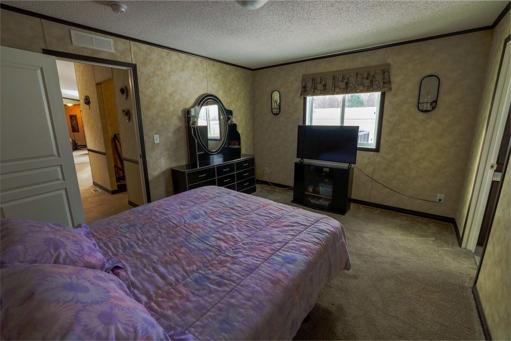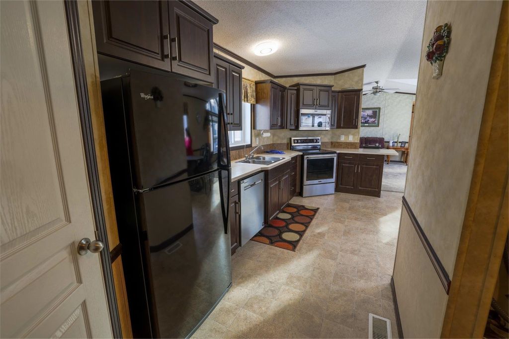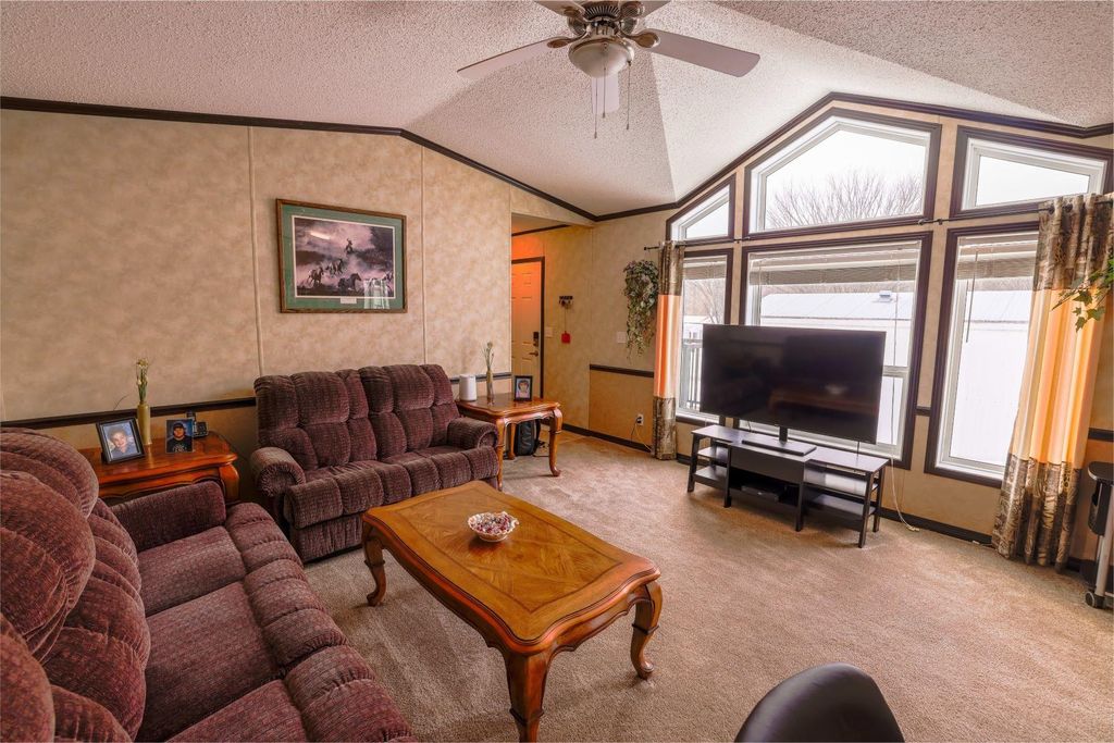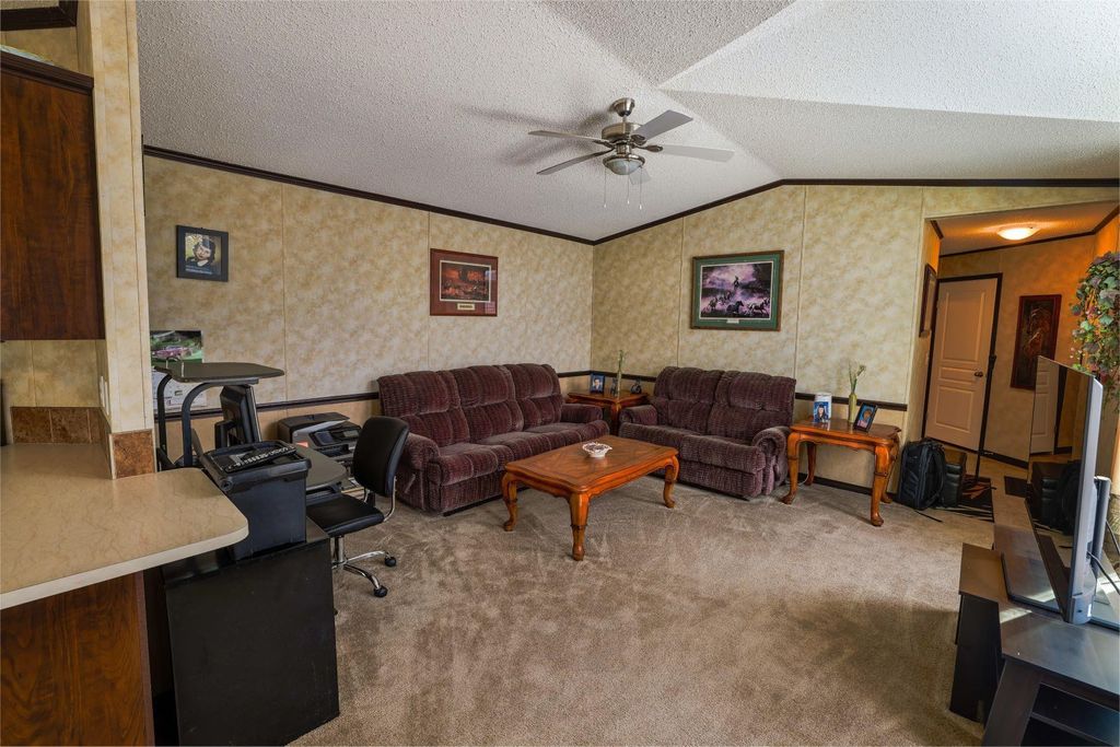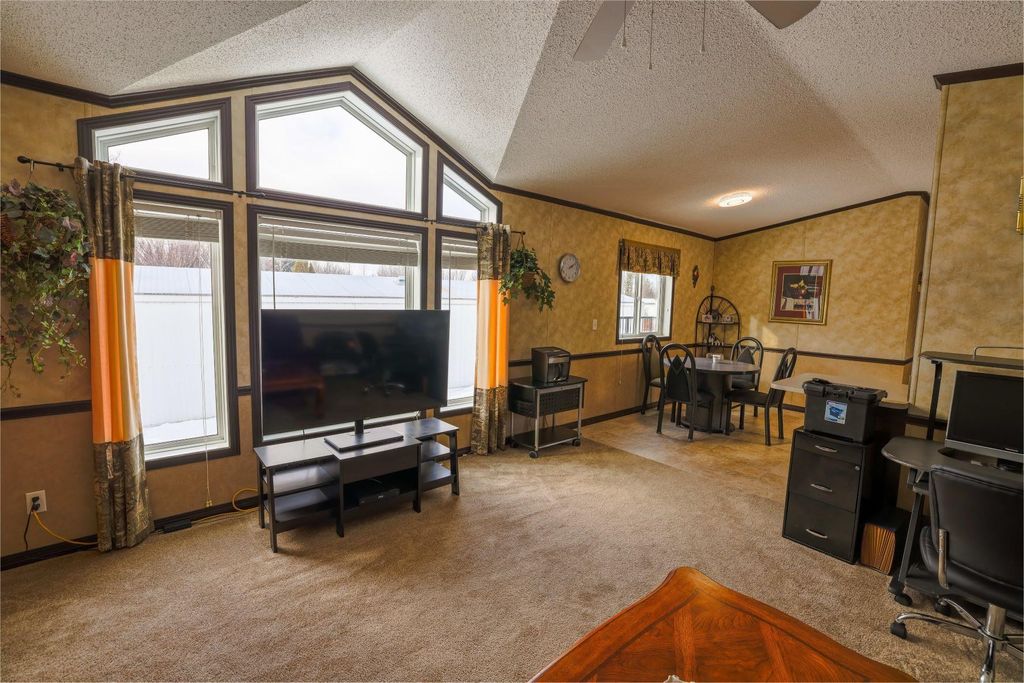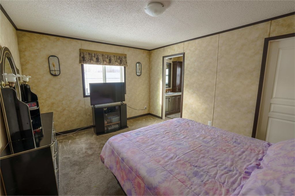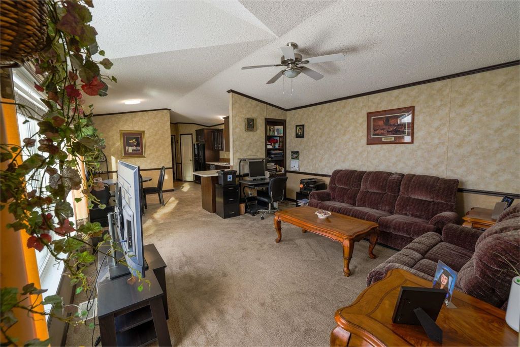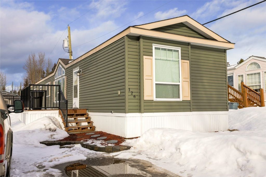 Newer 3 Bedroom, 2 bath mobile (16' X 76') in desirable mobile home park. Quality finishes, vaulted ceilings, cabinets with crown mouldings, closet pantry, black appliances, ceramic tile backsplashes and two decks for outside enjoyment. Newer stainless appliances in 2021. Bathrooms have linen towers and the master bedroom ensuite has a soaker tub. Two bedrooms have a walk-in closet and the home has residential style doors. Landscaped with mature trees and walking distance to the Aberdeen Golf Course. Shed is included and recreation storage is available. 10 minutes to the Spruceland Shopping Center or to the Hart Shopping conveniences. Pad rent includes garbage pickup and snow removal.