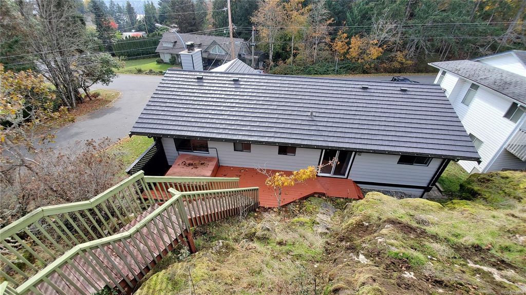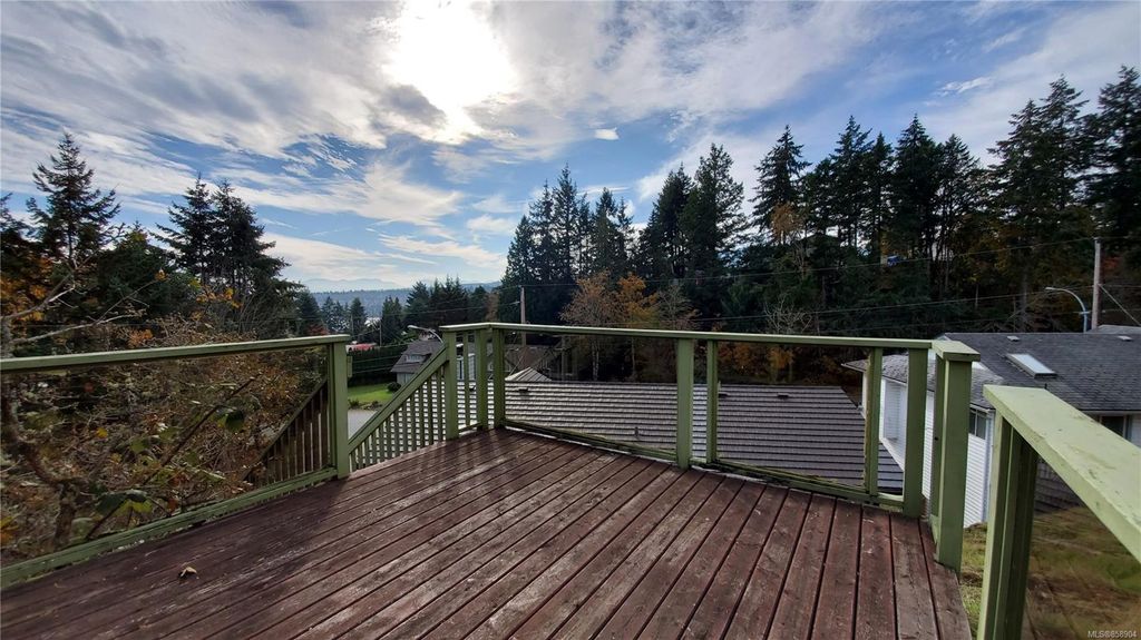 Great family home located on a hillside lot in a very quiet neighbourhood. Interior offers a huge entry way, 4 bedrooms plus 2 dens, 3 bathrooms, 2 wood burning fireplaces for the cold winter months, huge living room, and a family room in the lower level which has potential for a suite or can be left as is for entertainment. Exterior offers RV parking, viewing deck in the back, low maintenance yard, and a long lasting metal roof. Upgrades are new railings and vinyl on the balcony, new gutters and downspout, new paint on the exterior trims, and new paint interior of entire house. Great location close to school, shopping /grocery shopping, bus routes, Departure Bay Park, restaurants, and more.