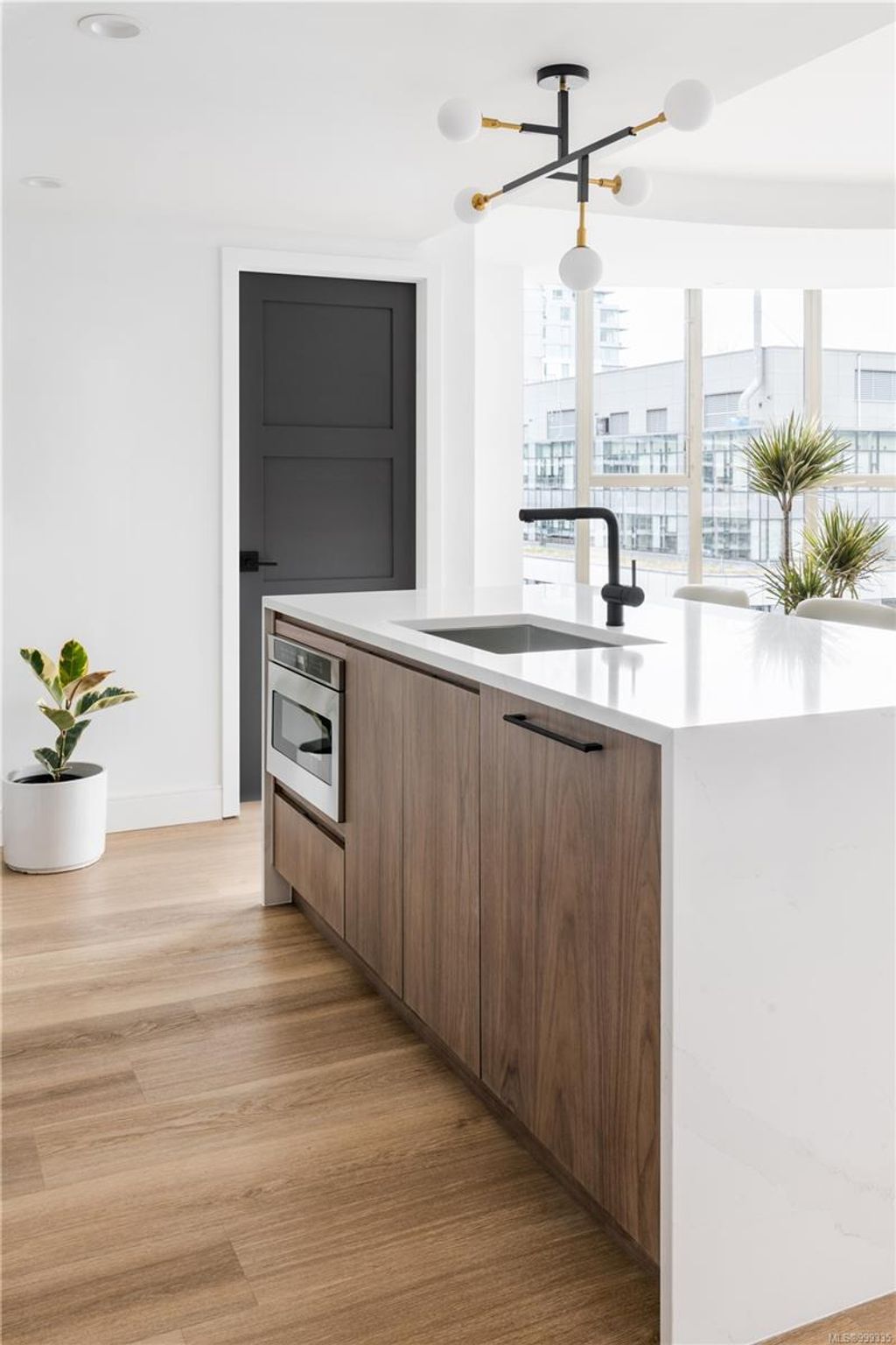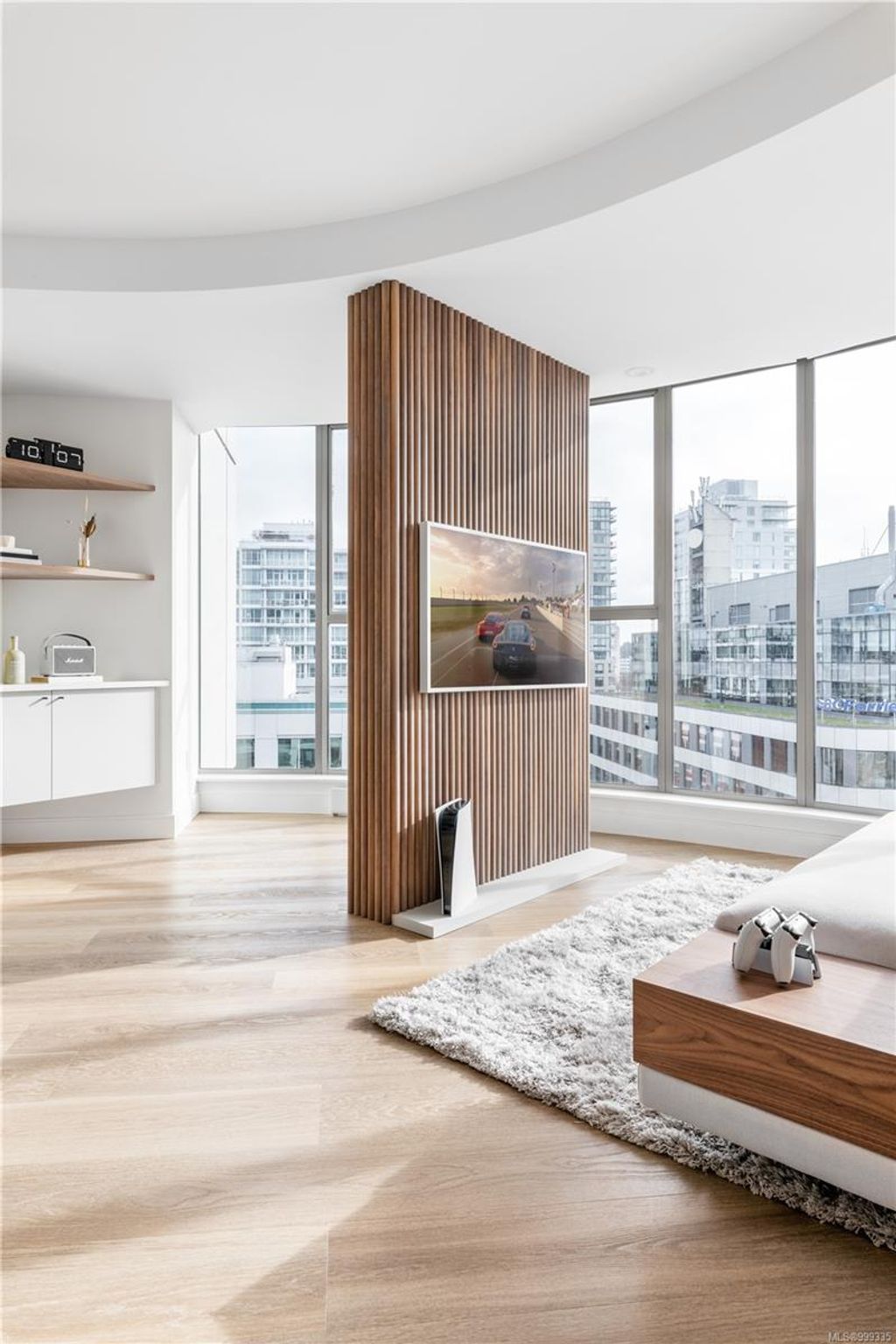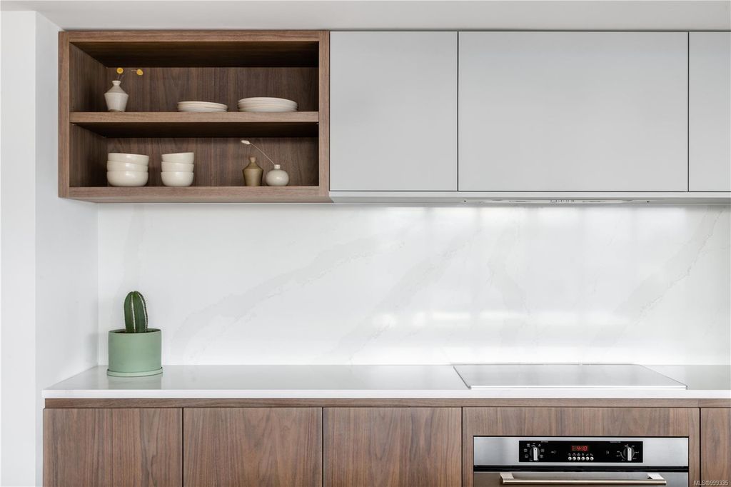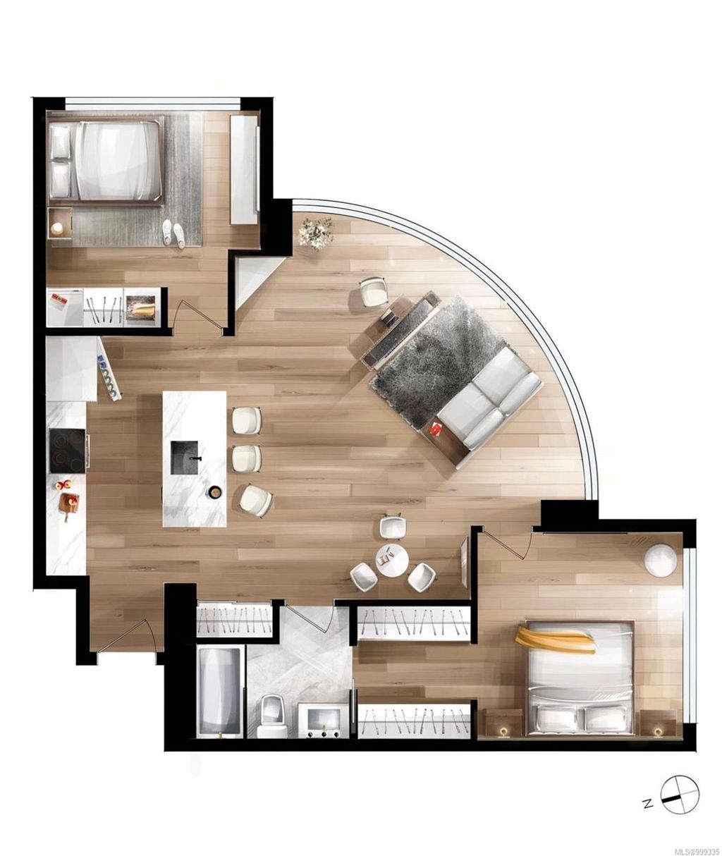 One of the more superior renovated condos in Downtown Victoria, this is Unit 901; a true, top-of-the-line finish, completely remodelled and tech-updated corner unit in the iconic Art Deco Juliet building. The southeast-facing 9th-floor condo boasts luxurious finishes, including Buster+Punch hardware, a Thomas+Birch custom kitchen w/ wood millwork, quartz countertops and backsplash, premium S/S appliances, motorized curtains, and a fully tiled 4-piece bath. A one-of-a-kind rounded wall of floor-to-ceiling glass provides stunning panoramic city views, extending to the Olympic Mountains and the Dallas Rd waterfront. The exceptional layout features two well-separated bedrooms, a custom feature wall with office stand, bar, and in-unit laundry. Building features inc Rooftop w/ 360-degree views and BBQs, unrestricted rentals, and pet friendly. This condo is ideal as a great investment or a perfect home, steps away from shopping, dining, and all Downtown Victoria offers.