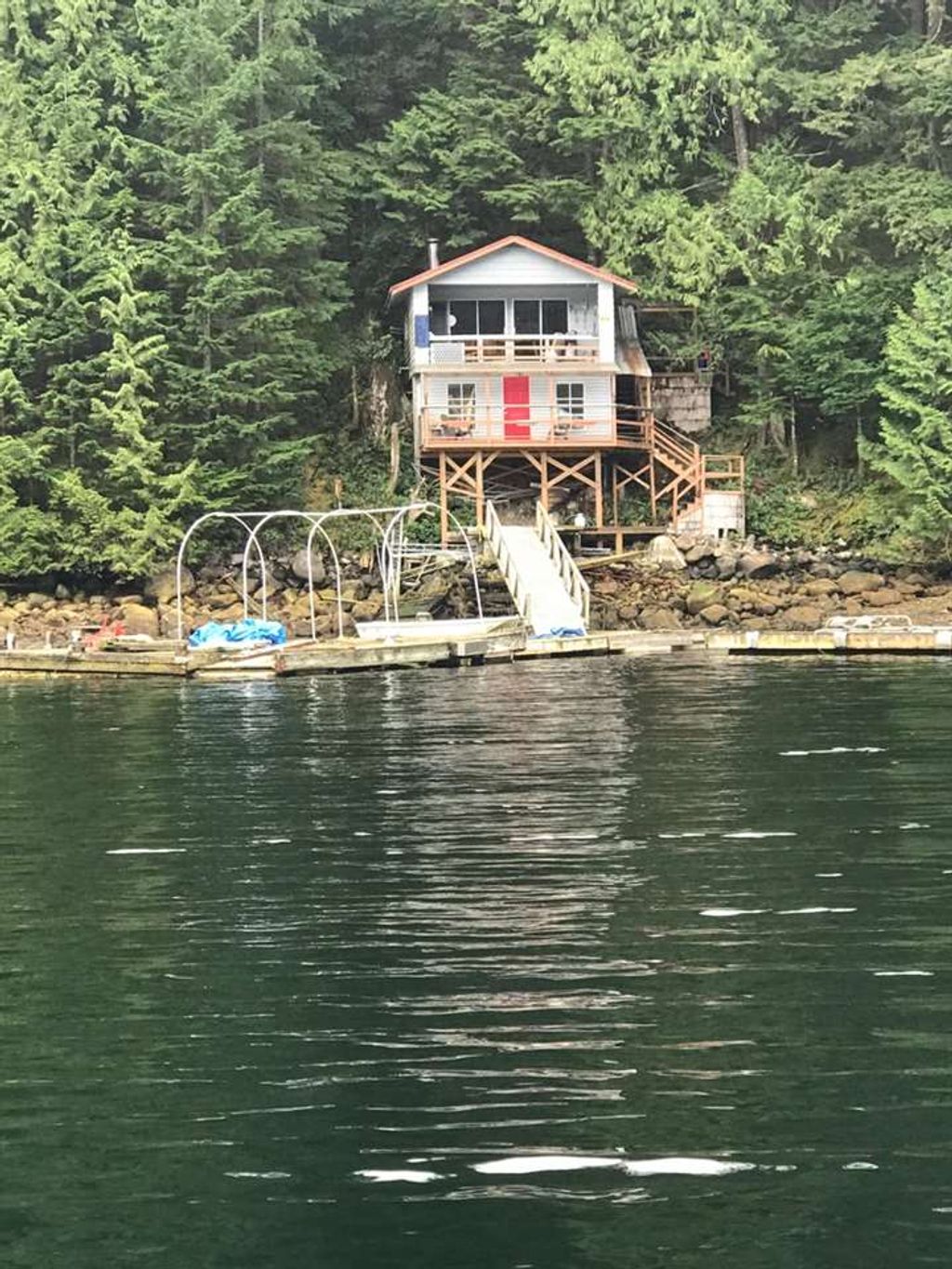 Great opportunity to own a .67 of an acre, freehold, waterfront property that is close to Vancouver. This property is on the sunny side of the mountain with spectacular views over Johnson Bay, Indian Arm. Perfect for kayaking and recreation, plus you can just get away from it all. "Far from the Madding Crown" Live off the grid. Being sold at land value only, but, you also get an older cabin, (approximately 50 yrs) with a 4 year old roof. Set up for recreation outings. Comes with furniture and has a dock. This is the best value for waterfront property yet. It is freehold NOT leasehold. Can only be accessed by boat. 15 minutes from Deep Cove and about 30 mins from Port Moody. The seller is willing to negotiate possibly carrying a mortgage.