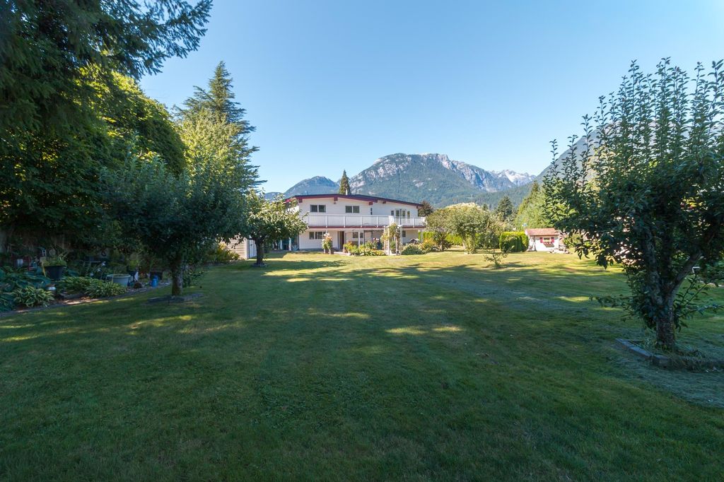 One of a kind property in a Premier Squamish Location, on an expansive 25,000+ estate lot. Designed w/a spacious 2 story layout, the main flr offers easy suite conversion. Oversized windows flood the home w/ natural light while showcasing breathtaking views of the surrounding mountain ranges.At the heart of the home, the kitchen is designed for gathering, featuring a generous center island, custom wood cabinetry & updated appliances. From here, step out onto the wraparound deck, the perfect spot to soak up views & enjoy your morning coffee.The backyard is truly an entertainer's dream & feels like your own private park w/ space for kids to play complete w/ mature fruit trees & garden. Abundance of outdoor space for cars, RV & Boat.OPEN HOUSE SAT October 18 11:30 - 1:30