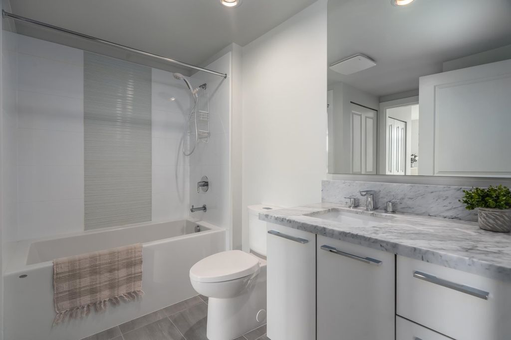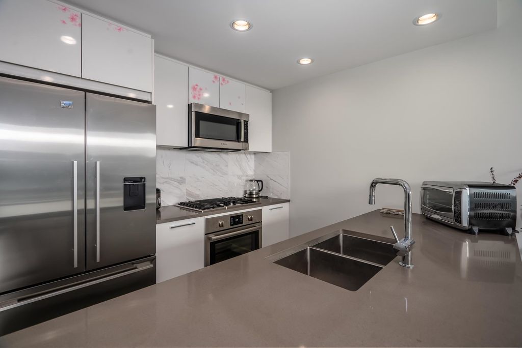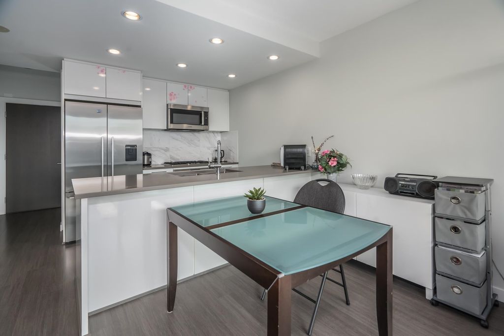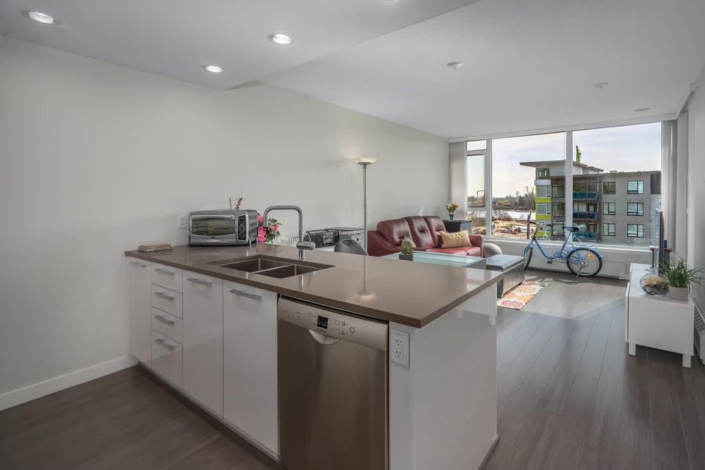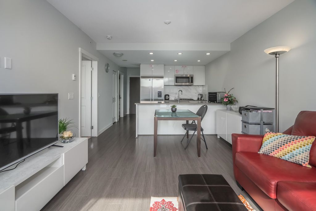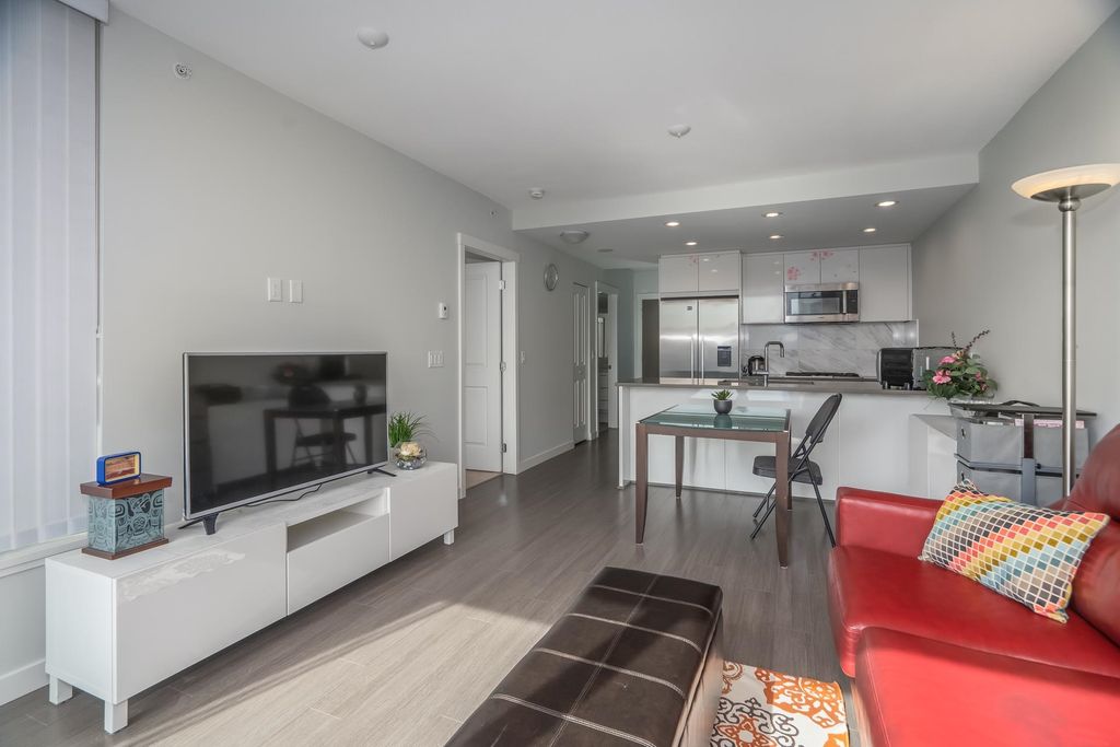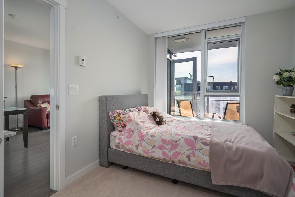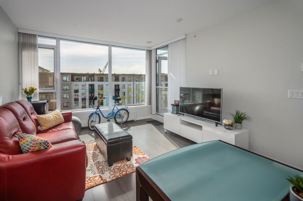 Welcome to this stunning one bedroom and den built by Polygon located in the highly sought-after River District of South Vancouver. This newer south facing condo boasts an open concept living space, complete with modern finishes and plenty of natural light. The kitchen features Fisher & Paykel refrigerator, Bosch stainless steel gas range and dishwasher, quartz countertops, and ample storage space. The living area is perfect for entertaining guests or relaxing after a long day, with large windows that offer stunning views of the surrounding neighborhood. The bedroom is spacious and bright, with plenty of closet space for all your storage needs. The bathroom is sleek and modern, with a deep soaker tub and stylish fixtures. Steps away to shopping, banking, restaurants, trails and parks.