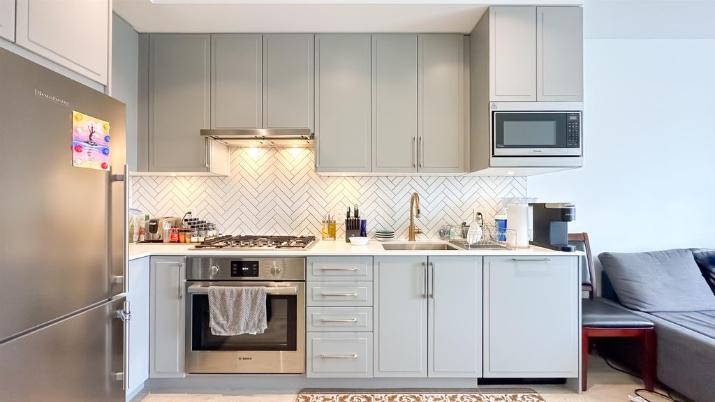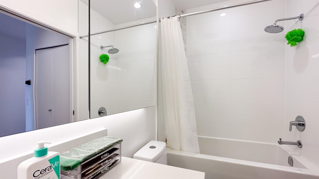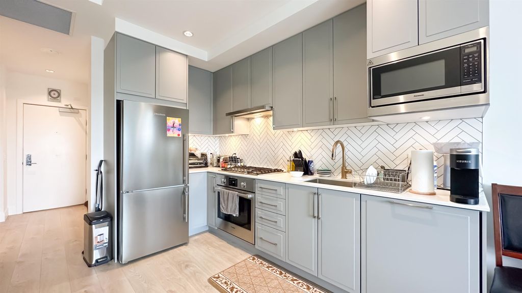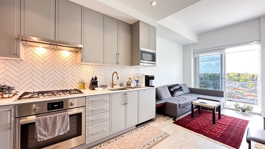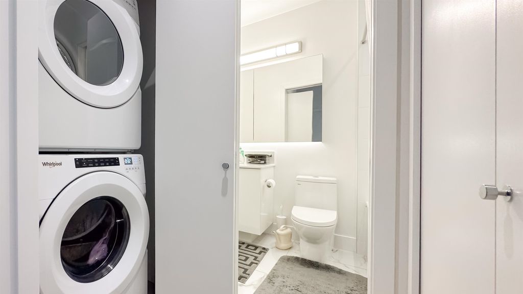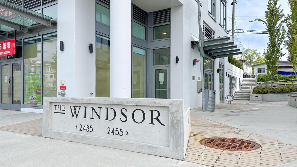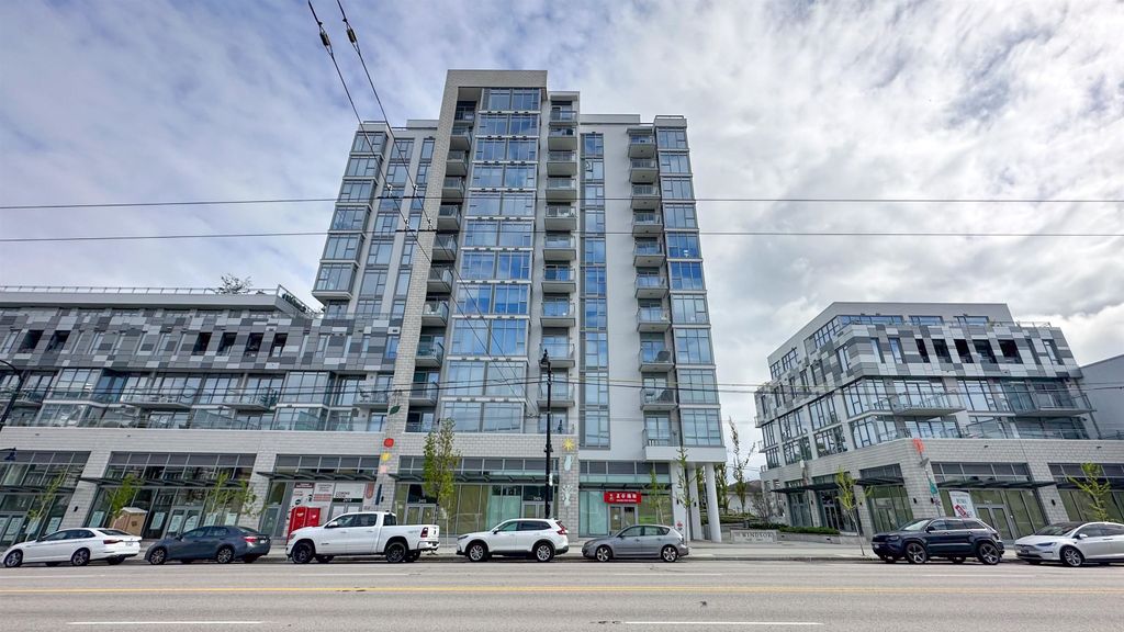The Windsor by Imani Development is a pristine 12-story concrete tower built in 2021 located in Norquay Village. This SW facing 1BR+1DEN+1 solarium (could be used as 2nd DEN) 624 sqft unit is kept in its original, mint condition with AC, laminate wood flooring, custom closets & cabinets, solid quartz countertop, premium Bloomberg/Bosch stainless steel appliance package, spa-like bathrooms, etc. Positioned on one of the highest points in the city, it has a stunning, unobstructed views of the downtown skyline & North Shore Mountains. Amenities include a rooftop courtyard BBQ, party room & fitness. Close distance to two SkyTrain stations, Norquay & Slocan parks, Gladstone Secondary, Norquay Elementary, shops & excellent dining options. 1 parking. Open house on Sat & Sun, May 20 & 21, 2-4pm.