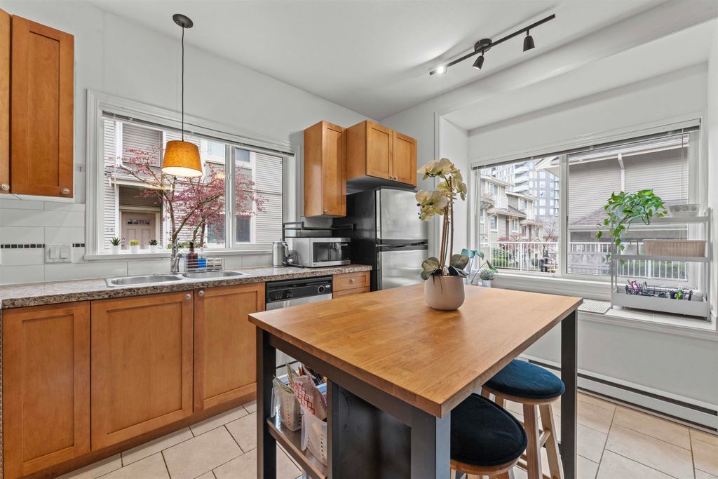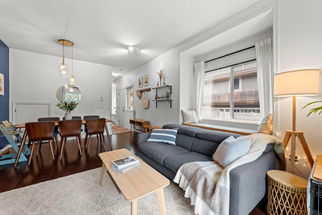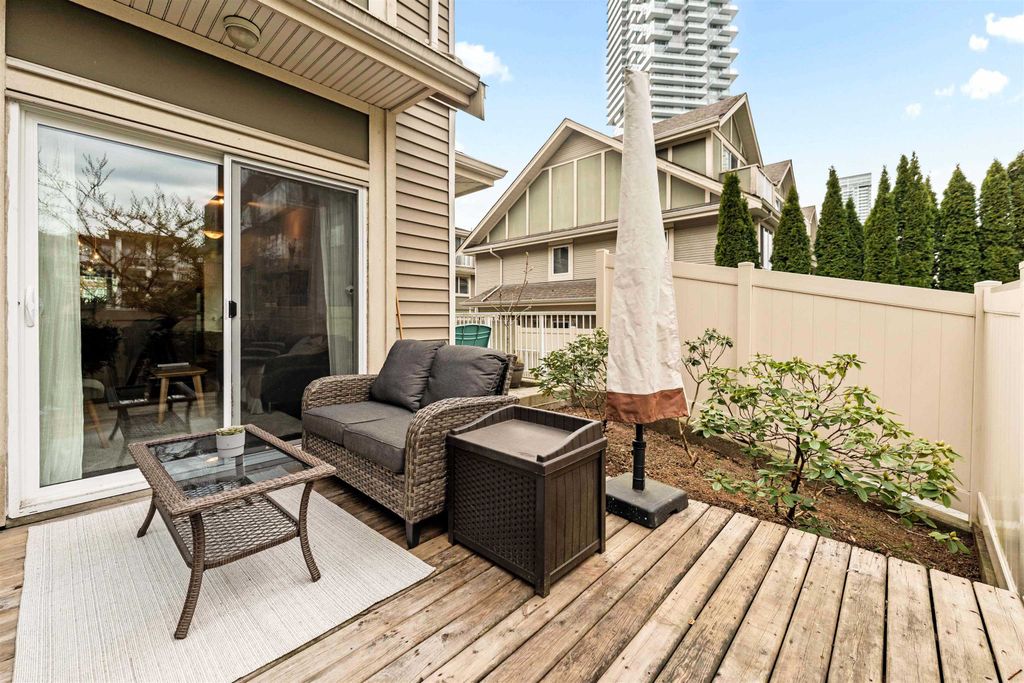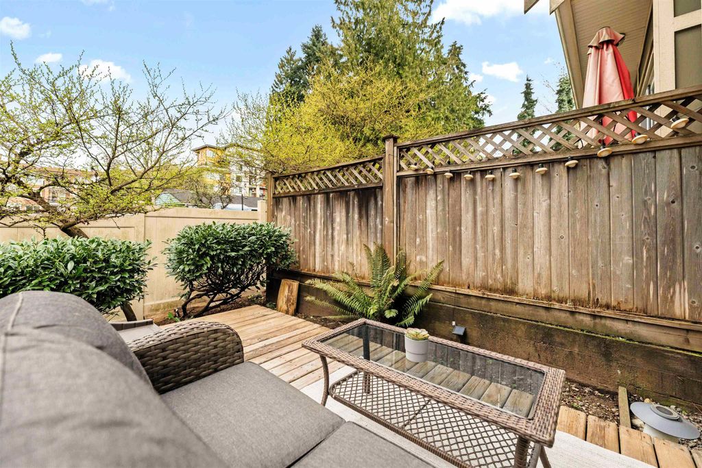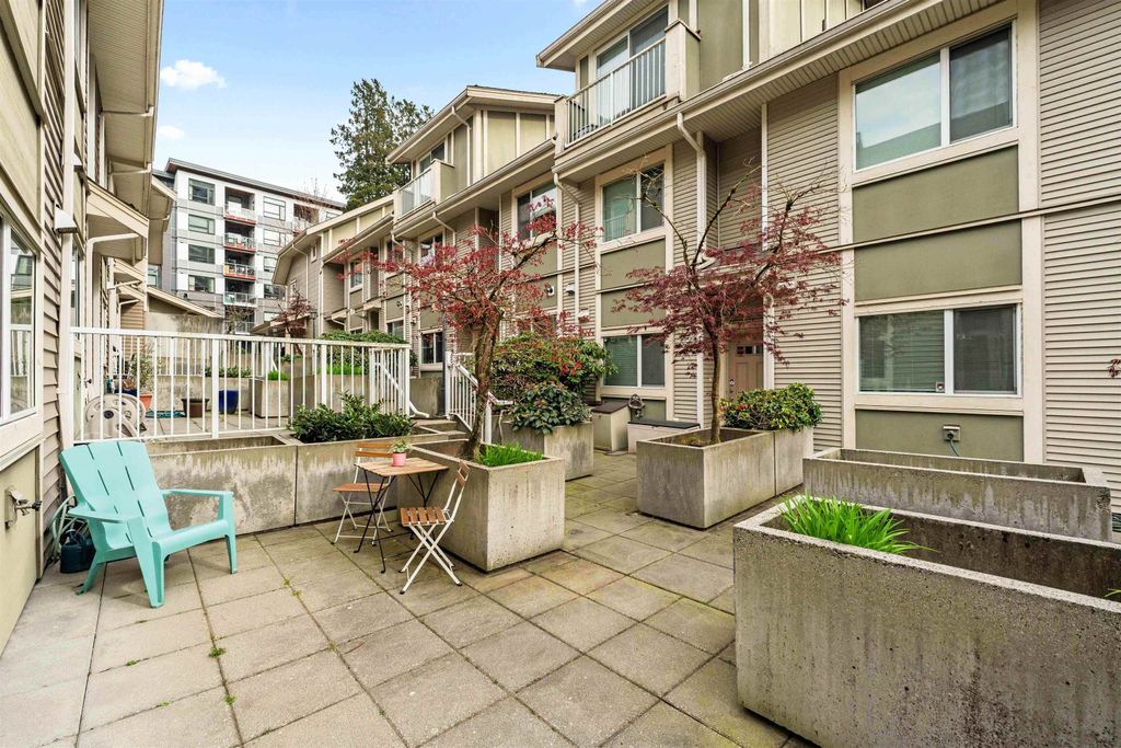 LOCATION LOCATION LOCATION! This rarely available corner townhome is located on a quiet cul-de-sac behind Burquitlam Park just steps from SkyTrain station, Safeway, YMCA, coffee shops, & more. Upon entering this immaculate home loved by the owners since 2017, you're greeted with a functional layout with an abundance of natural light from windows on 3 sides. The bright & airy kitchen has granite countertops, S/S appliance & updated hood fan. An open living & dining area features engineered hardwood, deck access to fenced yard, & additional storage + crawlspace under stairs. Upstairs features 2 separate spacious bedrooms & 1 full bath. Close to all levels of schools, transit, parks & shopping, this home is perfect for a small family. 2 Parking 1 Locker. Open house Sat/Sun April 25/26th 2-4pm