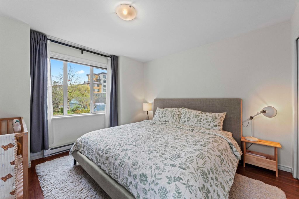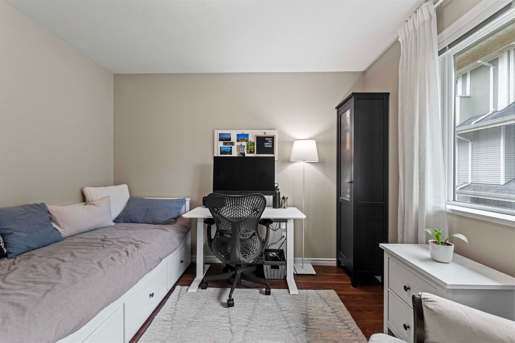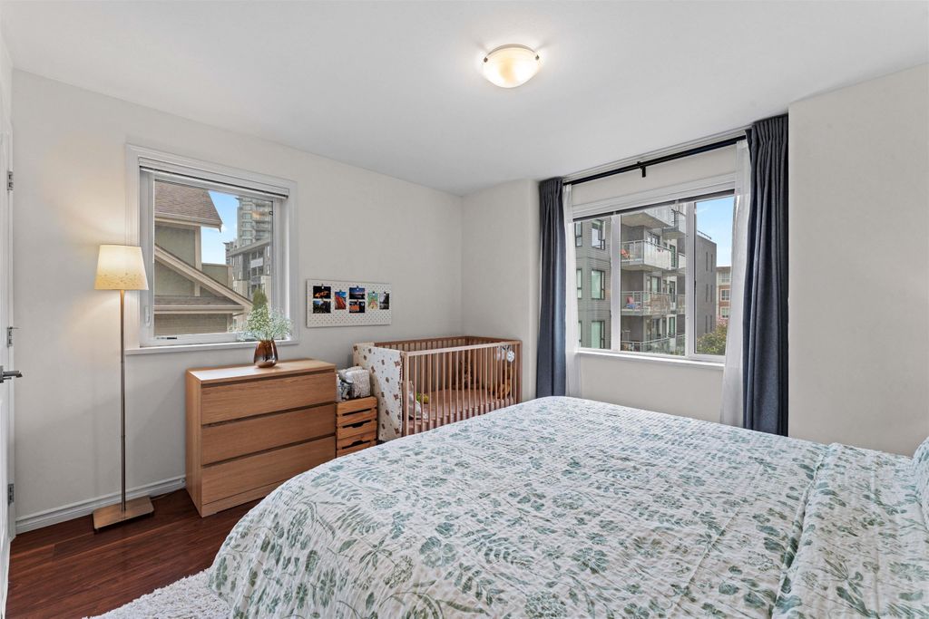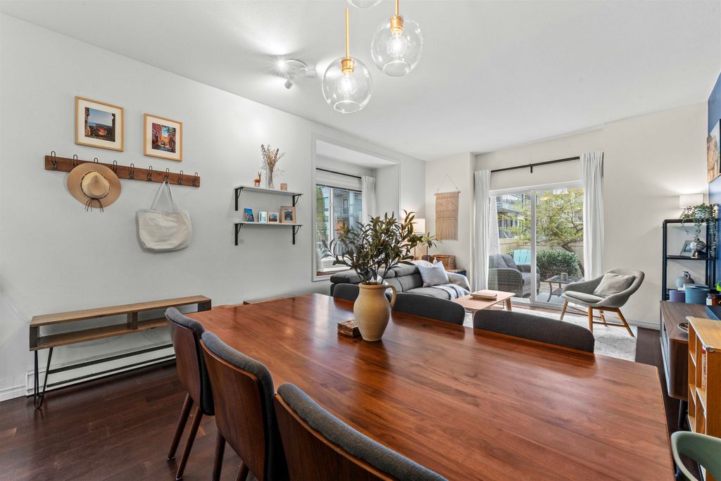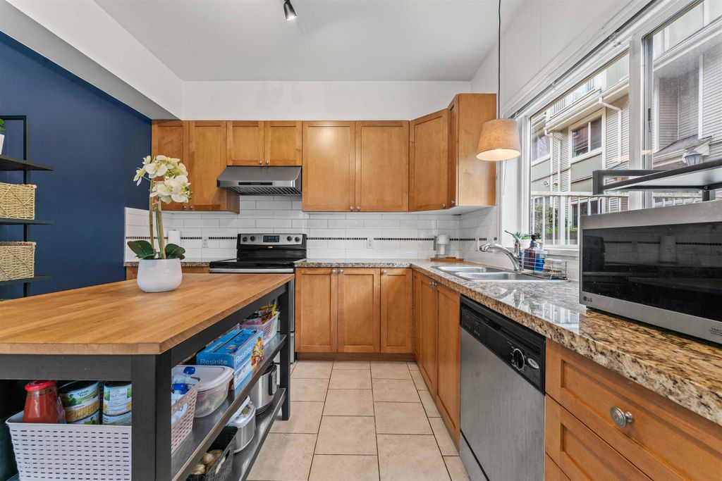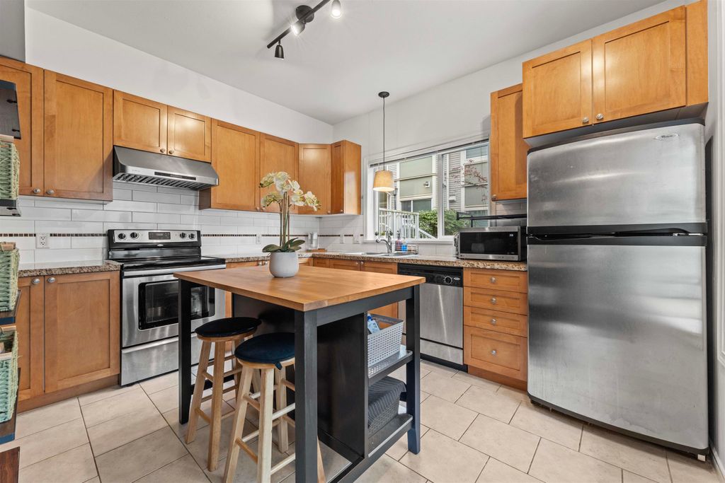 LOCATION LOCATION LOCATION! This rarely available corner townhome is located on a quiet cul-de-sac behind Burquitlam Park just steps from SkyTrain station, Safeway, YMCA, coffee shops, & more. Upon entering this immaculate home loved by the owners since 2017, you're greeted with a functional layout with an abundance of natural light from windows on 3 sides. The bright & airy kitchen has granite countertops, S/S appliance & updated hood fan. An open living & dining area features engineered hardwood, deck access to fenced yard, & additional storage + crawlspace under stairs. Upstairs features 2 separate spacious bedrooms & 1 full bath. Close to all levels of schools, transit, parks & shopping, this home is perfect for a small family. 2 Parking 1 Locker. Open house Sat/Sun April 25/26th 2-4pm