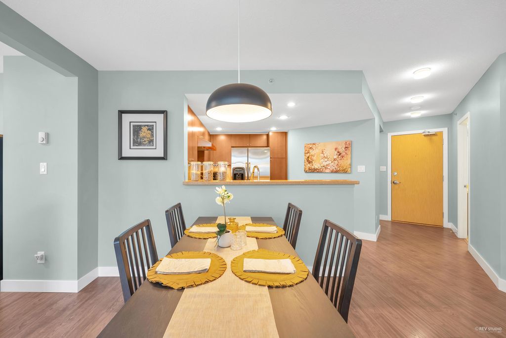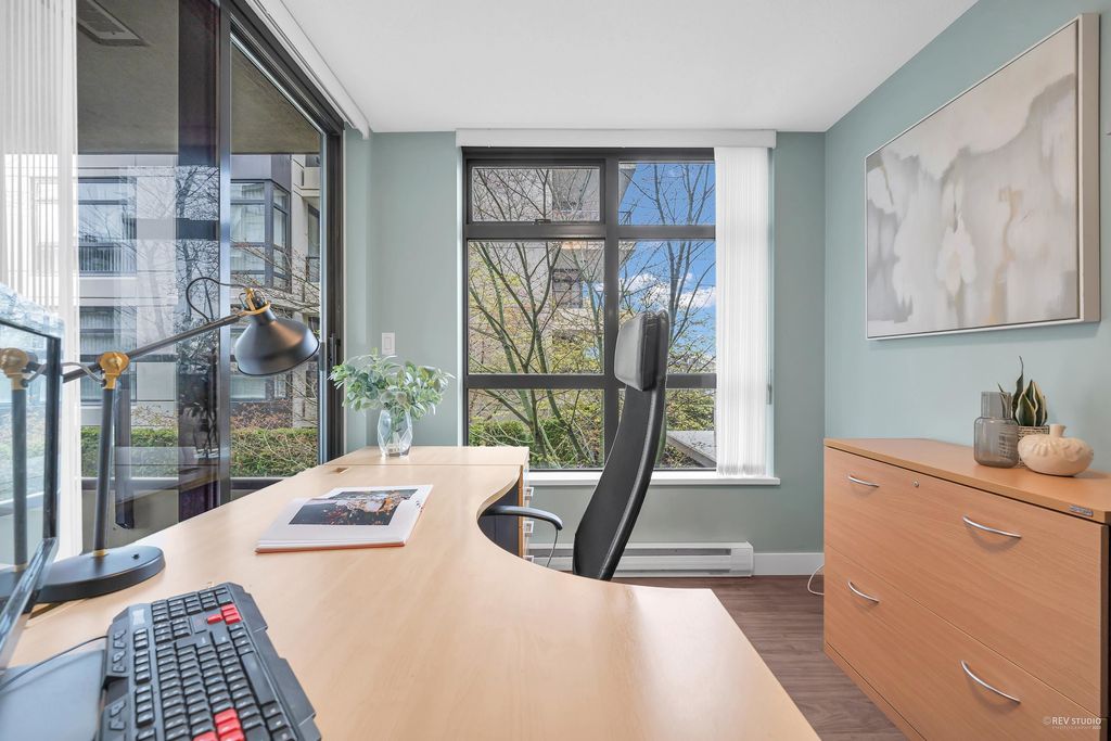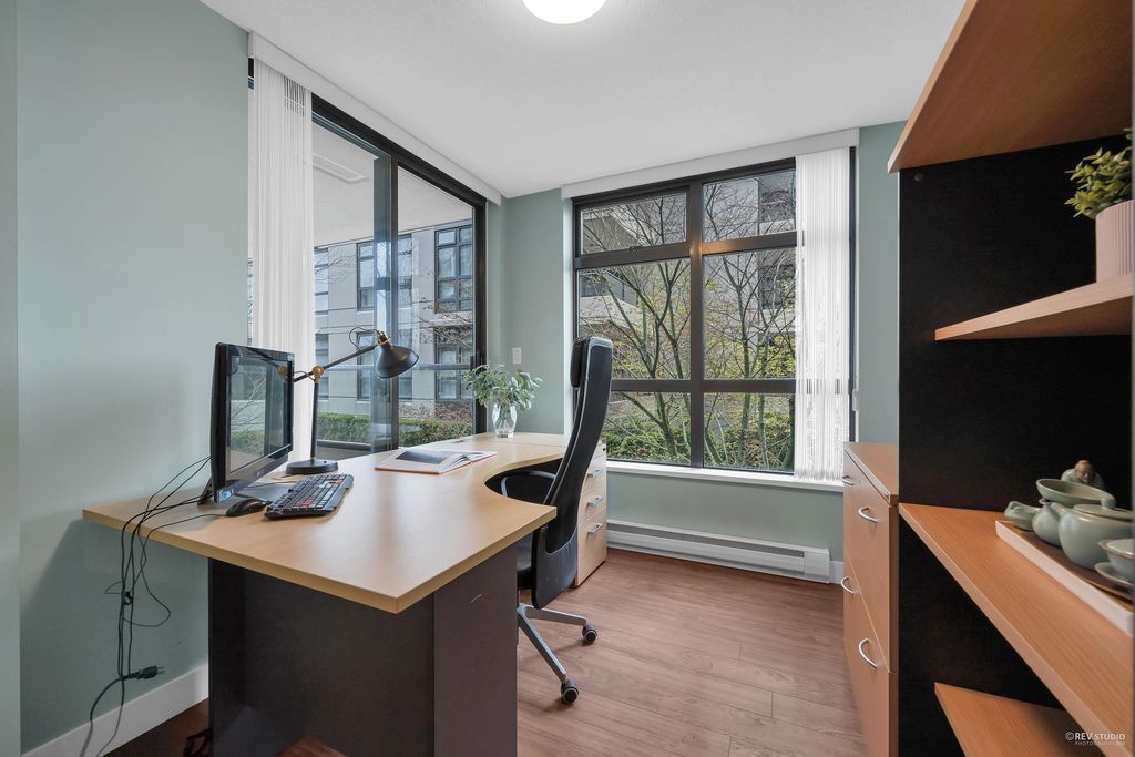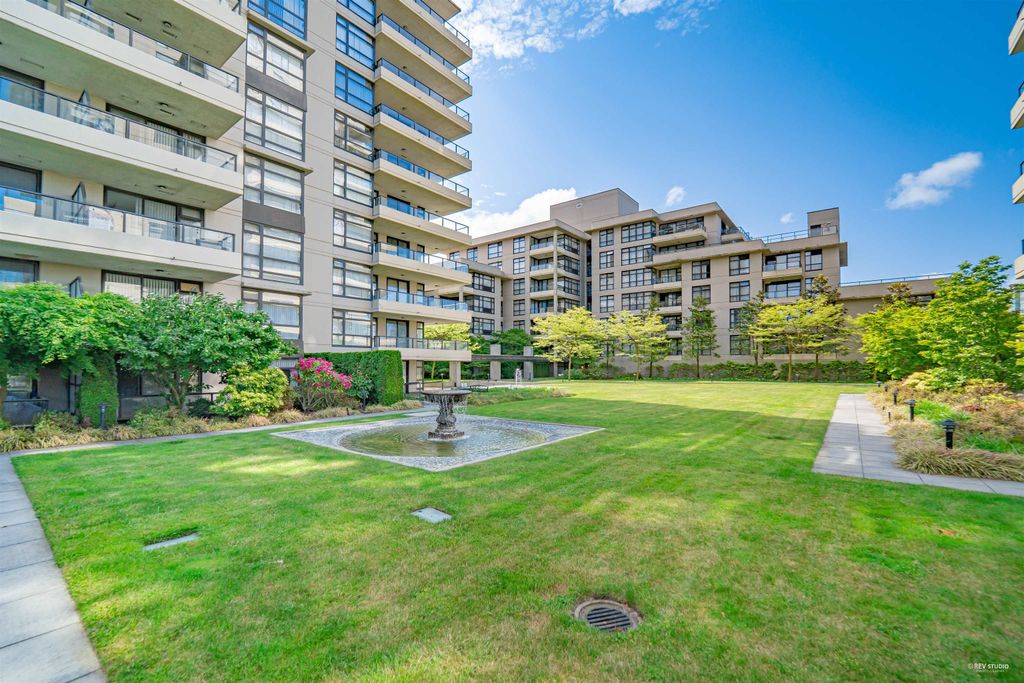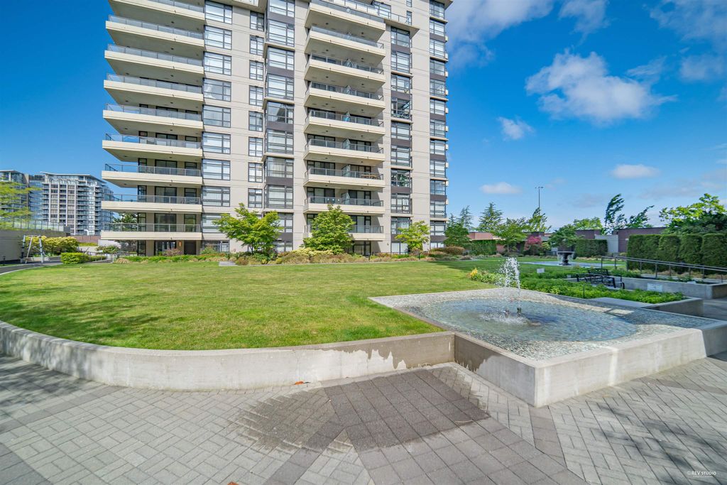 Prado, proudly developed by BOSA, is a concrete high-rise located in the heart of Downtown Richmond. This spacious corner unit offer over 1200 sqft of living space, including 2 bdm, 2 bthm and a large office. The open concept layout features a gourmet kitchen with a gas range, a dining area, and a large living space that is encircled by windows, offering plenty of natural light. With the bdms situated on opposite ends of the home, both of which have walk-in closets, and a separate laundry room. This unit is on the quiet side of the building, with north and west exposure, overlooking the serene courtyard. Variety of amenities, incl. a lounge, gym, sauna, steam room, and guest suite. Lansdowne Mall, Skytrain, and Kwantlen University all within walking distance. 1 parking and 1 locker.