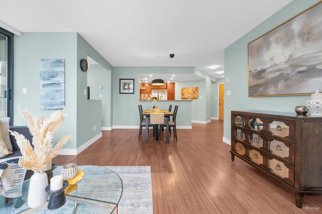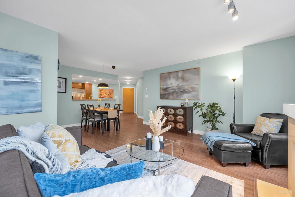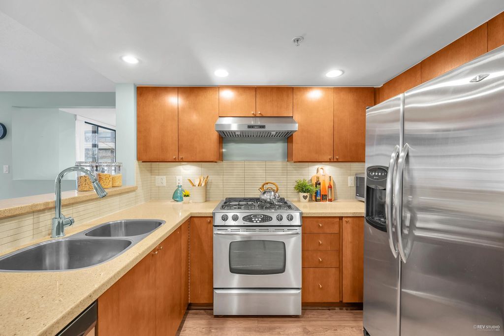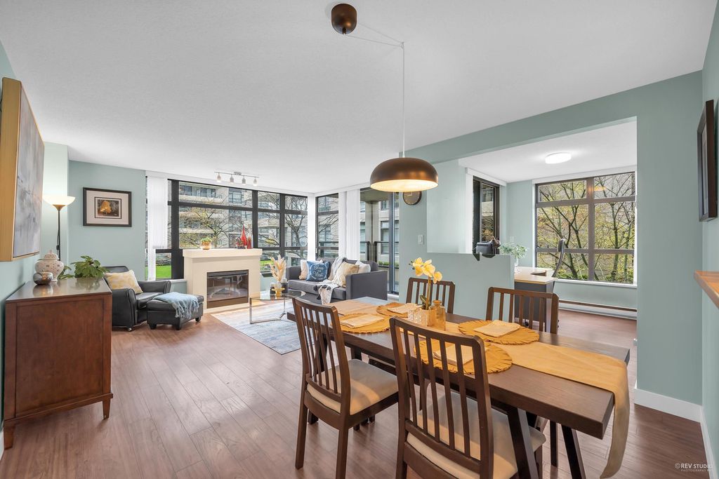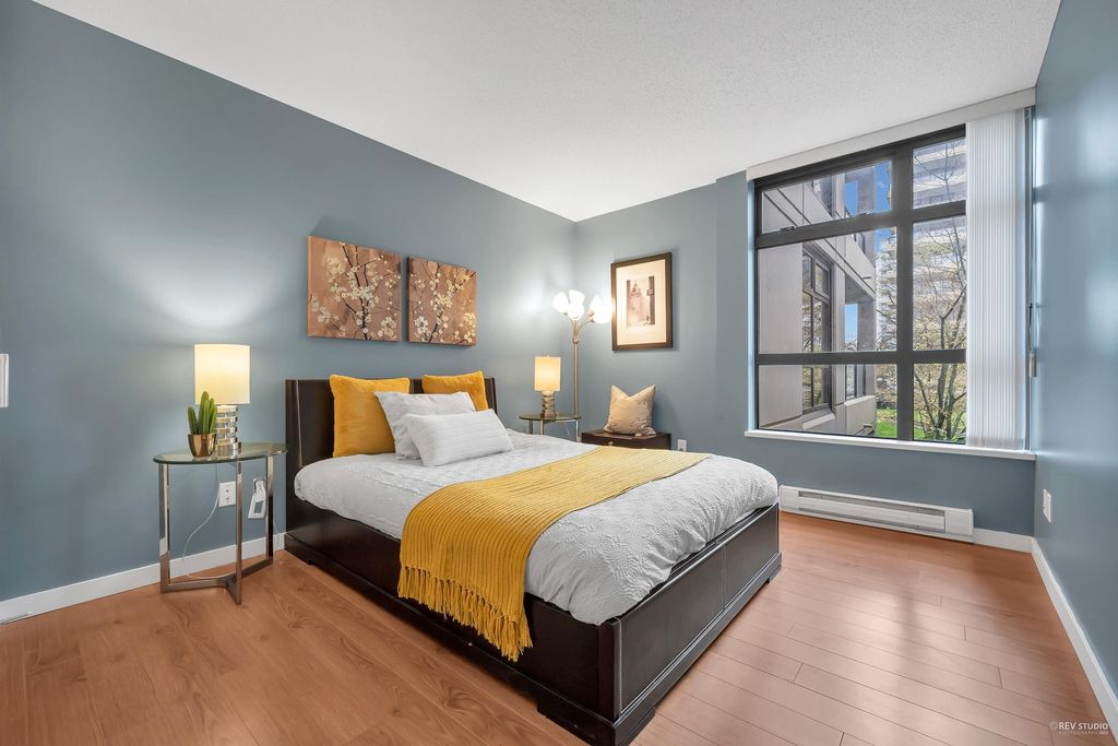 Prado, proudly developed by BOSA, is a concrete high-rise located in the heart of Downtown Richmond. This spacious corner unit offer over 1200 sqft of living space, including 2 bdm, 2 bthm and a large office. The open concept layout features a gourmet kitchen with a gas range, a dining area, and a large living space that is encircled by windows, offering plenty of natural light. With the bdms situated on opposite ends of the home, both of which have walk-in closets, and a separate laundry room. This unit is on the quiet side of the building, with north and west exposure, overlooking the serene courtyard. Variety of amenities, incl. a lounge, gym, sauna, steam room, and guest suite. Lansdowne Mall, Skytrain, and Kwantlen University all within walking distance. 1 parking and 1 locker.