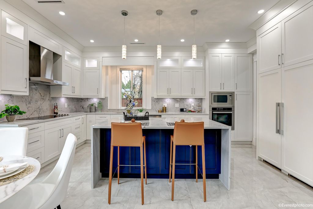 Quality custom built home sits on 4,586 sqft lot (South facing ) with 2,506 living space! This unique house offers Living/family room/Main Kitchen/Wok Kitchen on main floor, 4 bedrooms (4 up en-suited ) and 5 bathrooms. High ceiling in living room, central air conditioning, radiant heating, camera security system, 2 car garage. Friendly and quite neighborhood. Quilchena Elementary & Boyd Secondary Catchment. Close to schools/shopping/restaurants/all amenities. Open House: Dec 29, Wed, 10:30-11:30AM.