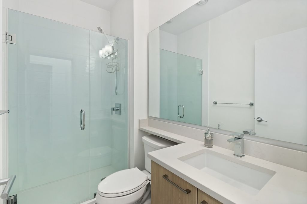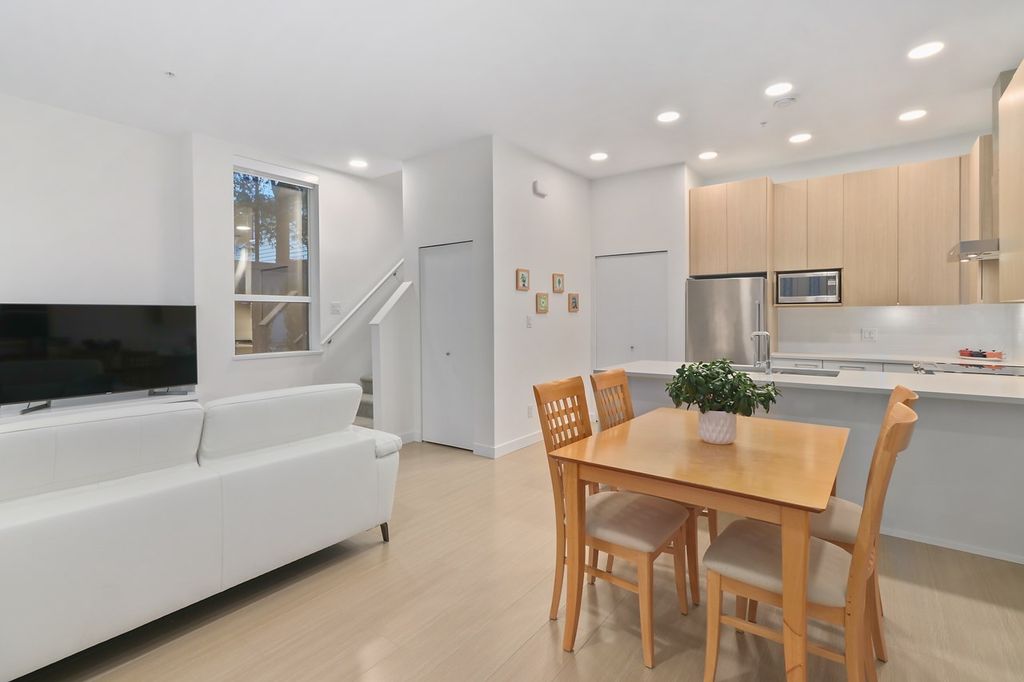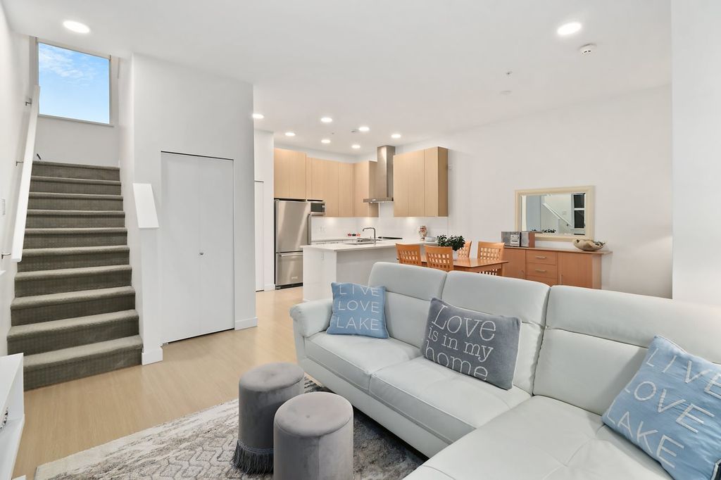 BEST DEAL IN THE CITY!!! Do not be fooled by address. QUIET & CONTEMPORARY 2-level 2 bed/2bath ~1,000sf Corner Unit Townhouse at SEASONS by Ledingham McAllister. Built in 2018. Enter off quaint Broadway. Be wowed by the high ceilings and the light pouring in from 3 sides. Gourmet kitchen with modern cabinetry, stainless steel appliances, quartz countertops and breakfast bar. Open concept living/dining area allow for multiple configurations along with space for an office if desired. The double height windowed stairwell leads to 2 good sized bedrooms upstairs, 2 full bathrooms, master walk-in closet and laundry. 1 block to HOLDOM SKYTRAIN and close to shopping and recreation. 1 parking/1 storage. Pets/Rentals allowed. AMAZING VALUE! Call Now!