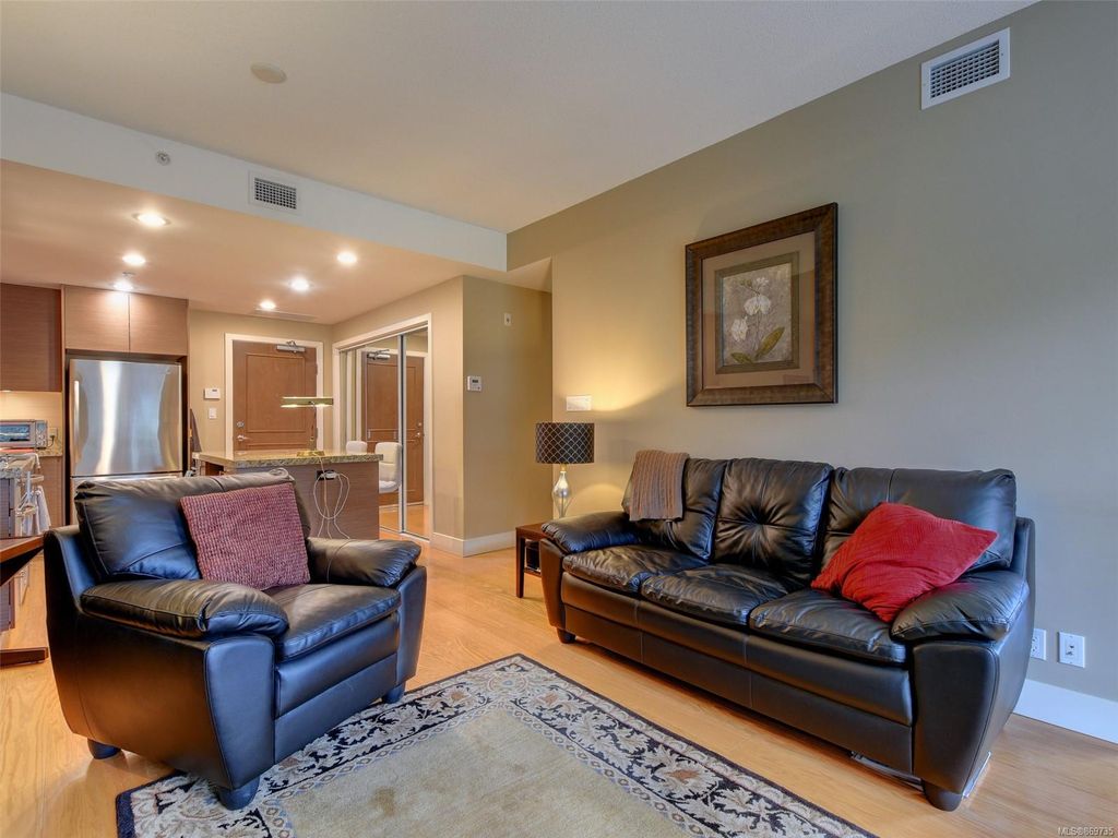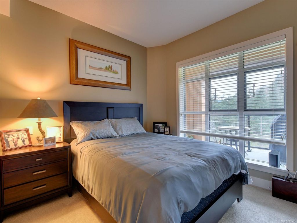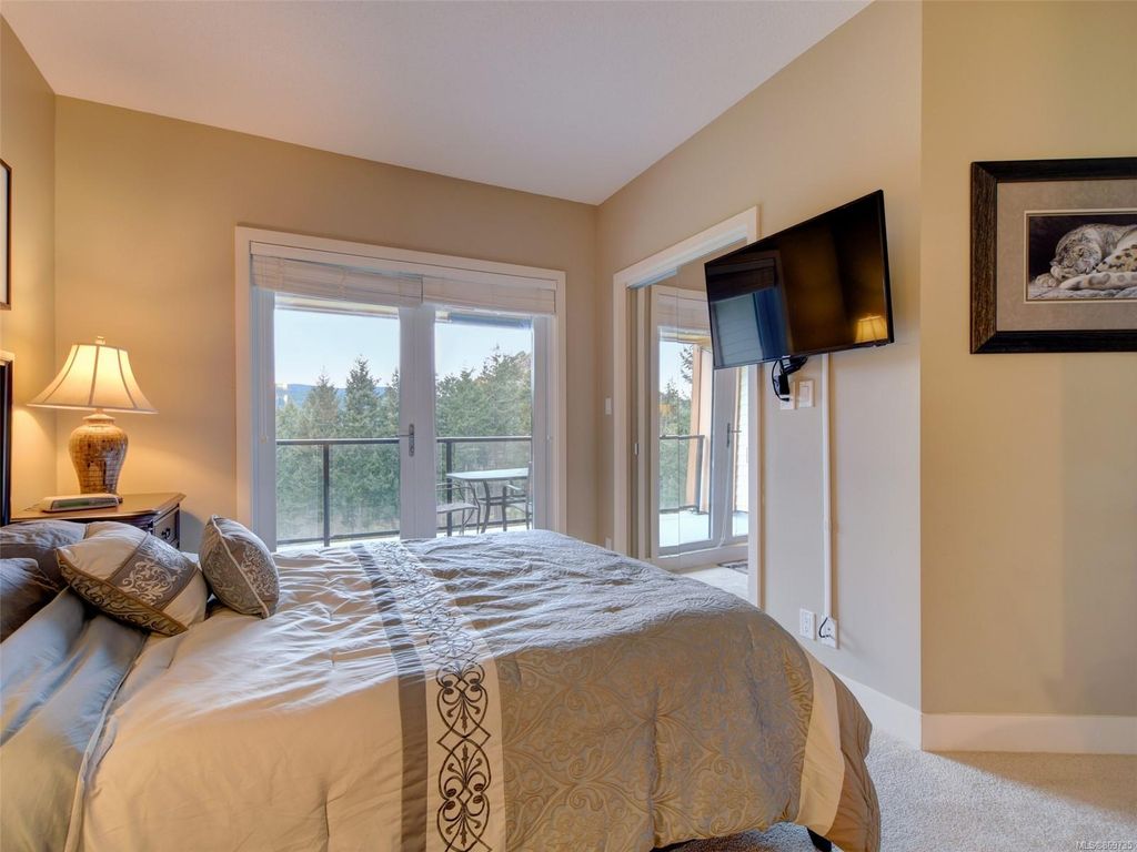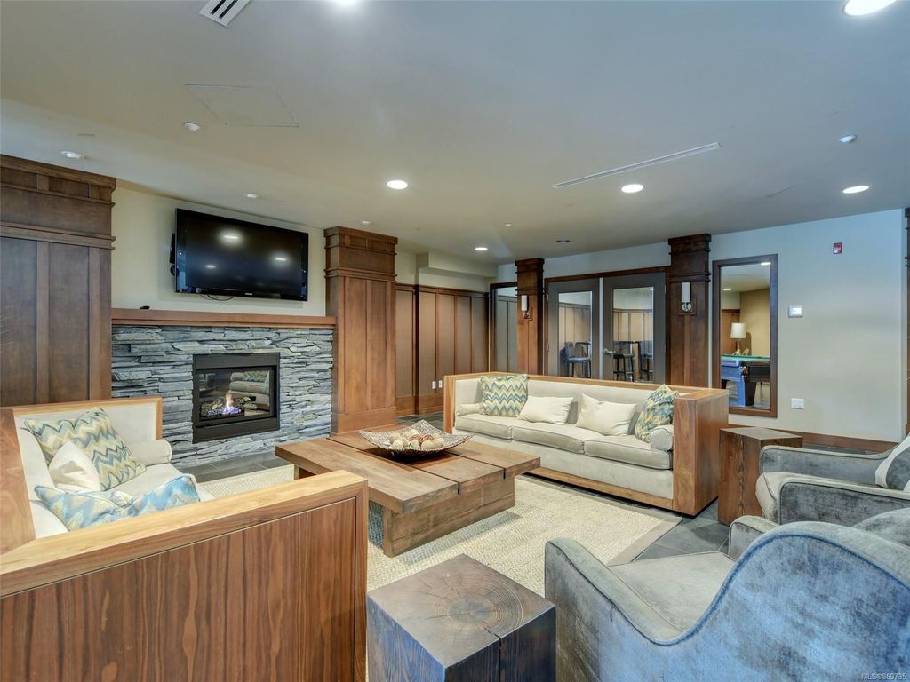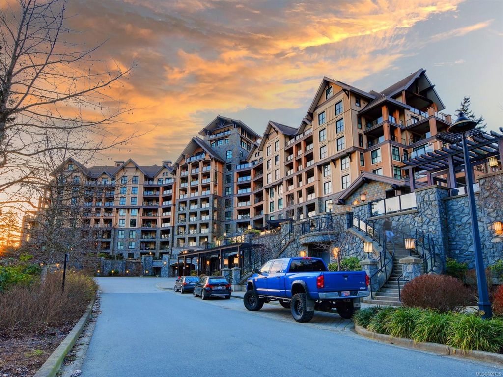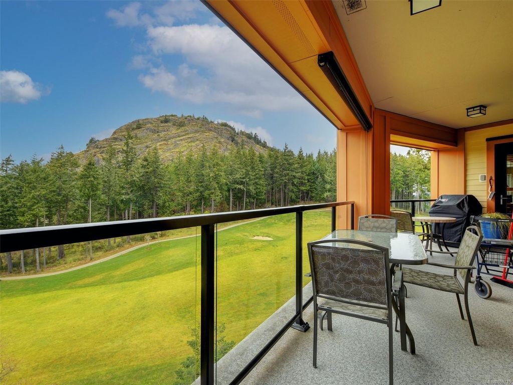 Welcome to Finlayson Reach, Bear Mountain's most luxurious concrete and steel building located in the heart of the Bear Mountain Resort Community. You will see the quality & elegance the moment you enter the building. Boasting over 930sqft & 9ft ceilings this two bedroom two bathroom home presents a bright functional floorplan. Some notable features include: granite countertops, SS appliances, gas range, air conditioning & a massive 25ft deck with N-Gas outlet for BBQ. Enjoy amazing views of the 1st fairway & Mt Finlayson. The Primary bedroom offers a spa like 4 piece ensuite. On-site amenities incl Fitness Room, Boardroom, lounge & Movie Theatre. Truly a great place to call home with multiple dining options, Driving Range, Market, Hiking Trails, Tennis Courts and World Class Golf all at your front door. A short drive to Downtown Victoria this Unit offers great value and is sure to impress. Underground secure parking and storage locker included. Enjoy the resort lifestyle!