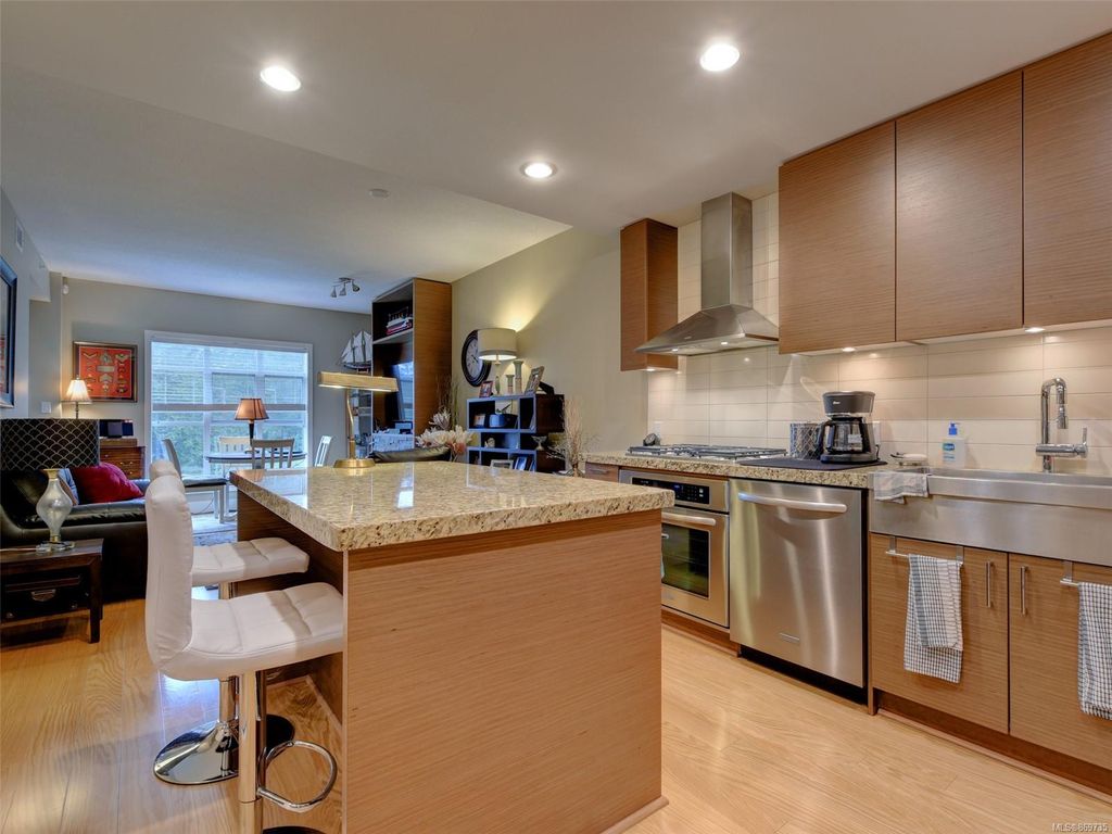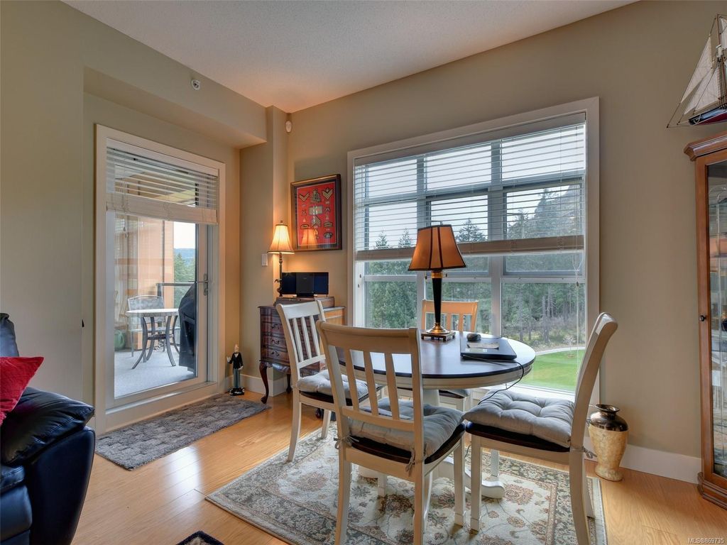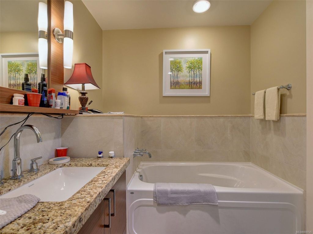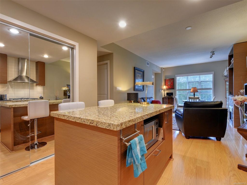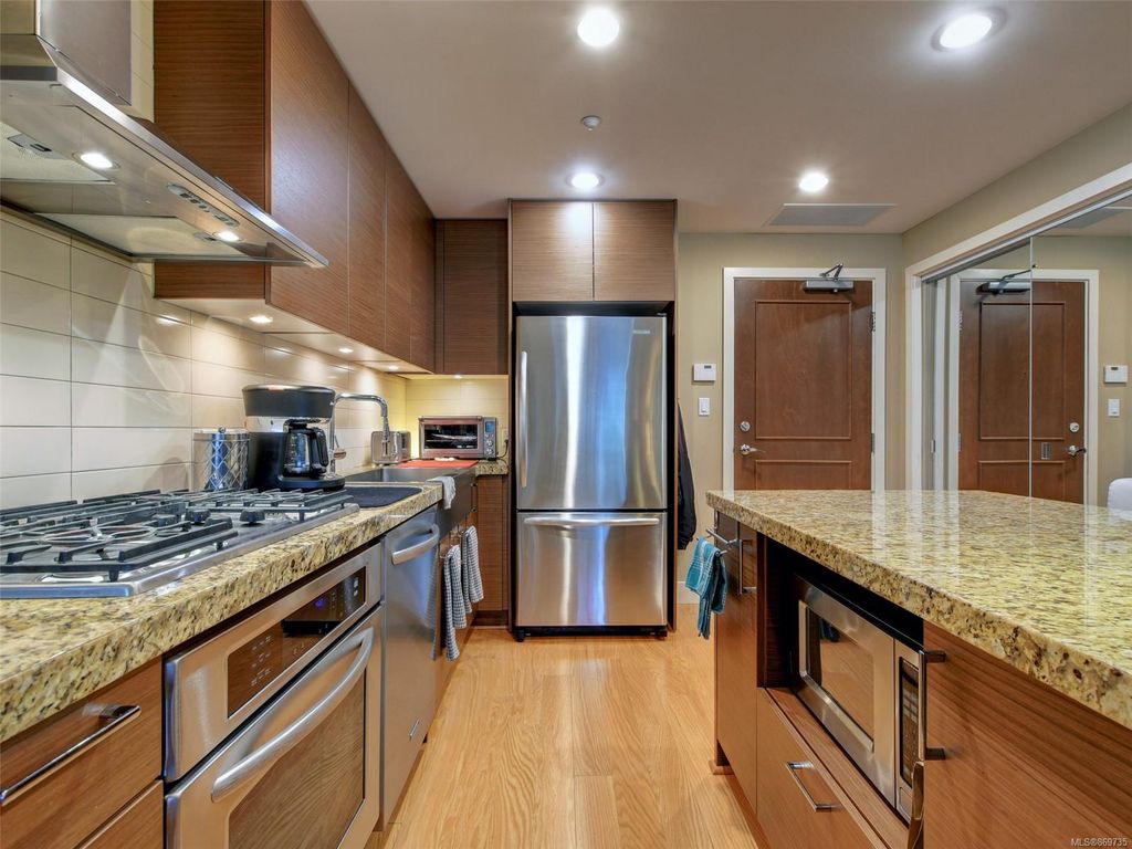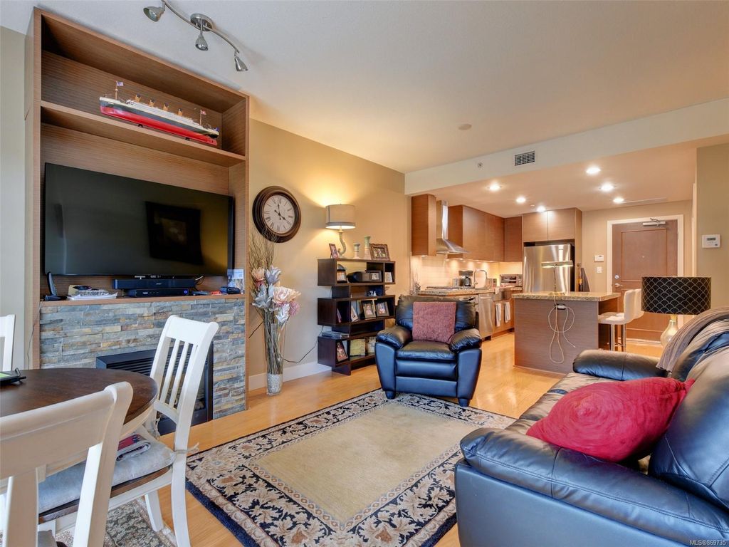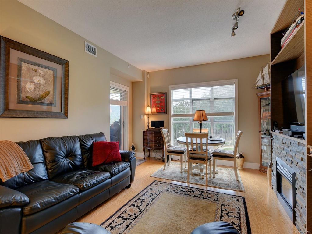 Welcome to Finlayson Reach, Bear Mountain's most luxurious concrete and steel building located in the heart of the Bear Mountain Resort Community. You will see the quality & elegance the moment you enter the building. Boasting over 930sqft & 9ft ceilings this two bedroom two bathroom home presents a bright functional floorplan. Some notable features include: granite countertops, SS appliances, gas range, air conditioning & a massive 25ft deck with N-Gas outlet for BBQ. Enjoy amazing views of the 1st fairway & Mt Finlayson. The Primary bedroom offers a spa like 4 piece ensuite. On-site amenities incl Fitness Room, Boardroom, lounge & Movie Theatre. Truly a great place to call home with multiple dining options, Driving Range, Market, Hiking Trails, Tennis Courts and World Class Golf all at your front door. A short drive to Downtown Victoria this Unit offers great value and is sure to impress. Underground secure parking and storage locker included. Enjoy the resort lifestyle!