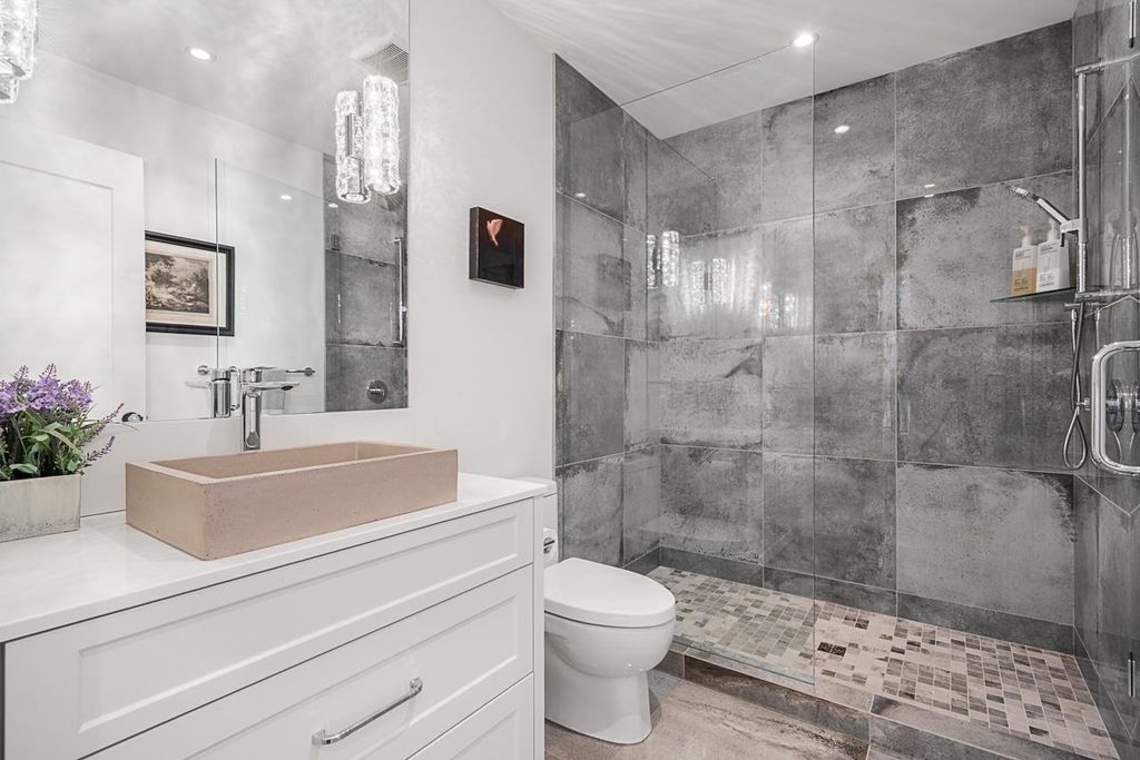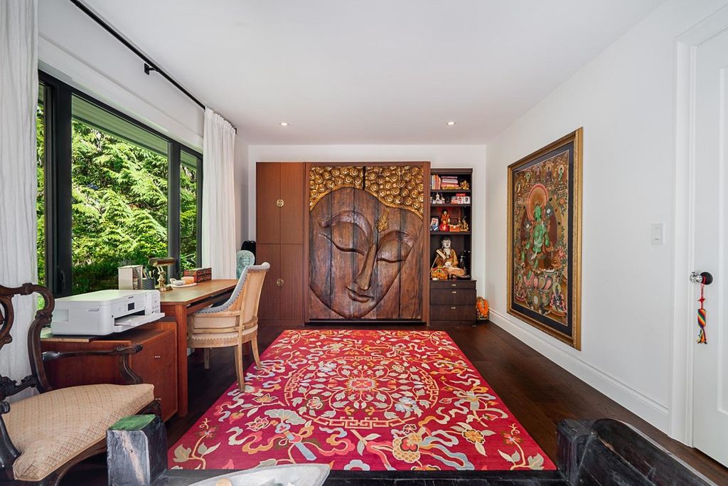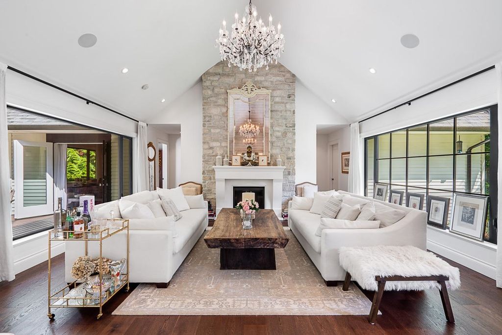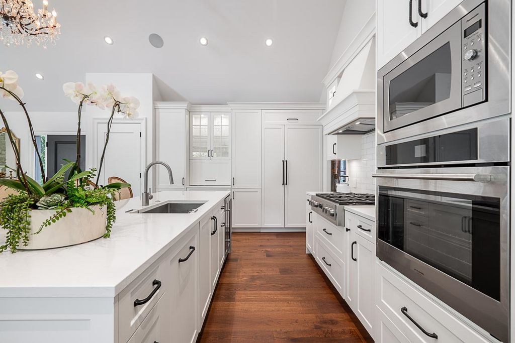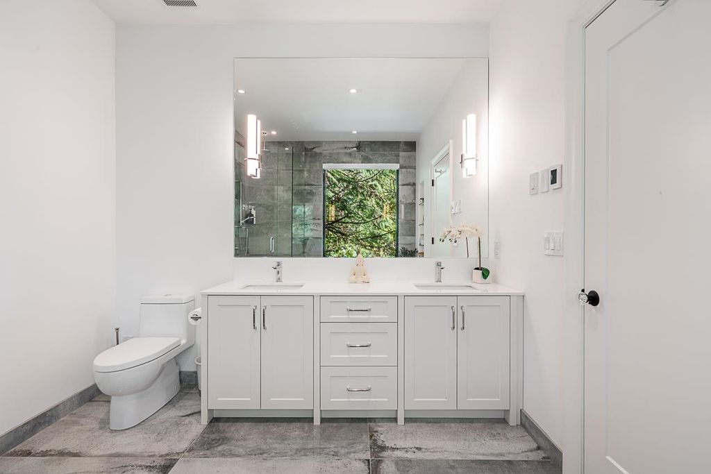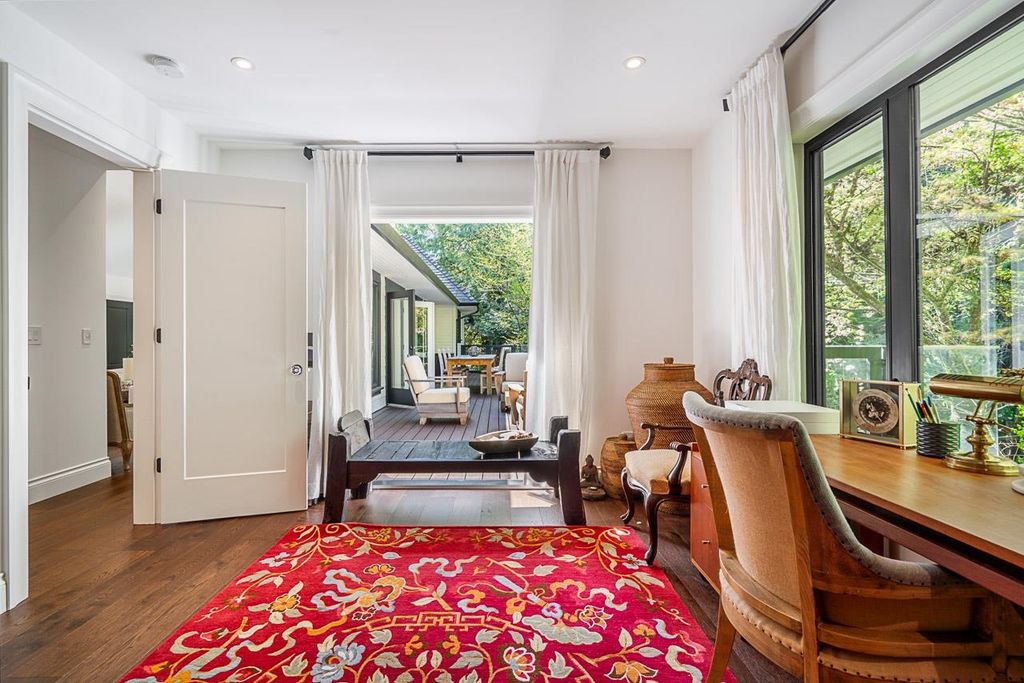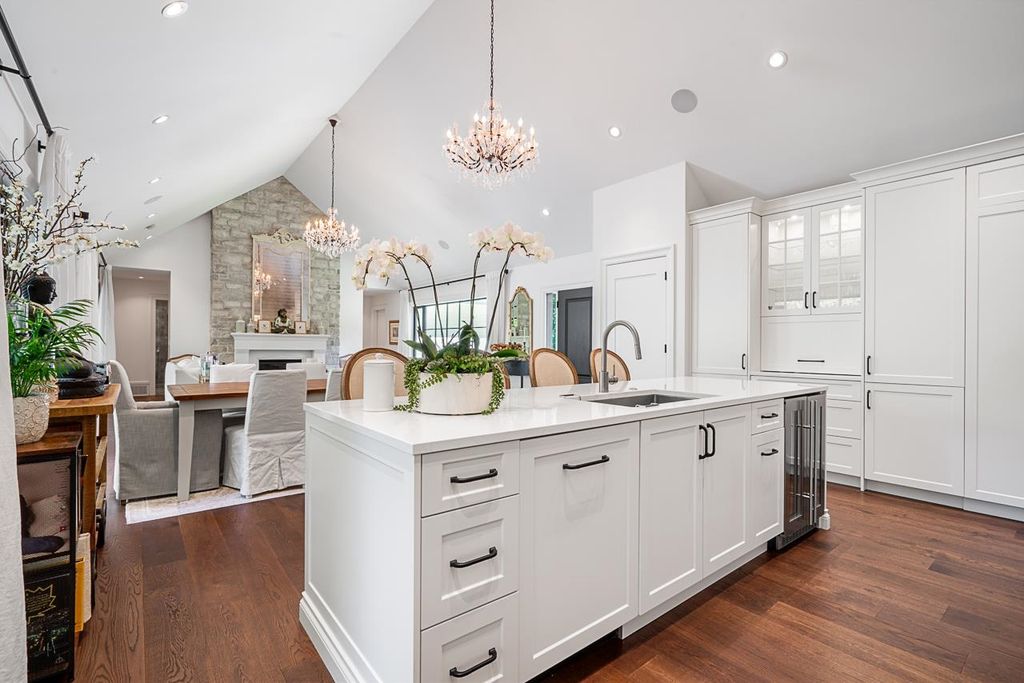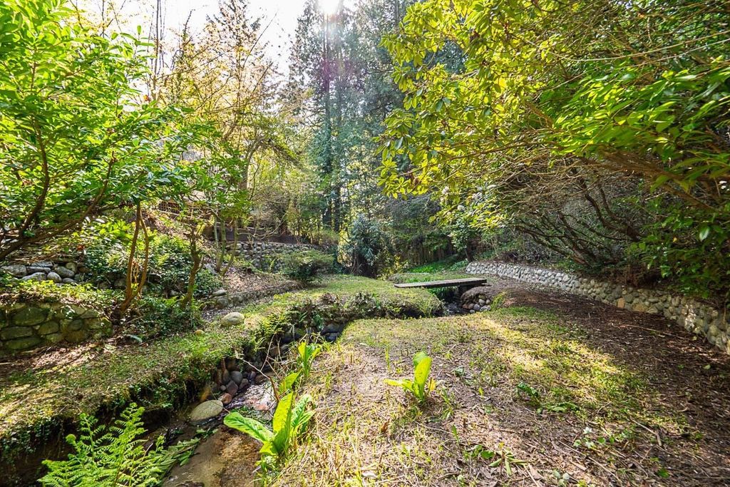 Discover this truly special one-level custom home on a private half-acre lot featuring beautiful, serene gardens. Meticulously rebuilt by Goldwood Homes from the foundation up, it features floor-to-ceiling windows, 15-ft vaulted ceilings, rich hardwood floors, and an open-concept layout with a gourmet kitchen, dining, and living area anchored by a stunning stone fireplace. With 3 bedrooms, 3 baths & family room, and a spacious primary suite which offers a spa-like ensuite and walk-in closet. French doors lead to expansive decks for indoor/outdoor living and entertaining amid lush gardens. Enjoy 3 gas fireplaces, Italian stone, heated bathroom floors, and beautiful custom finishes. Ideally located near schools and minutes from Park Royal.