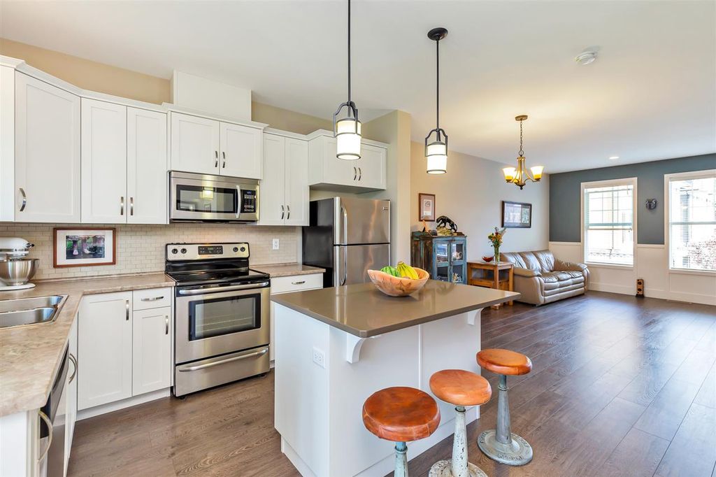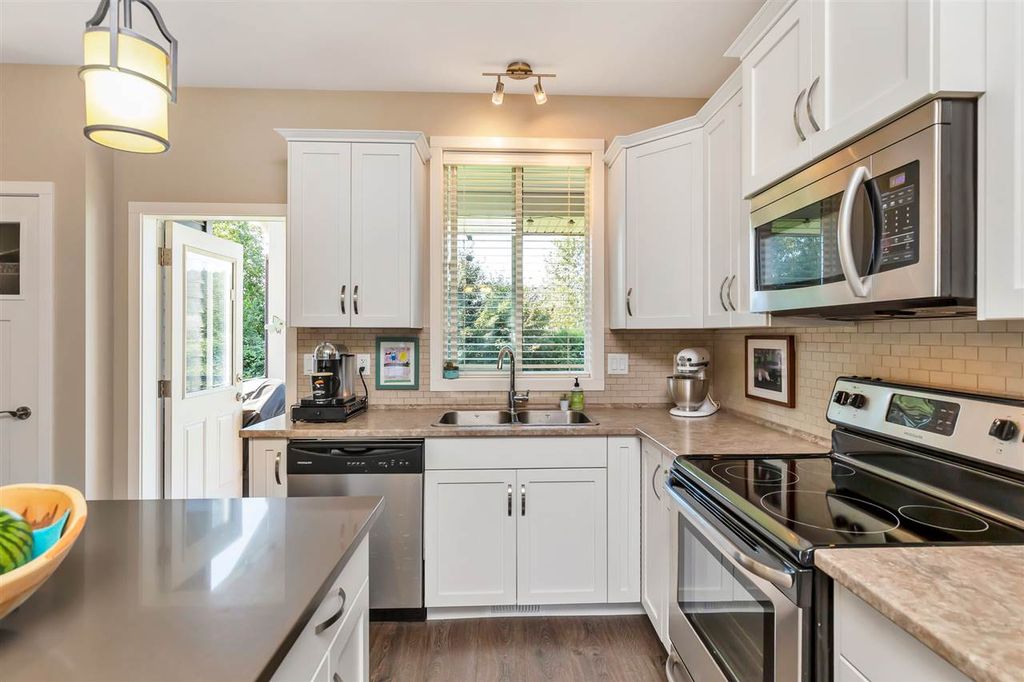 Turnkey 3 bed / 3 bath townhome in central Agassiz location! Executive 'Langtry' complex features large double garages and double wide driveways with this private end unit backing onto green space in fantastic complex location! Open concept living with spacious dining/great/living rooms on main level with 3 large bedrooms upstairs in family friendly layout. Fully finished basement space featuring a large rec-room (could be 4th bedroom!) with walkout to fully fenced and amazingly private backyard. Unit upgrades include white shaker cabinets, quartz island countertop, central AC, Stainless appliances & even custom 100 year old stain glass doors! Professionally managed strata complex with pets and rentals allowed, call today for your private showing before its too late!