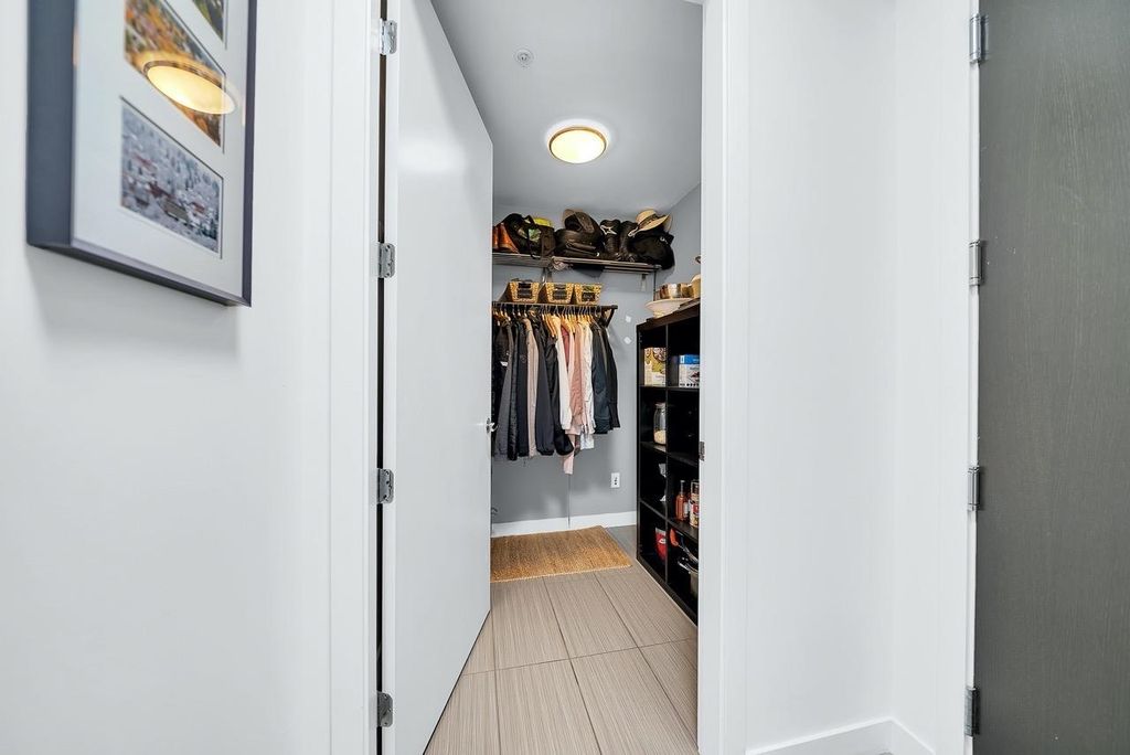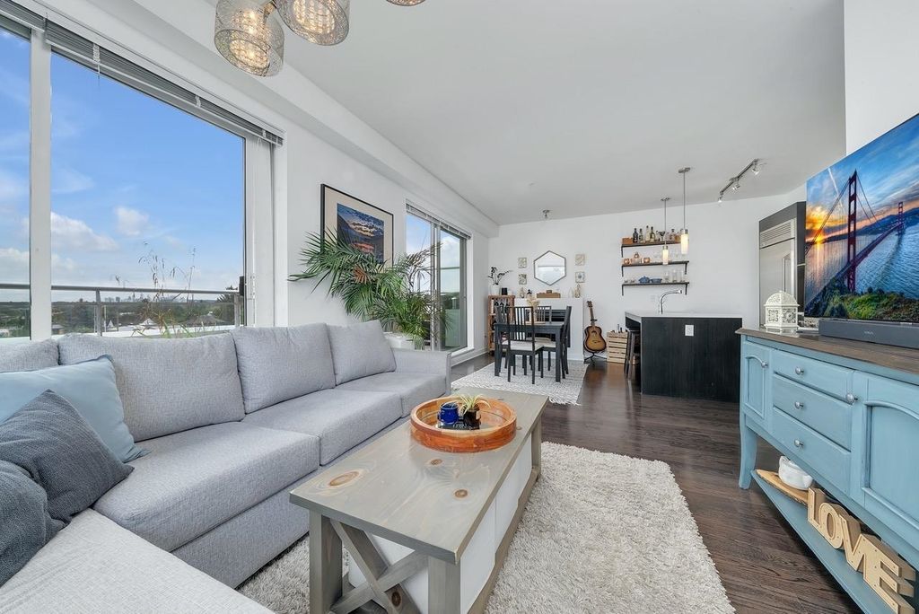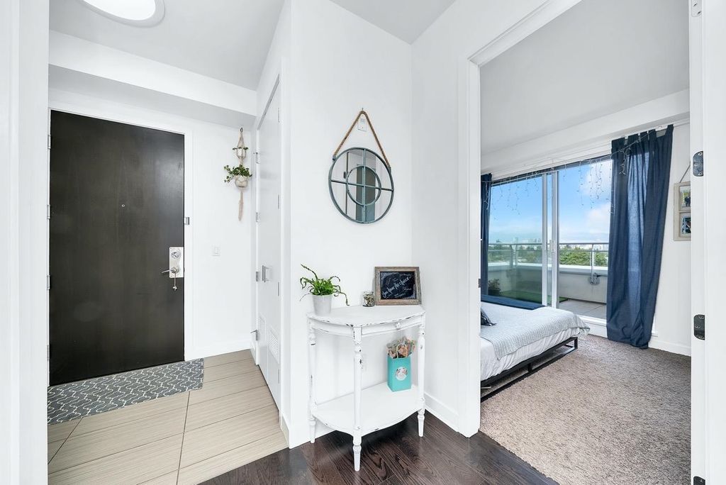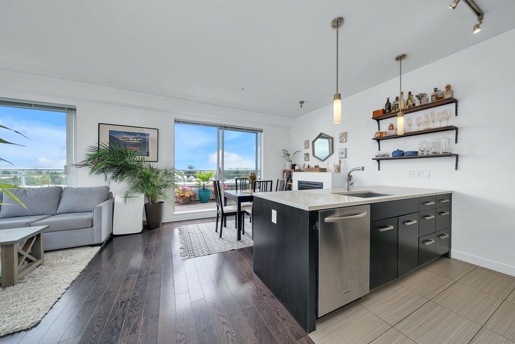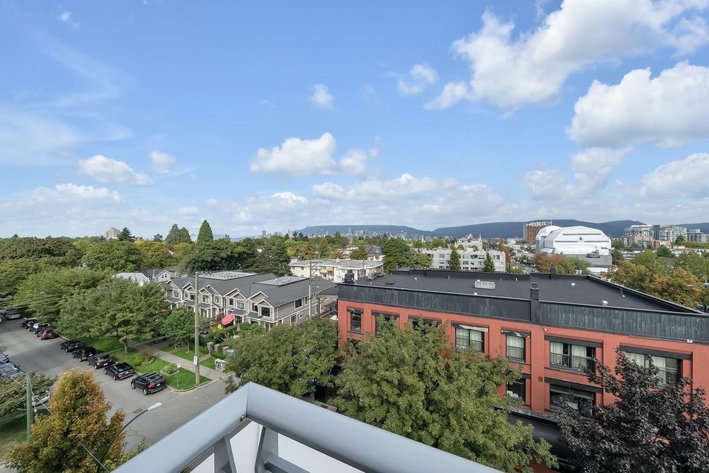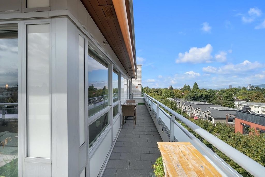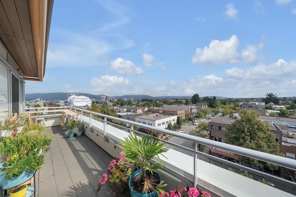 A truly unique one bedroom, two bathroom & flex NE corner penthouse in the heart of Main Street. This bright and open floor plan features engineered hardwood flooring, over-height ceilings & floor to ceiling windows highlighting the panoramic city views from the massive wrap-around private patio. Focussing on every detail, this exceptional home boasts premium finishings with quartz countertops, stainless steel appliances, gas range, sun tunnel skylight in the naturally bright foyer, large walk-in closet, Nuheat flooring in the ensuite with direct patio access from the bedroom. Developer originally planned as a 2 bed unit - potential to build out second bedroom. Bonus - two parking spots, gas bbq hook-up & storage included! Pet friendly building.