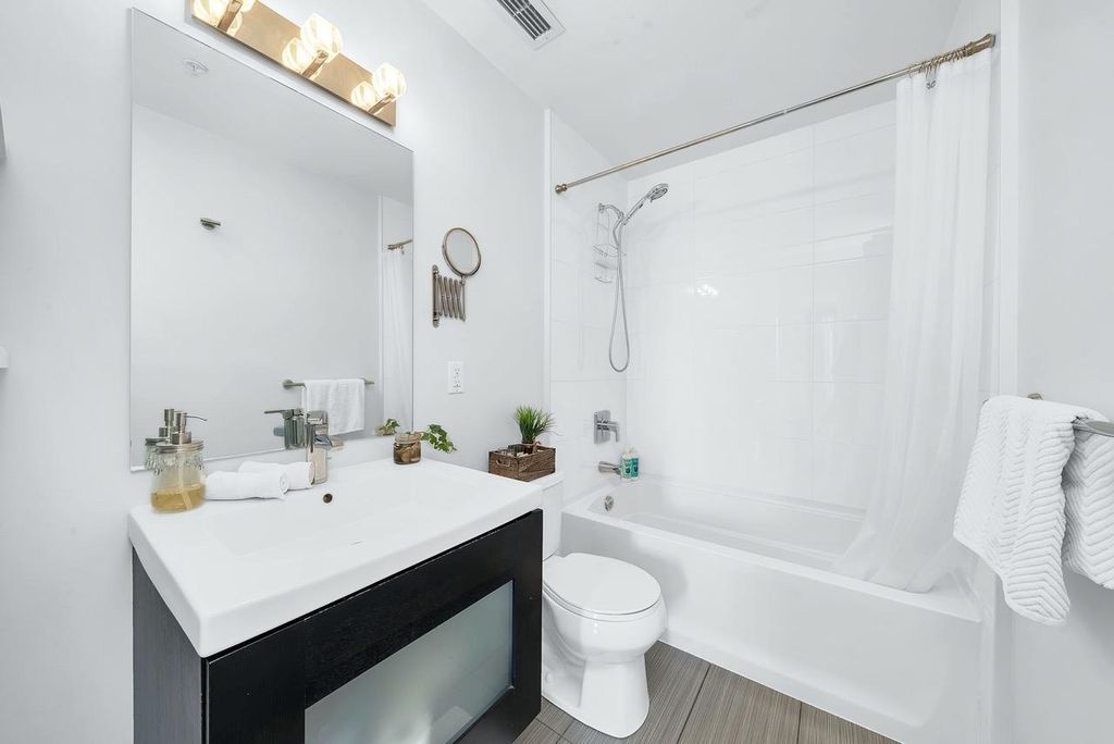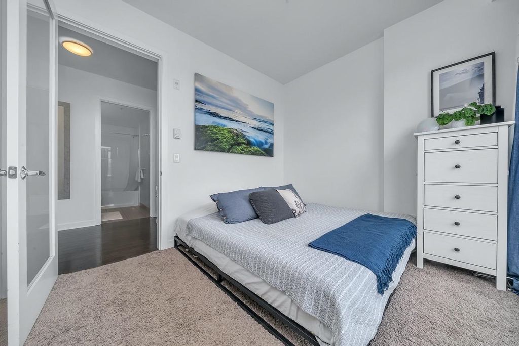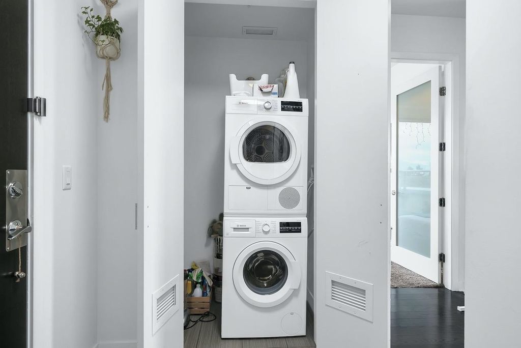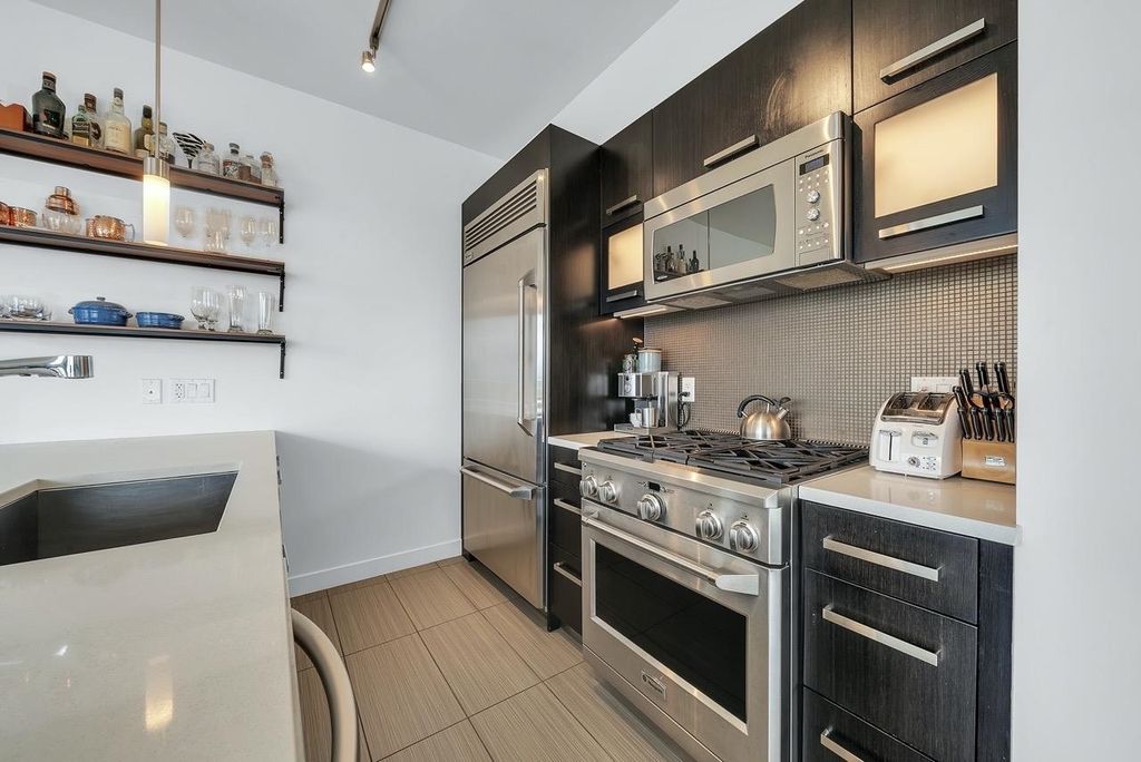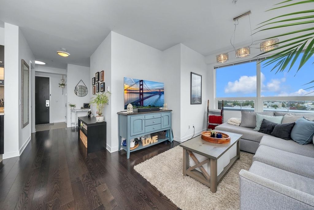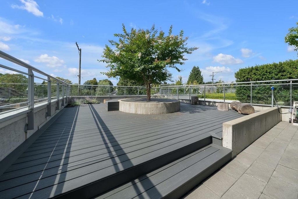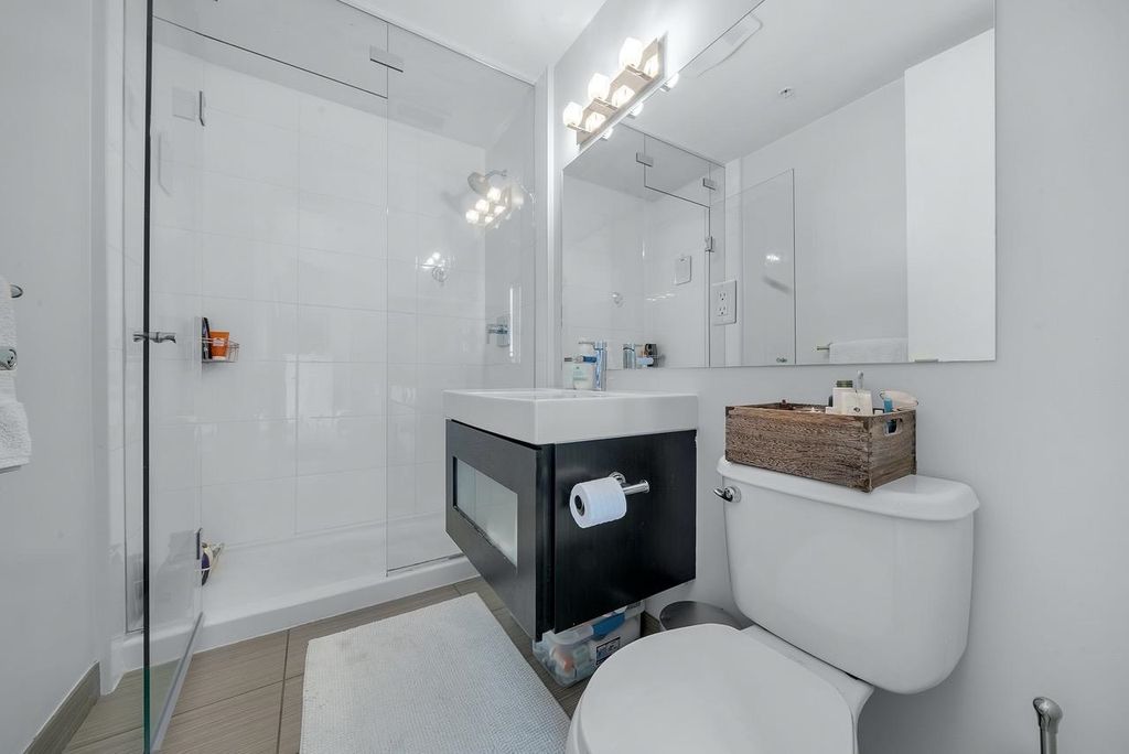 A truly unique one bedroom, two bathroom & flex NE corner penthouse in the heart of Main Street. This bright and open floor plan features engineered hardwood flooring, over-height ceilings & floor to ceiling windows highlighting the panoramic city views from the massive wrap-around private patio. Focussing on every detail, this exceptional home boasts premium finishings with quartz countertops, stainless steel appliances, gas range, sun tunnel skylight in the naturally bright foyer, large walk-in closet, Nuheat flooring in the ensuite with direct patio access from the bedroom. Developer originally planned as a 2 bed unit - potential to build out second bedroom. Bonus - two parking spots, gas bbq hook-up & storage included! Pet friendly building.