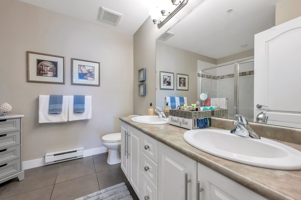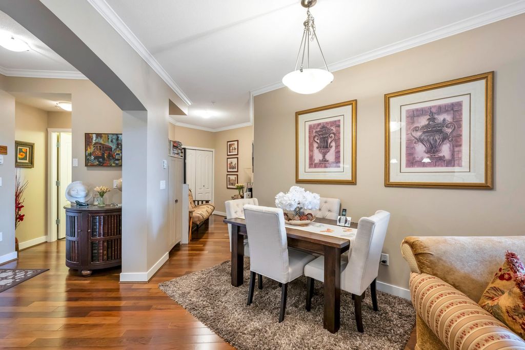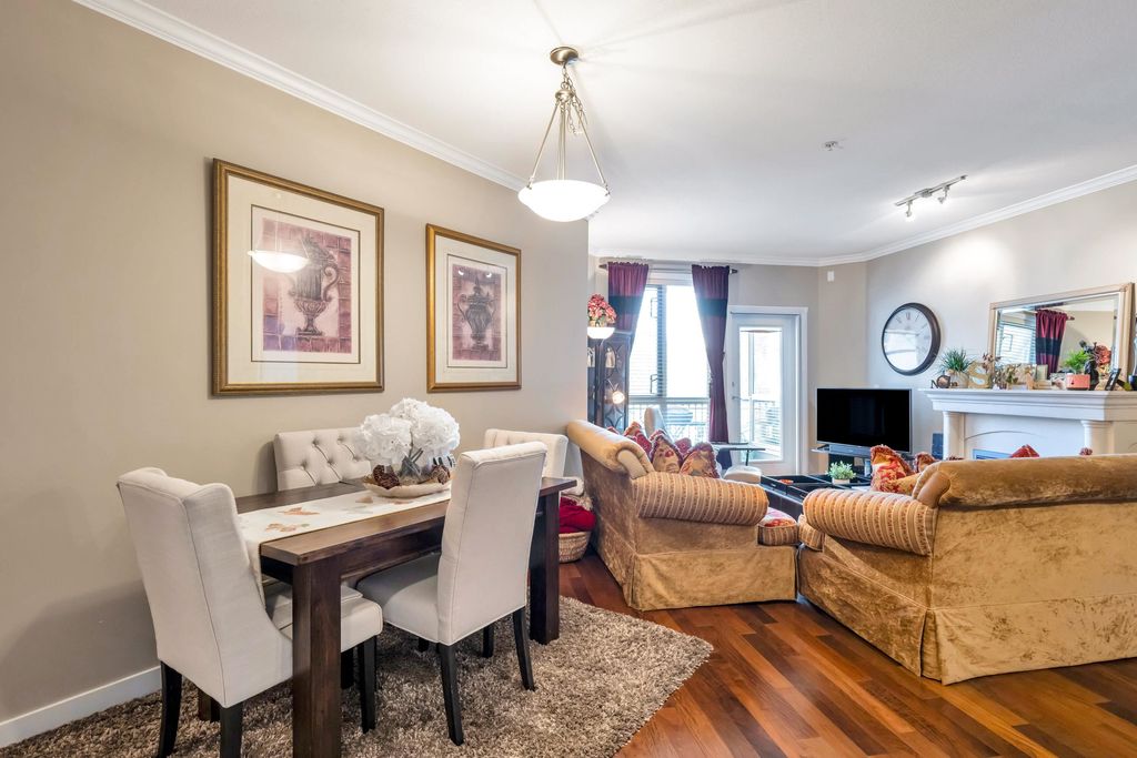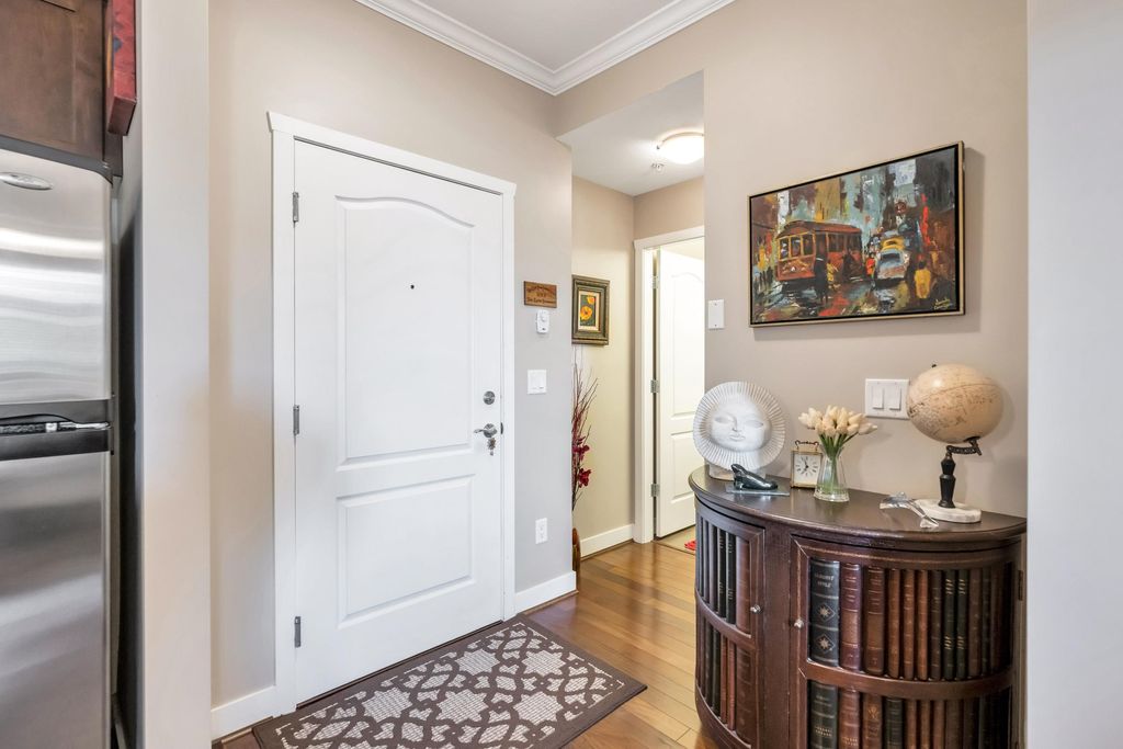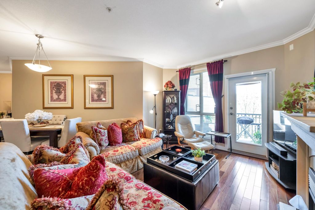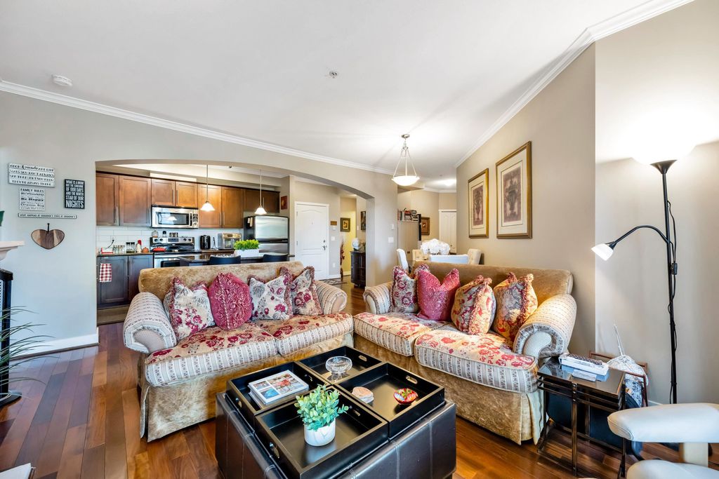 VILLAGIO II ~ Luxury living in the heart of downtown Port Coquitlam! SE facing spacious open-arch concept unit bursting w/ natural light & featuring opulent high-end finishings {brazilian hardwood/crown molding/chef kitchen w/ an expansive granite center dining & entertaining island/ultra wide complex corridors. Nestled between two parks {tennis courts/soccer/fields & access to 25kms of walking/running/biking trails that circle Port Coquitlam along the banks of the Coquitlam/Pitt & Fraser Rivers}. Minutes access {West Coast Express/highways/shops/schools/clinic/dining & coffee shops}. Incredibly well-managed strata {1dog & 1cat welcome/1parking & 1storage locker/gym/amenity & bikeroom}. NEW HW tank.