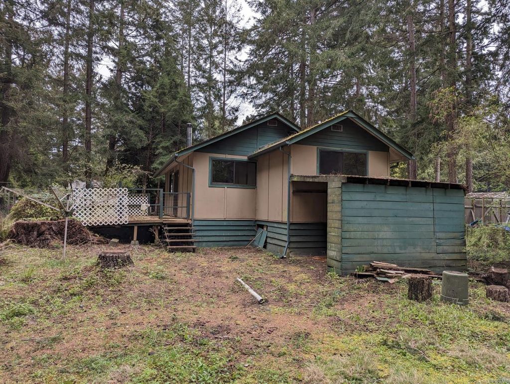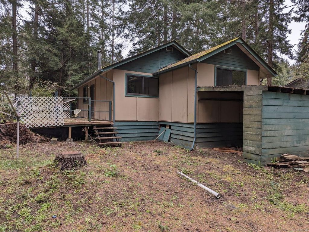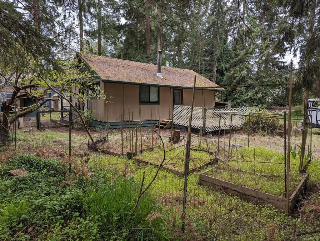 Cozy cabin in the sought after San Pariel neighborhood of Parksville. Large, .69 of an acre, treed, corner lot with a quaint 2 bedroom cottage built at the back of the lot. Enjoy life by the beach. The cottage build is an open plan living & kitchen area with 2 good size bedrooms and 1 bathroom. This lovely neighbourhood is an easy walk to incredible Rathtrevor beach or into Parksville town centre. Bird watch in the estuary, launch your kayak or hike the trails close to Englishman river. An incredible location to build your dream house on the flat .69 of an acre lot or keep the existing cabin as is and enjoy the spacious treed lot and garden area. Live on the Island