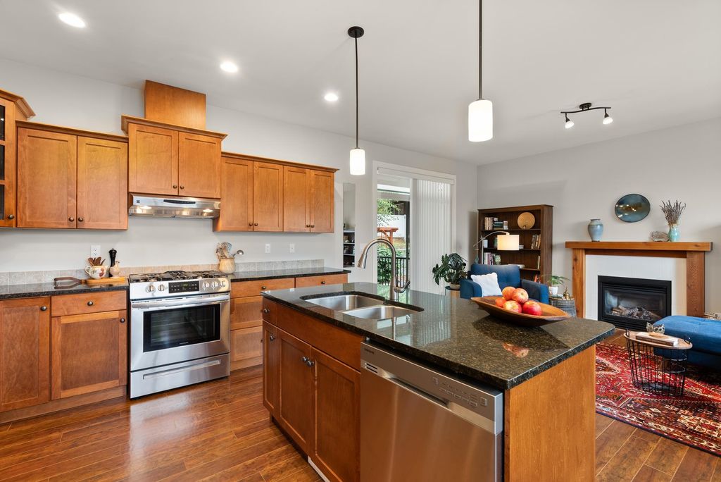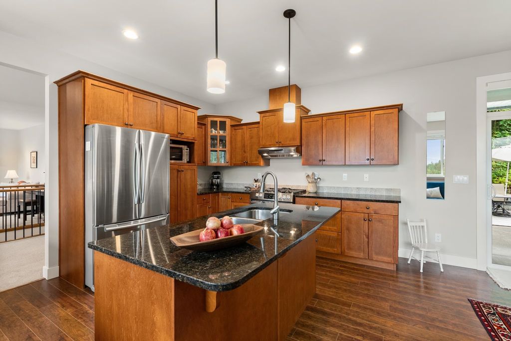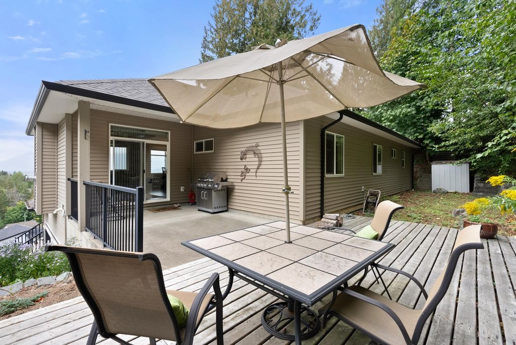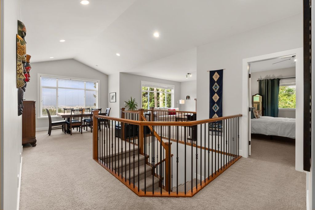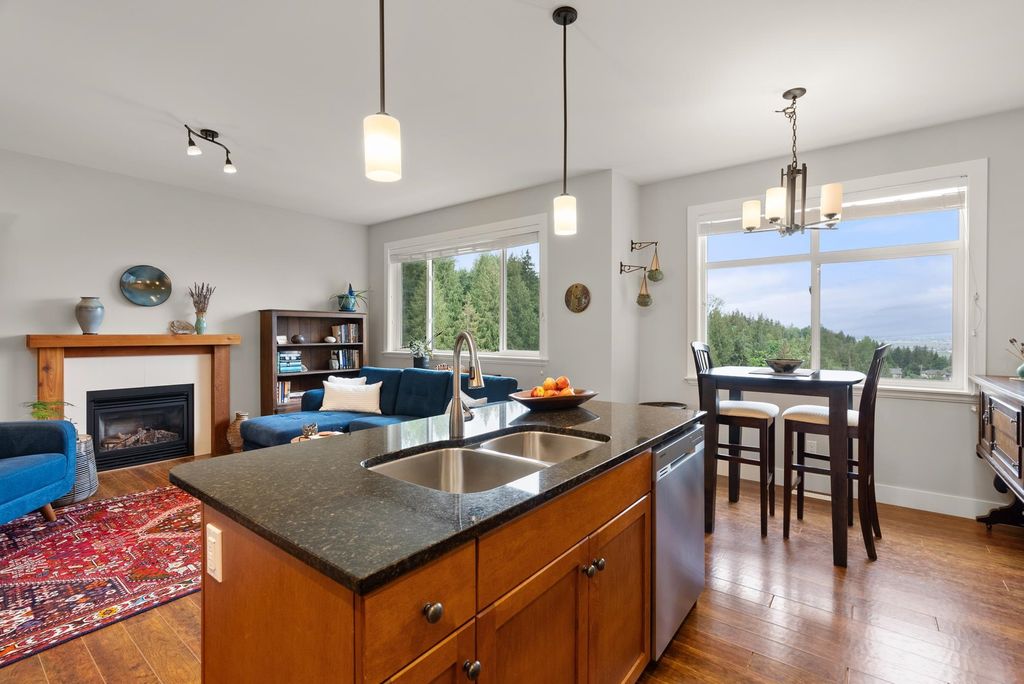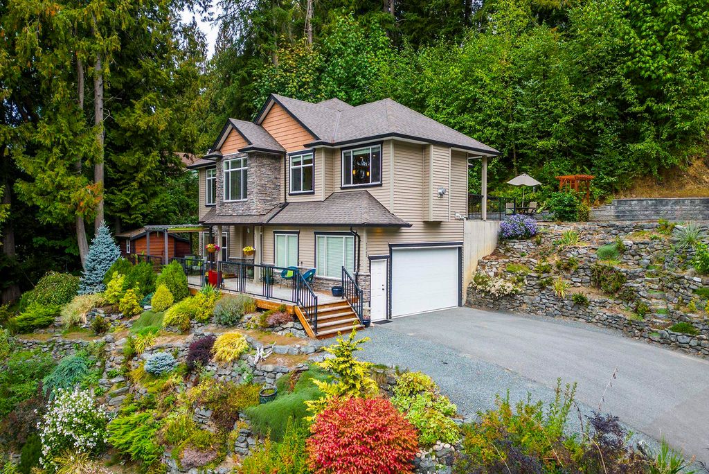 SPACIOUS FAMILY HOME boasts the most beautiful VIEWS of the VALLEY & MOUNTAINS featuring a FORMAL LIVING & DINING AREA as well as a separate GREAT ROOM with kitchen, eating area and comfy SITTING ROOM that walks out to a COVERED PATIO and flat usable yard. The kitchen has GRANITE COUNTERS, GAS RANGE and lots of storage. TWO GAS FIREPLACES, one at each end of the home. 3 bdrms and 2 full baths up. The PRIMARY SUITE has a walk-in closet and large spa-like ensuite. Terraced, professionally landscaped gardens and abundant outdoor living areas allow you to ENJOY YOUR OWN PRIVATE PARADISE RIGHT HERE. Included is a 1 BED BACHELOR SUITE on the lower level with separate entrance, a well-lit kitchen, induction range and washer/dryer. THIS HOME IS ALLOWS you to enjoy A NICE RELAXING LIFE-STYLE.