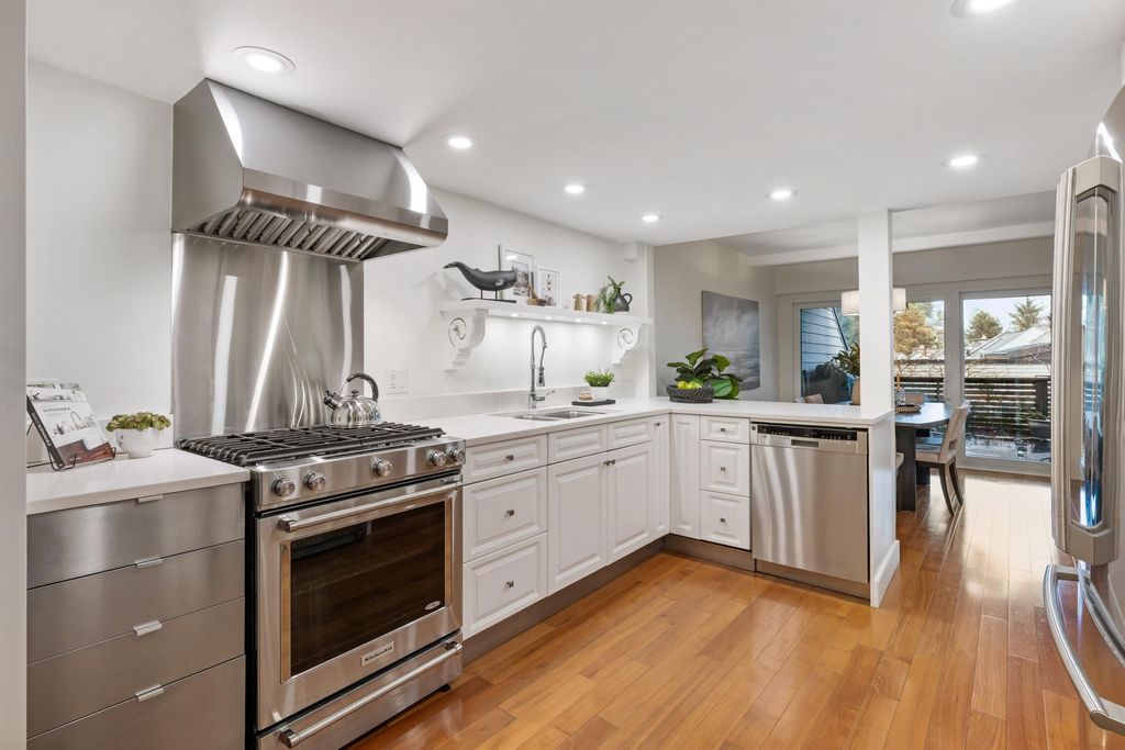 Rarely available & beautifully updated, this 4 bed, 3-bath end-unit townhome offers the perfect blend of luxury and convenience—ideal for both families and downsizers alike! Recent upgrades include: All new double-glazed windows with new sliding doors, 2 updated sundecks, fresh int. custom paint, new LED lighting, plush new carpeting, HW on demand, plus a spacious ext. patio with custom built glass covered pergola—perfect for year-round use! This open-plan TH is one of the largest in the complex, offering 2497 sq ft of living space, vaulted ceilings, a cozy gas FP, and an abundance of natural light throughout. The 2-vehicle carport includes a Level 2 EV charger. Set in a prime WV location, this home is just minutes to top schools, shopping, and transit! OPEN HOUSE SAT/SUN,JAN 24+25, 2-4PM