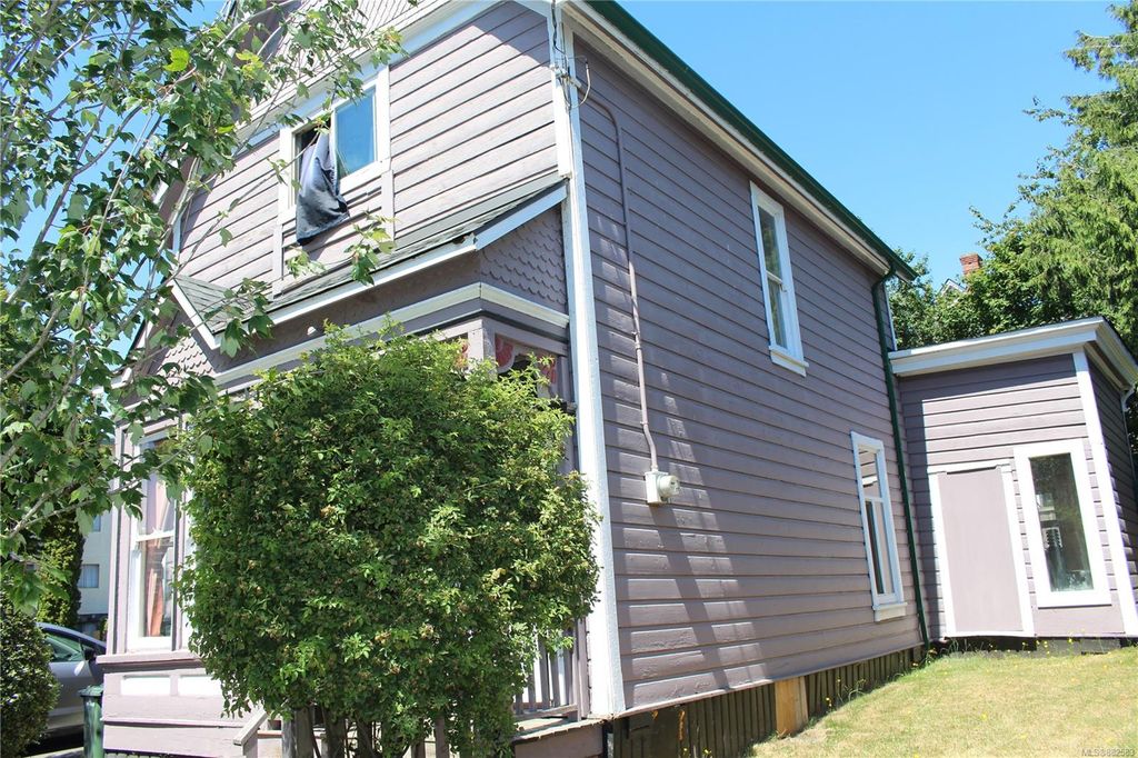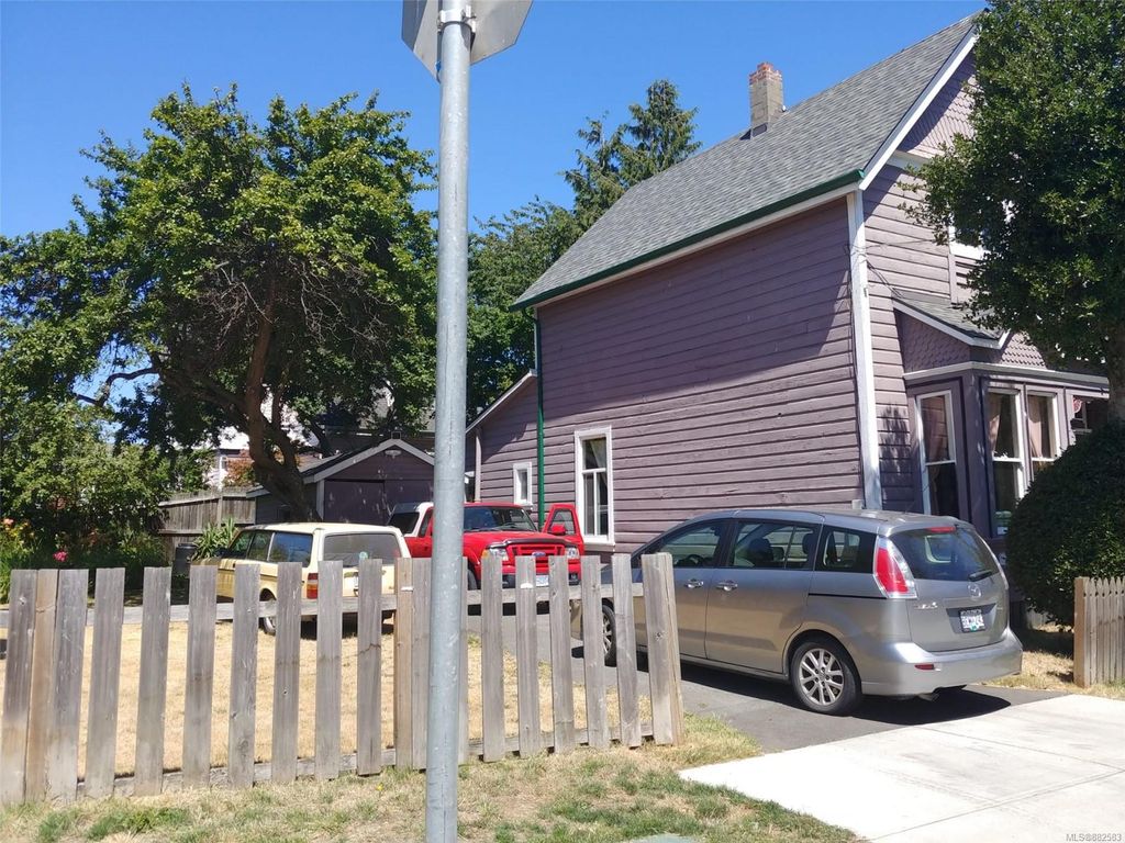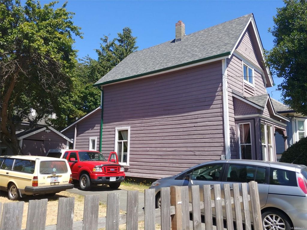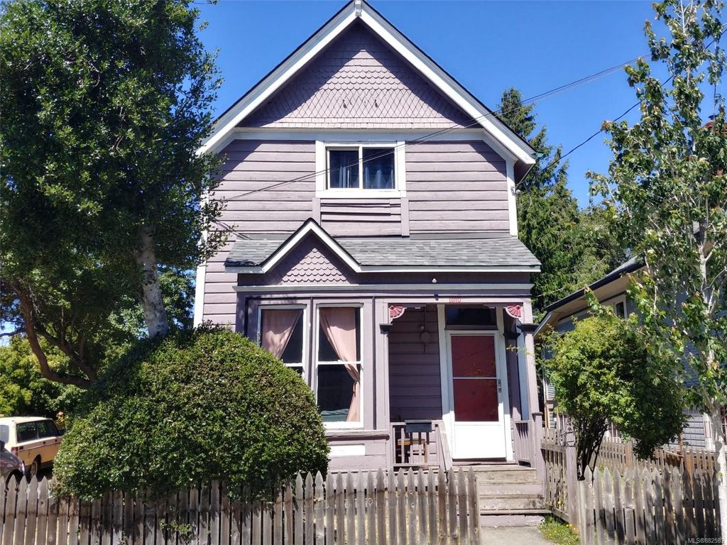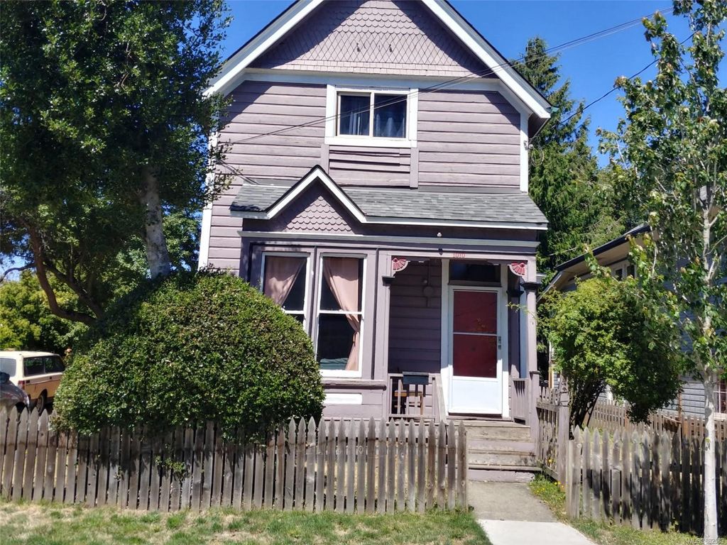 FABULOUS living in the centre of Victoria! Beautiful 1901 character home with brand new roof on 4,483 sq ft lot. This charming home has a good size living room, dining room, kitchen, bathroom and storage room on the main floor and 3 bedrooms upstairs totalling over 1,400 sq ft of finished space. Features include the cozy wood stove, 3 year old water tank, SS appliances and upgraded plumbing to copper. The outside improvement can be used as a garage or shed with parking for 2 cars. The huge fenced yard contains a beautiful flower and vegetable garden with privacy trees in backyard. Wood deck in backyard. Great central location with high walk score (15 minute walk to downtown), steps to the newest Save on Foods, bus stop, Crystal Pool & Fitness Centre, parks, restaurants, biking and schools. Quiet neighbourhood. Great family home or huge potential as an investment property or for builders and renovators. Don`t miss out on this lovely home! 1010 Mason is calling you!