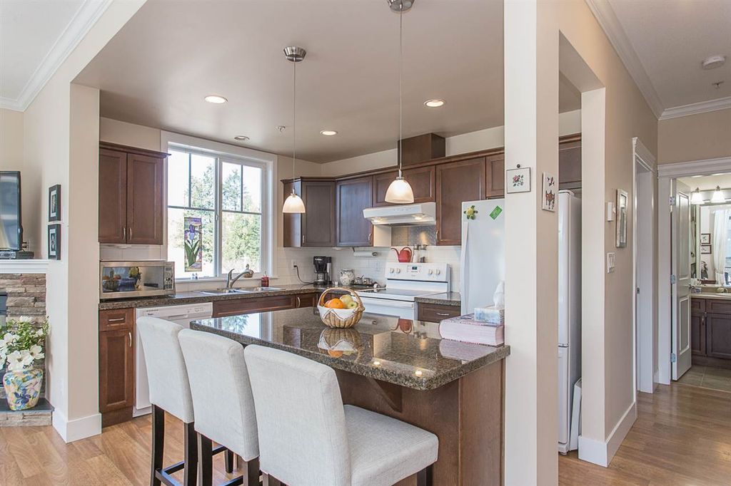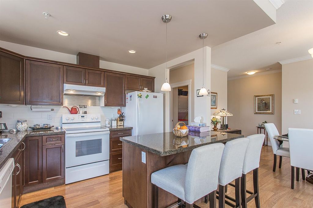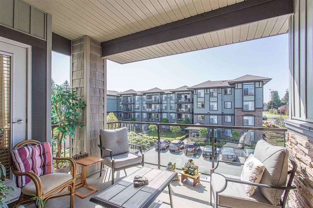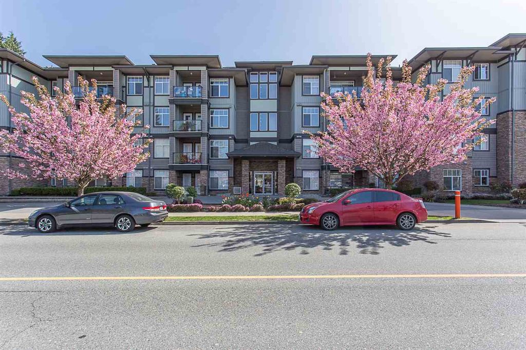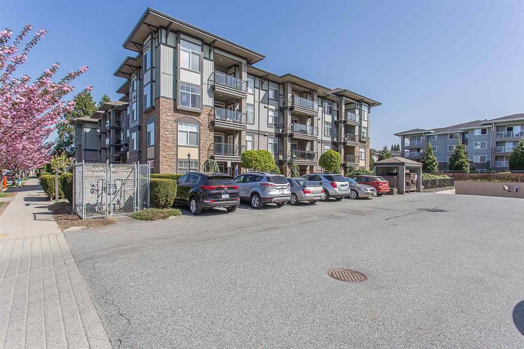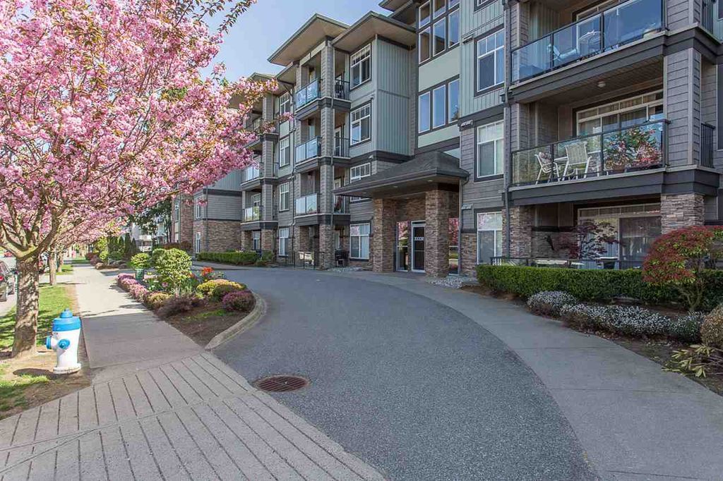 Welcome home to the Sterling on Mayfair! This bright and spacious corner unit boasts 1182 sq ft with an open layout offering granite counters, 3 year old appliances, large kitchen island, custom pull-outs, 9 ft. ceilings with crown moldings, hi-end laminate throughout the living area, near new carpet in the bedrooms, a large private and covered deck and huge picture windows with deep sills on 2 sides for tons of natural light. Complex is family and pet friendly with no rentals and is centrally located close to Mill Lake, Abbotsford Hospital, UFV and Hwy-1. Easy to show - call today for your private tour!