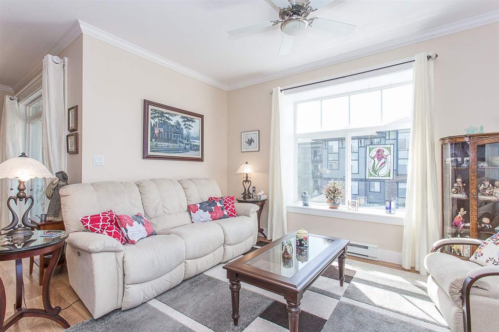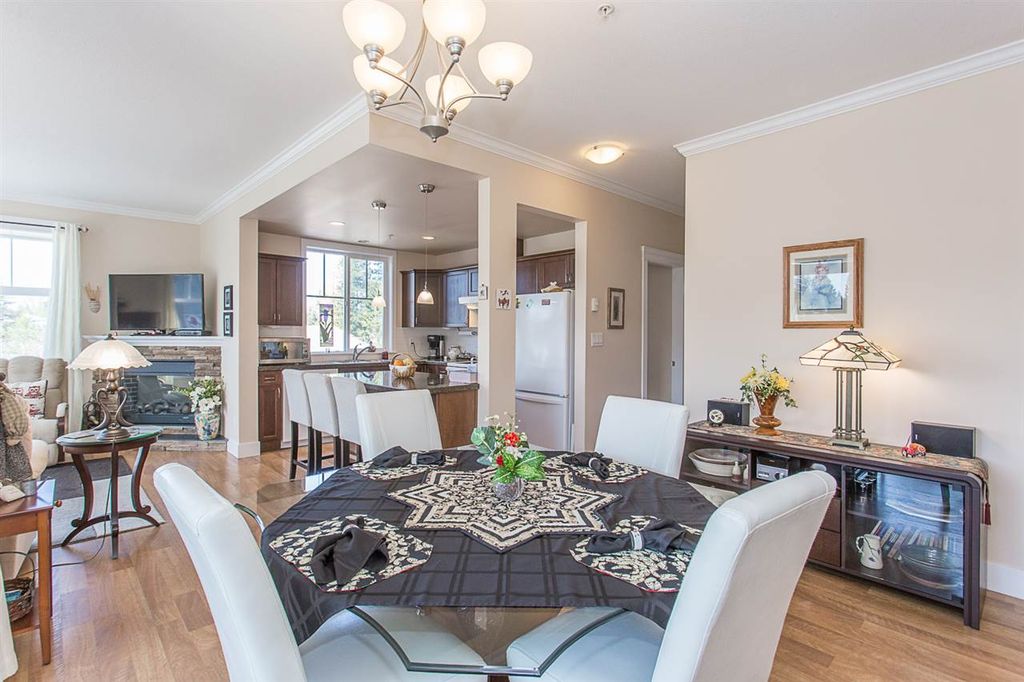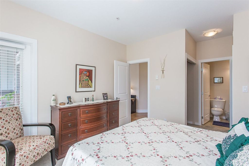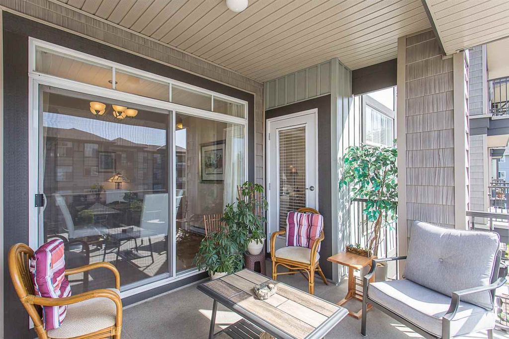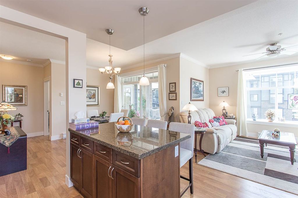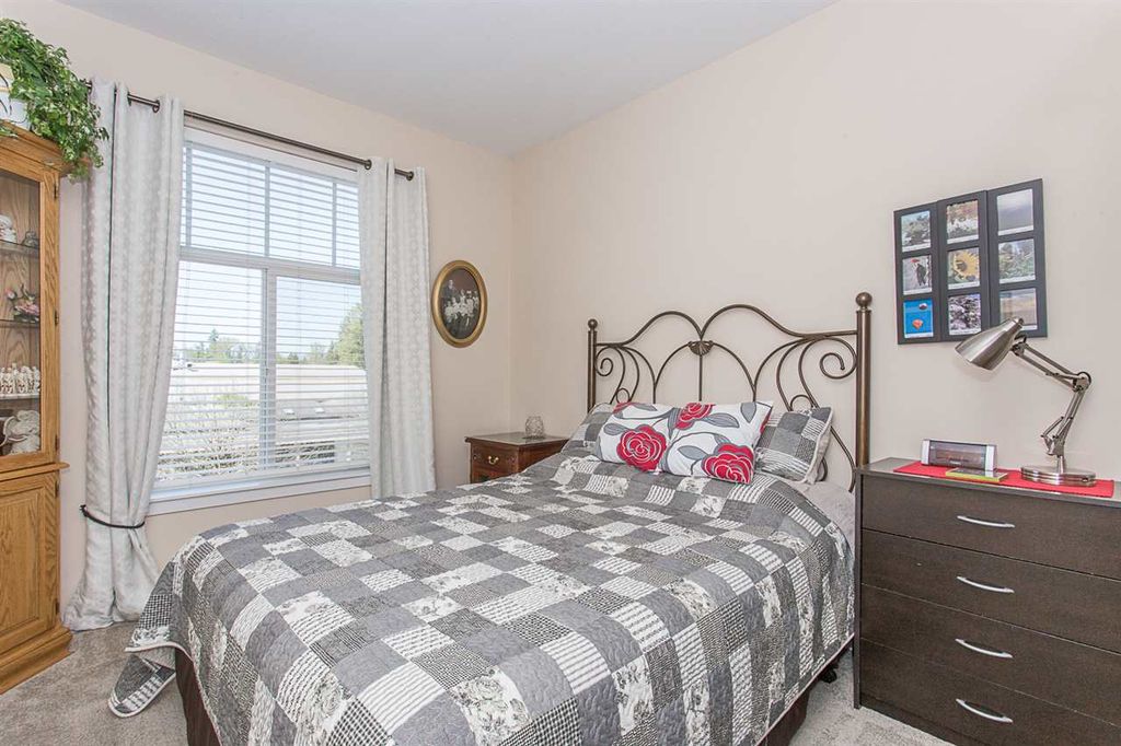 Welcome home to the Sterling on Mayfair! This bright and spacious corner unit boasts 1182 sq ft with an open layout offering granite counters, 3 year old appliances, large kitchen island, custom pull-outs, 9 ft. ceilings with crown moldings, hi-end laminate throughout the living area, near new carpet in the bedrooms, a large private and covered deck and huge picture windows with deep sills on 2 sides for tons of natural light. Complex is family and pet friendly with no rentals and is centrally located close to Mill Lake, Abbotsford Hospital, UFV and Hwy-1. Easy to show - call today for your private tour!