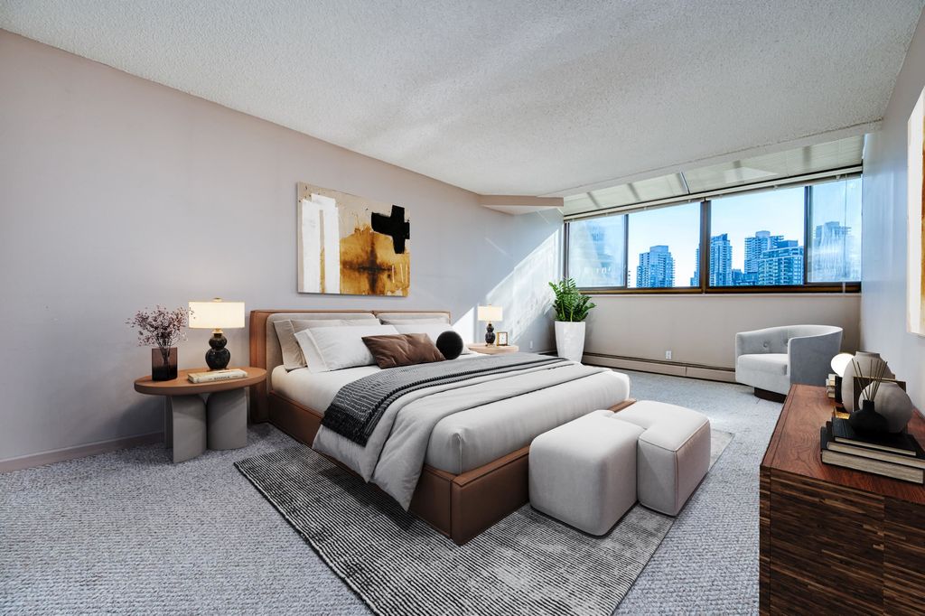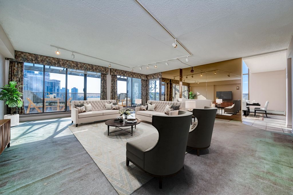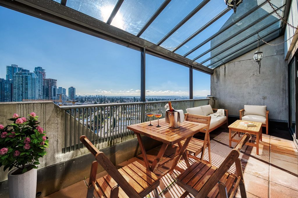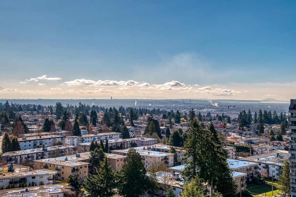 IT'S BIG! This spacious 1800 square foot, 2 LEVEL, SUB-PENTHOUSE offers space that you don't find in condos today. Come with your decorating ideas, but the reward will be a beautiful suite with your vision. The main level offers an expansive living room with an attached dining area with glass ceiling and amazing light and views. Both bedrooms on the 2nd level are generous and the primary bedroom offers a walk-in closet and ensuite bath. 2 LARGE BALCONIES to create a garden oasis & impressive E. and S. views to Metrotown, Fraser river & Gulf islands. The buildings amenities include a swimming pool, hot tub, sauna, gym, billiards and more. Located in an enviable location & walking distance to Skytrain, Central Park and Metrotown. 3 car parking. EASY TO SHOW, BUT CALL YOUR AGENT TO VIEW!
