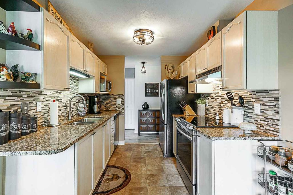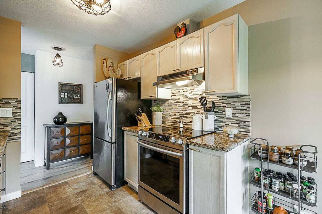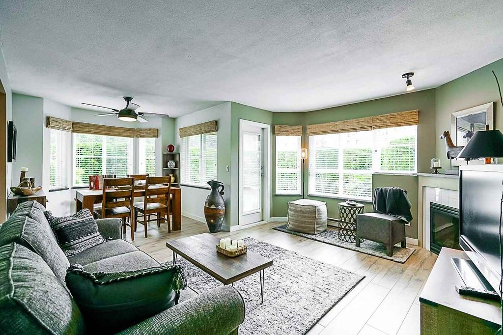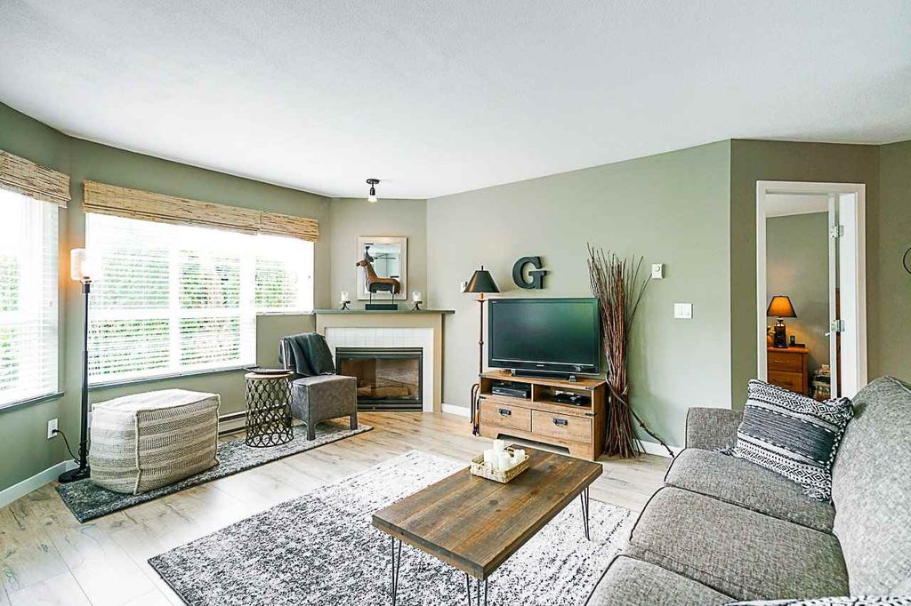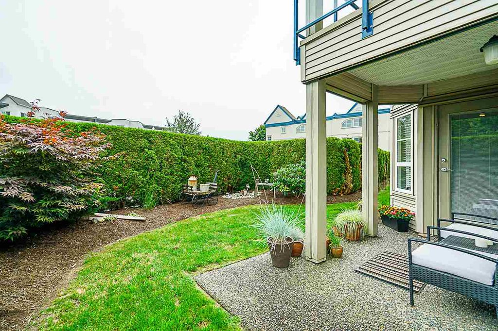 COMPLETELY RENOVATED 2 bedroom corner condo on ground floor with tons of light, This unit has a private entrance and a ground floor patio surrounded by cedars, creates a HUGE private yard for BBQing, entertaining and your pet. You can't usually find yard like this in a condo. Very functional layout with no wasted space! Features include gas fireplace, granite countertops, beautiful kitchen cabinets, S/S appliances, new high-end laminate flooring, fresh paint throughout and a fully redeveloped kitchen & bathroom. This is a well-managed building in a great neighborhood. Wheelchair accessible. 2 parking spots & a storage locker. Gas is included in the maint. fee. Close to schools, clinics, hospitals, shopping and easy access to hwy. It's a fabulous find! OPEN HOUSE, SUN, August 18, 12pm-2pm