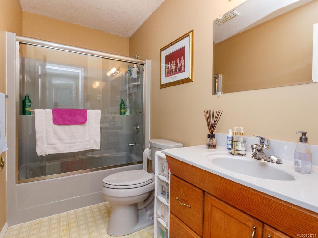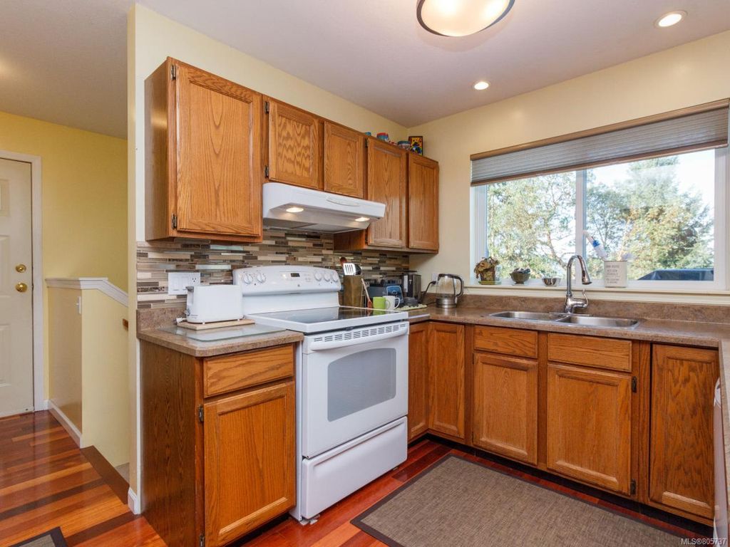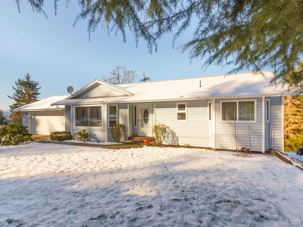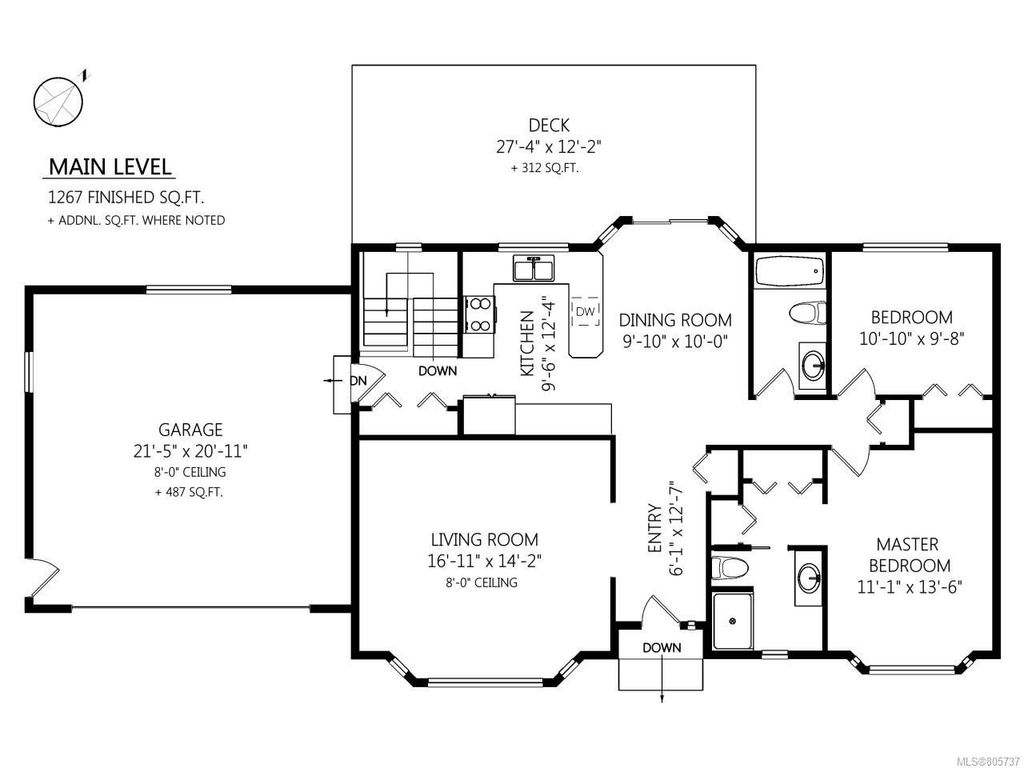 Lake View Estates Classic! Lovely main level entry home with a fully finished walk out basement. This home has seen numerous updates including main level hardwood flooring, vinyl plank flooring down, all vinyl windows, kitchen counter tops, and new decking. The bright entry leads to the spacious living area with large bay window. Oak kitchen and adjacent dining area with access to 312 square foot deck with awesome mountain views. There are two main floor bedrooms including the large master with double closets and full ensuite with heated tile floors. Also on the main an updated bath and access to the double garage. Two more bedrooms down, full bath, huge family area, laundry, and office/storage room. Half acre property with driveway access to the rear yard, garden shed, sprinkler system, and terraced landscaping. Located close to marinas and world class hiking and biking. Just move in and enjoy!