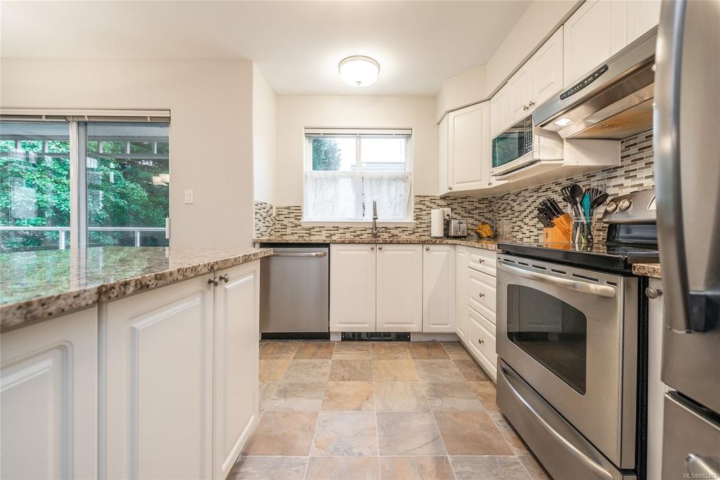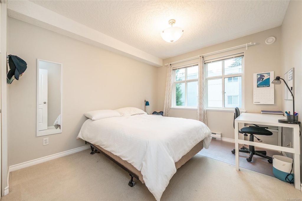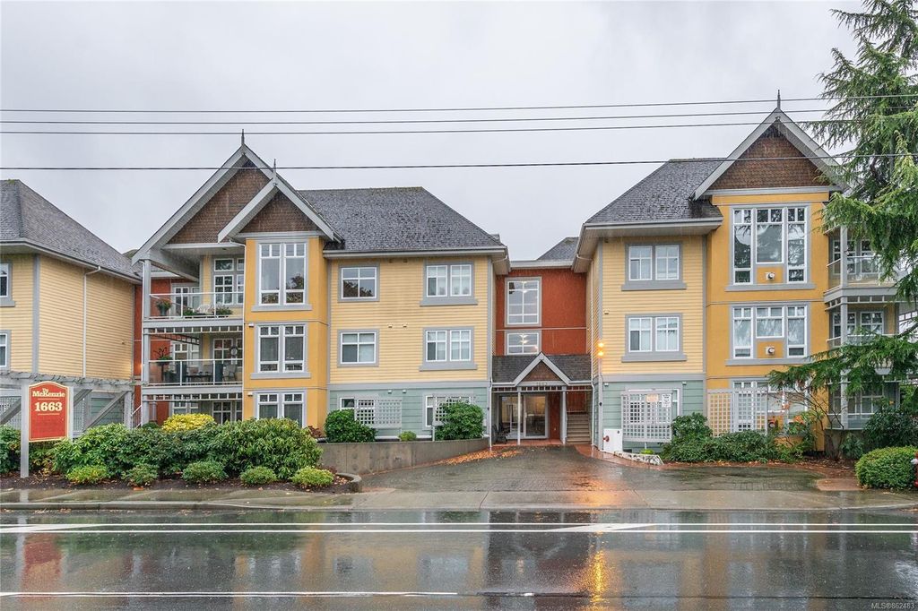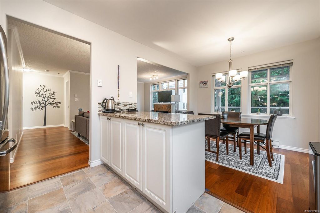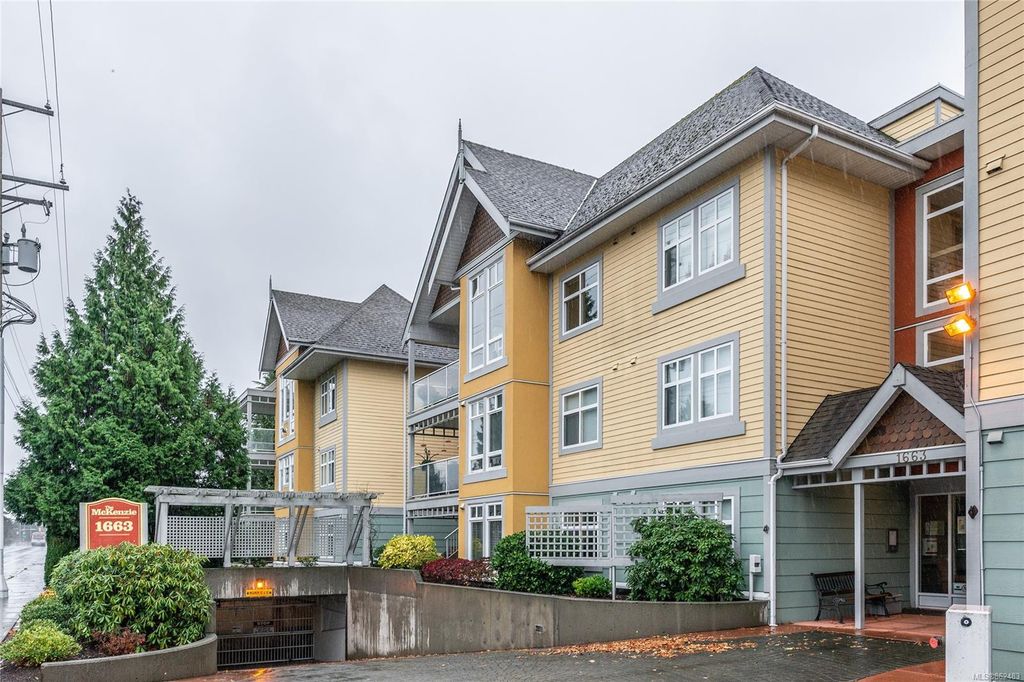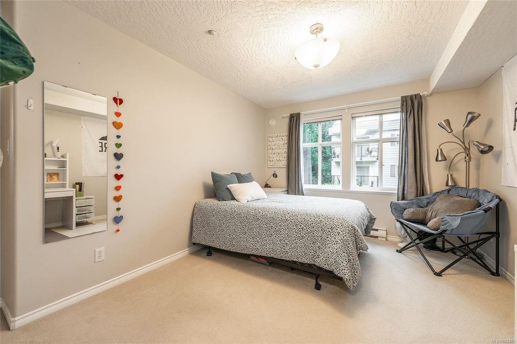 Modern South facing, very bright & open concept, 2 bedroom, 2 full bath, corner condo suite. Nicely finished with a designer's touch throughout. This inviting living space offers an expansive floor plan with over 1000 sqft of living space, with hardwood floors, a cozy GAS fireplace, in-suite side by side full-size laundry, south-facing wrap-around covered patio, open kitchen with stainless steel appliances, granite counters, separate dining, en-suite bathrooms, storage locker, and secure underground parking. This unit is on the sought after “quiet” south side of the building, with large windows and an open concept plan, and complete separation of the bedrooms. The location is perfect; being close to Tuscany Village, and walking distance to UVIC, shopping, and all amenities at University Heights. This home is ready to move in and enjoy. GAS heat included in strata fee!