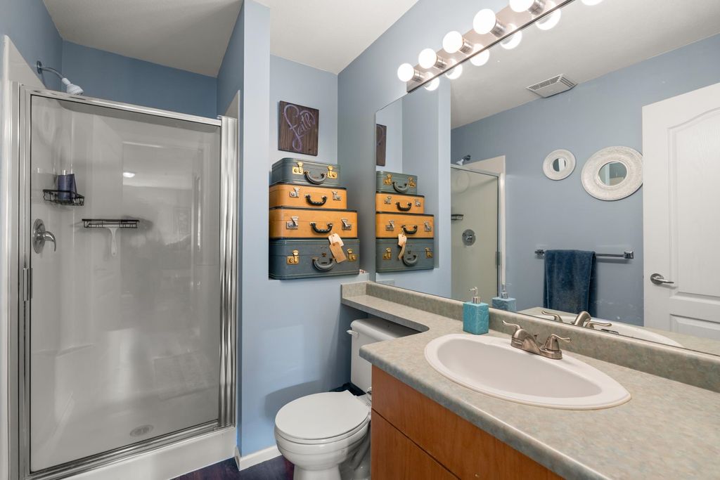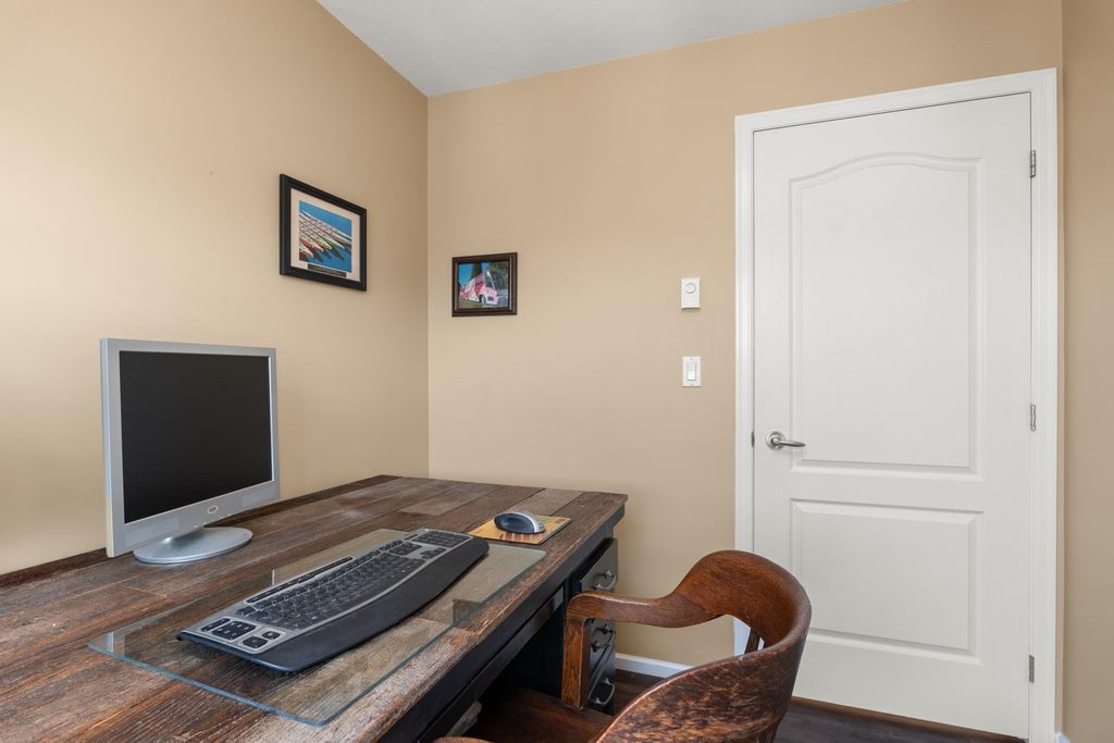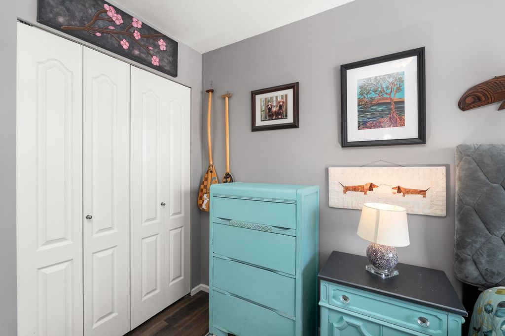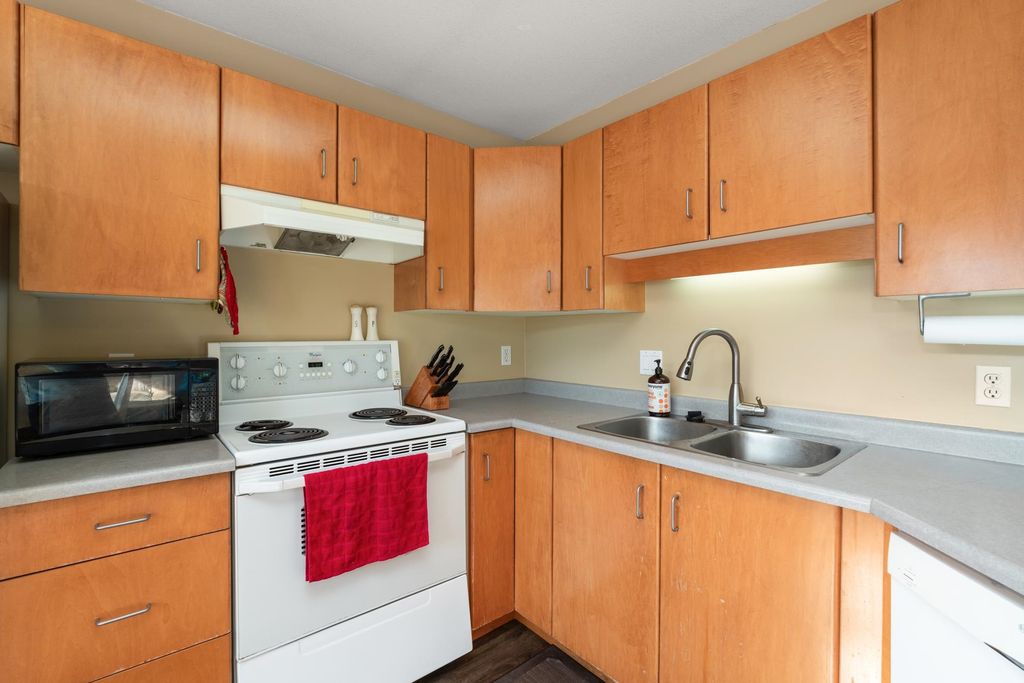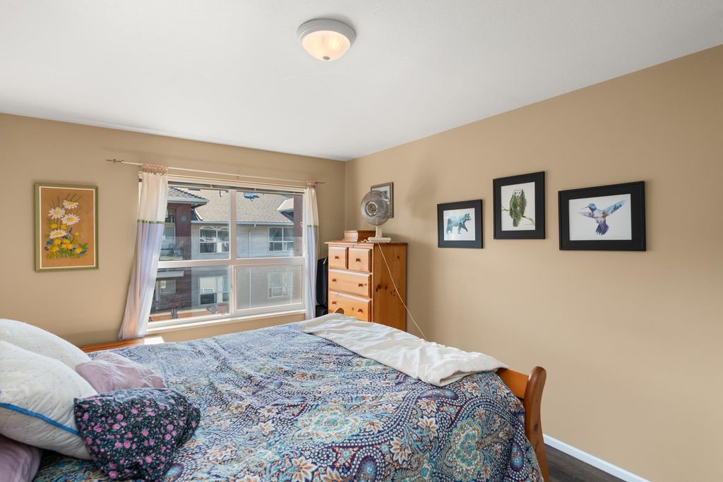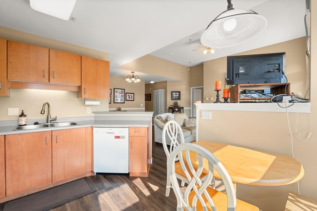 Top floor with 10 ft ceilings! This charming 2-bed, 2-bath corner unit includes a LARGE 9 x 7'6 ft den with a window. With 1,055 sqft of space, this home has abundant natural light with southwest exposure. Enjoy the privacy of bedrooms on opposite sides, sharing walls with only one neighbor. Features include an updated gas fireplace design in the living room, a recently replaced washer and dryer in a dedicated laundry room, and upgraded luxury vinyl plank floors. The large den with a big window has potential to serve as a third bedroom. Located close to walking trails, Brydon Lagoon, two blocks from the upcoming skytrain station, and within walking distance to shopping and restaurants.